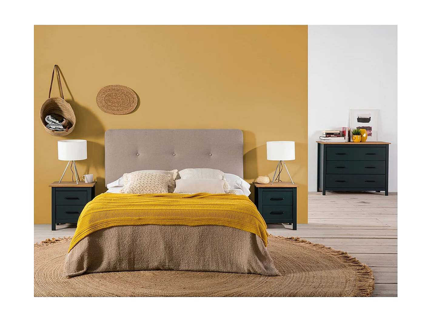 TINA - Chevet 2 Tiroirs Bois Ciré et Bleu Pétrole