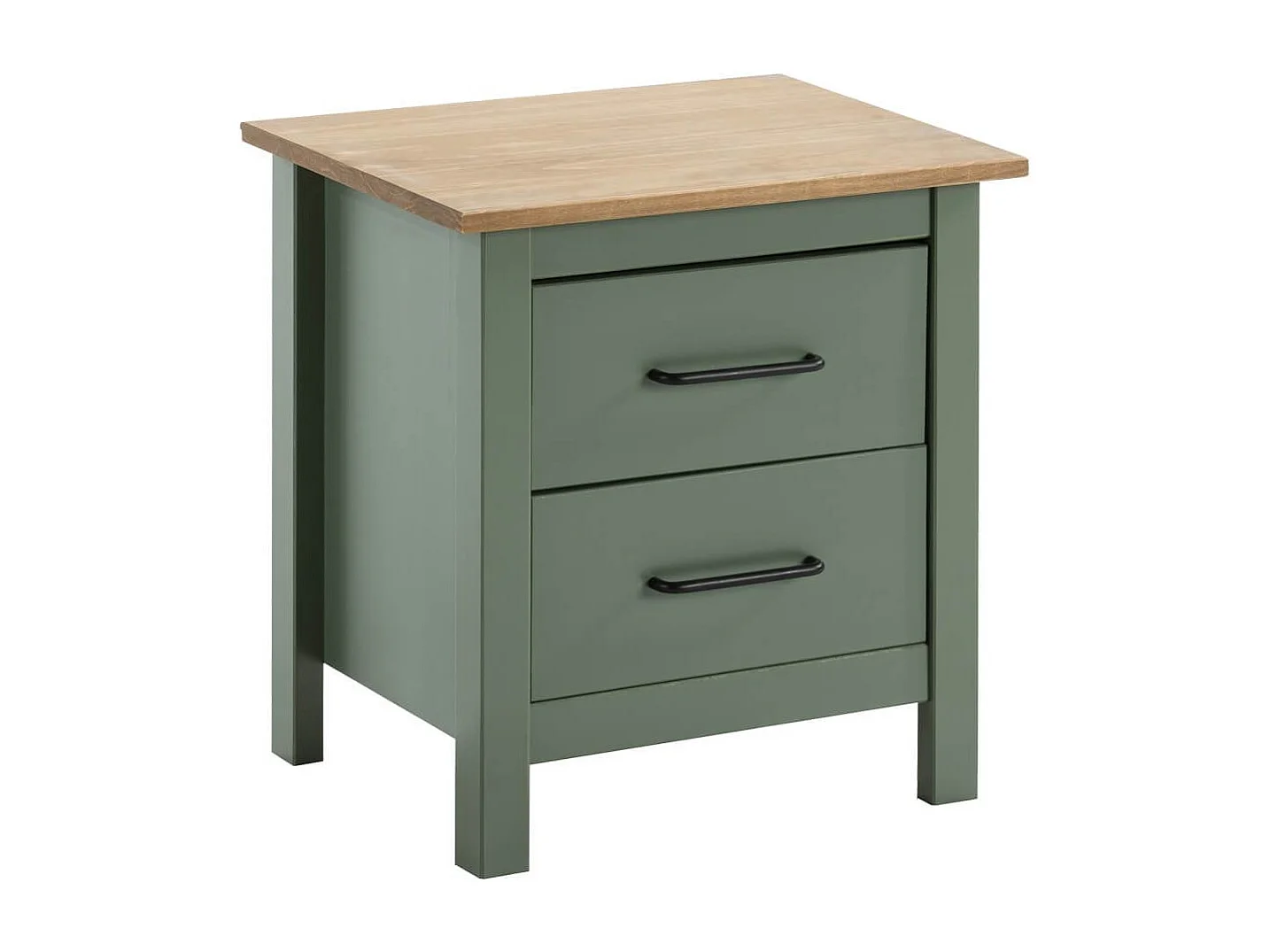 Table de chevet 2 tiroirs manguier massif vert Coloria