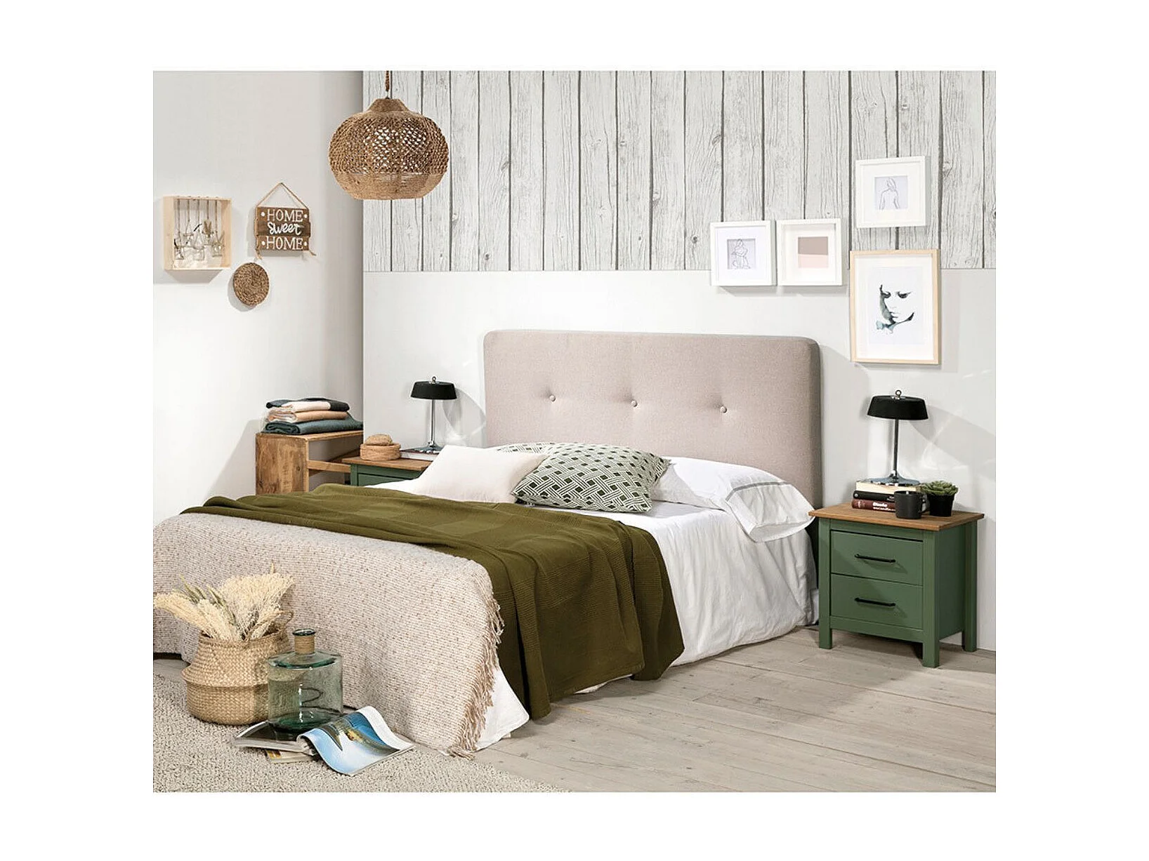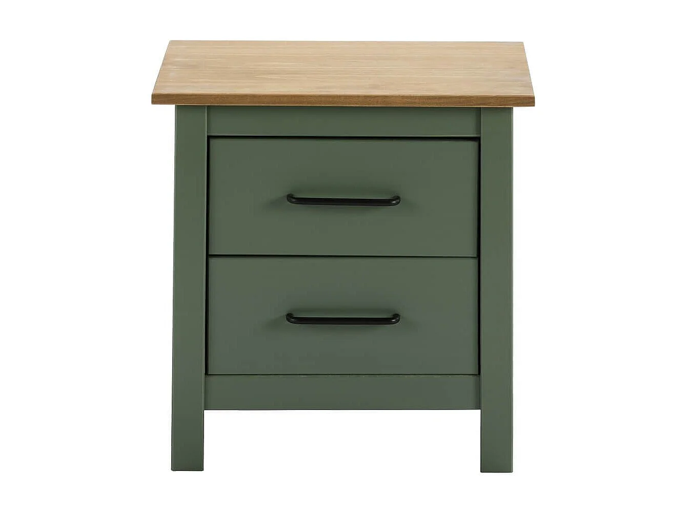 DAVA - Chevet 2 Tiroirs en Pin Massif Vert Pétrole