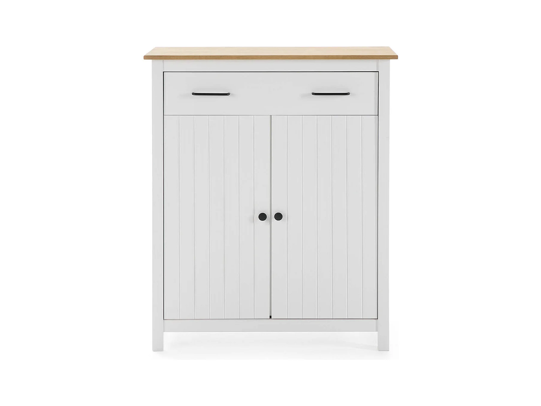 TINA - Meuble Haut 2 Portes 1 Tiroir Bois Ciré et Blanc