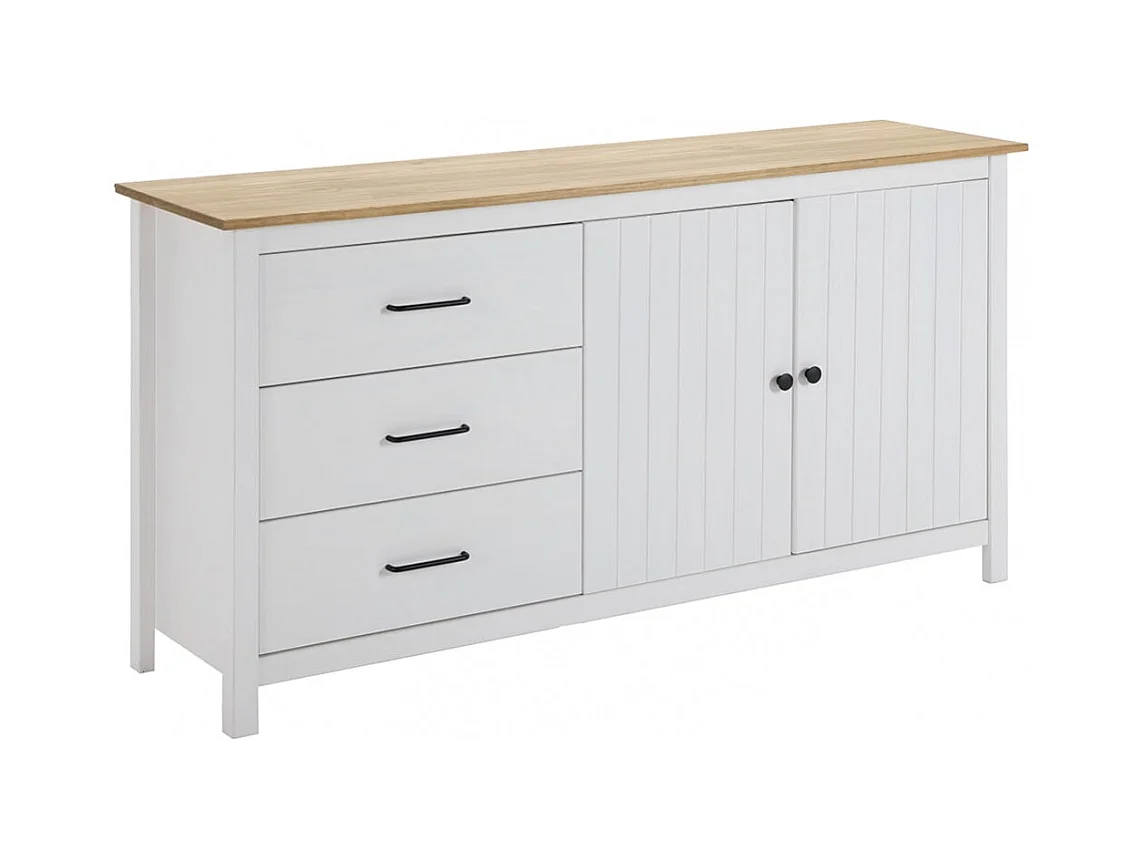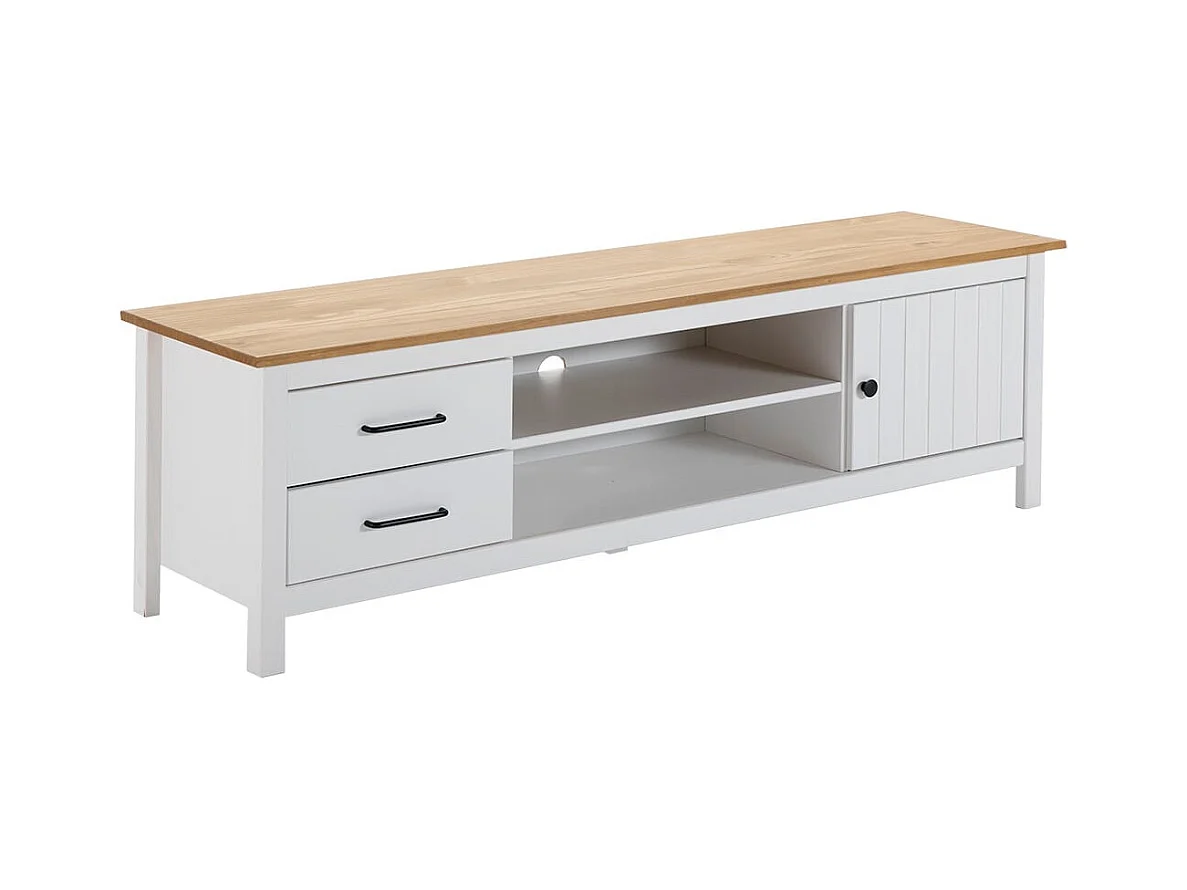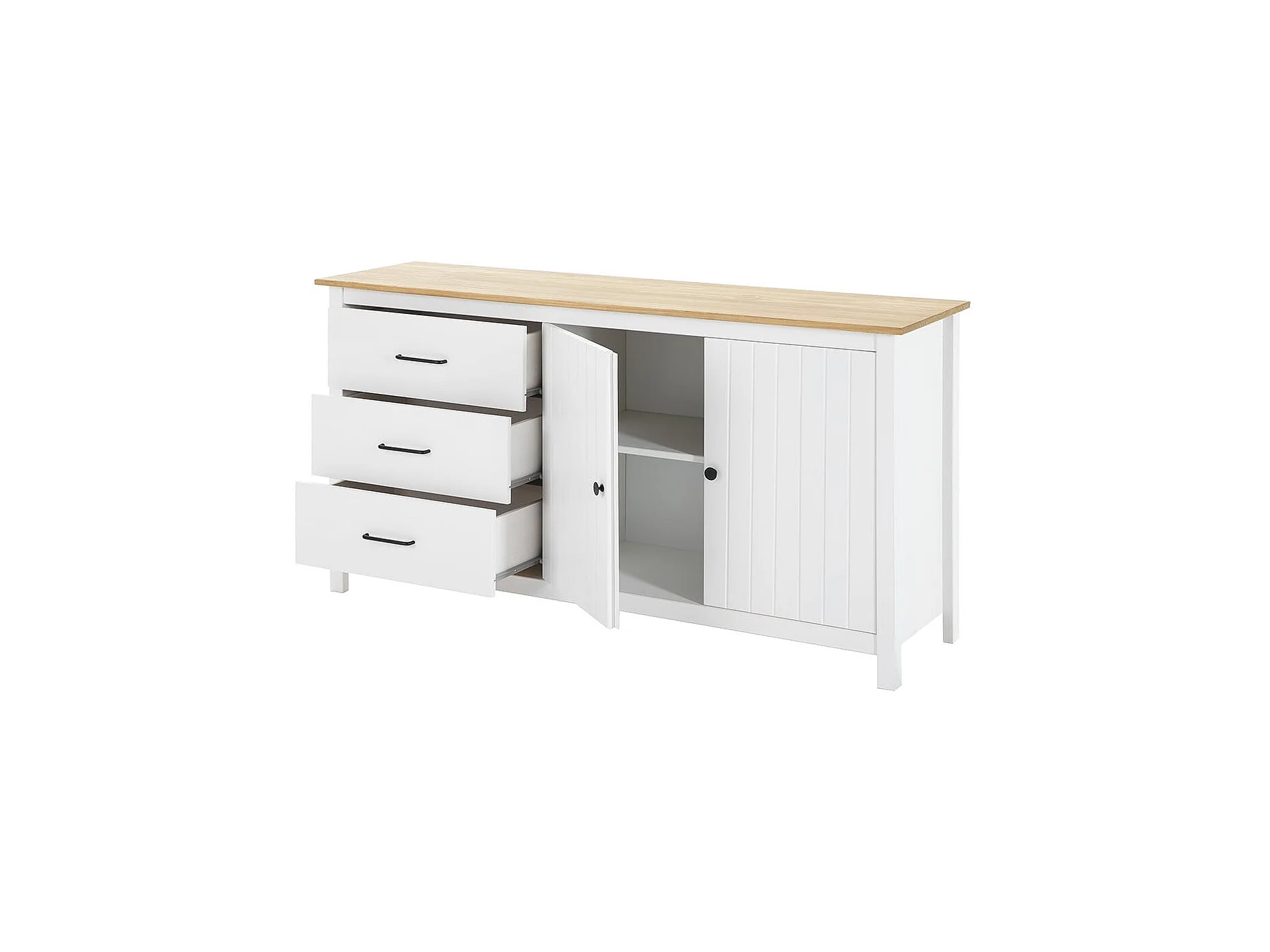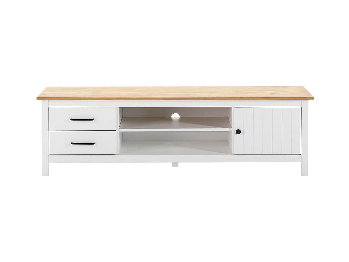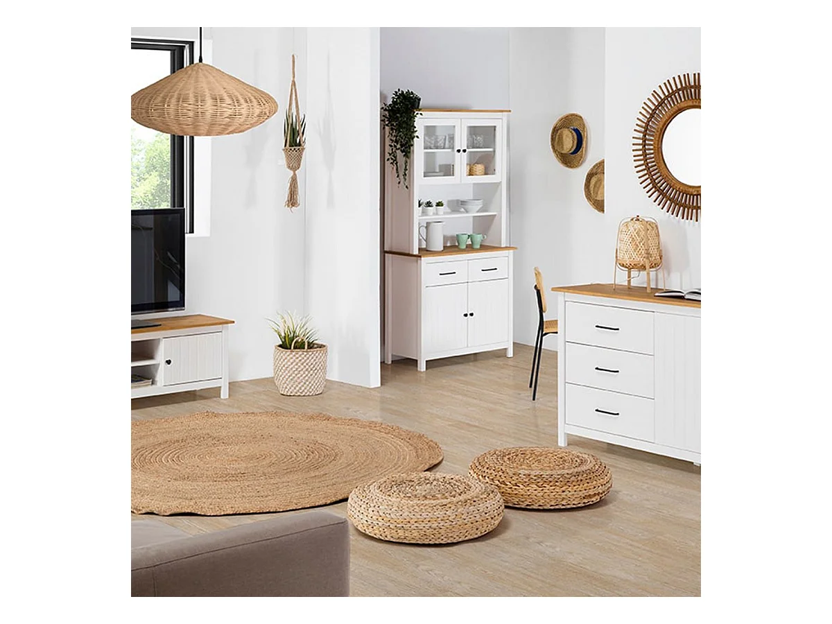 TINA - Pack Meuble TV + Buffet Haut + Buffet Bas 2 Portes en Bois Ciré et Blanc