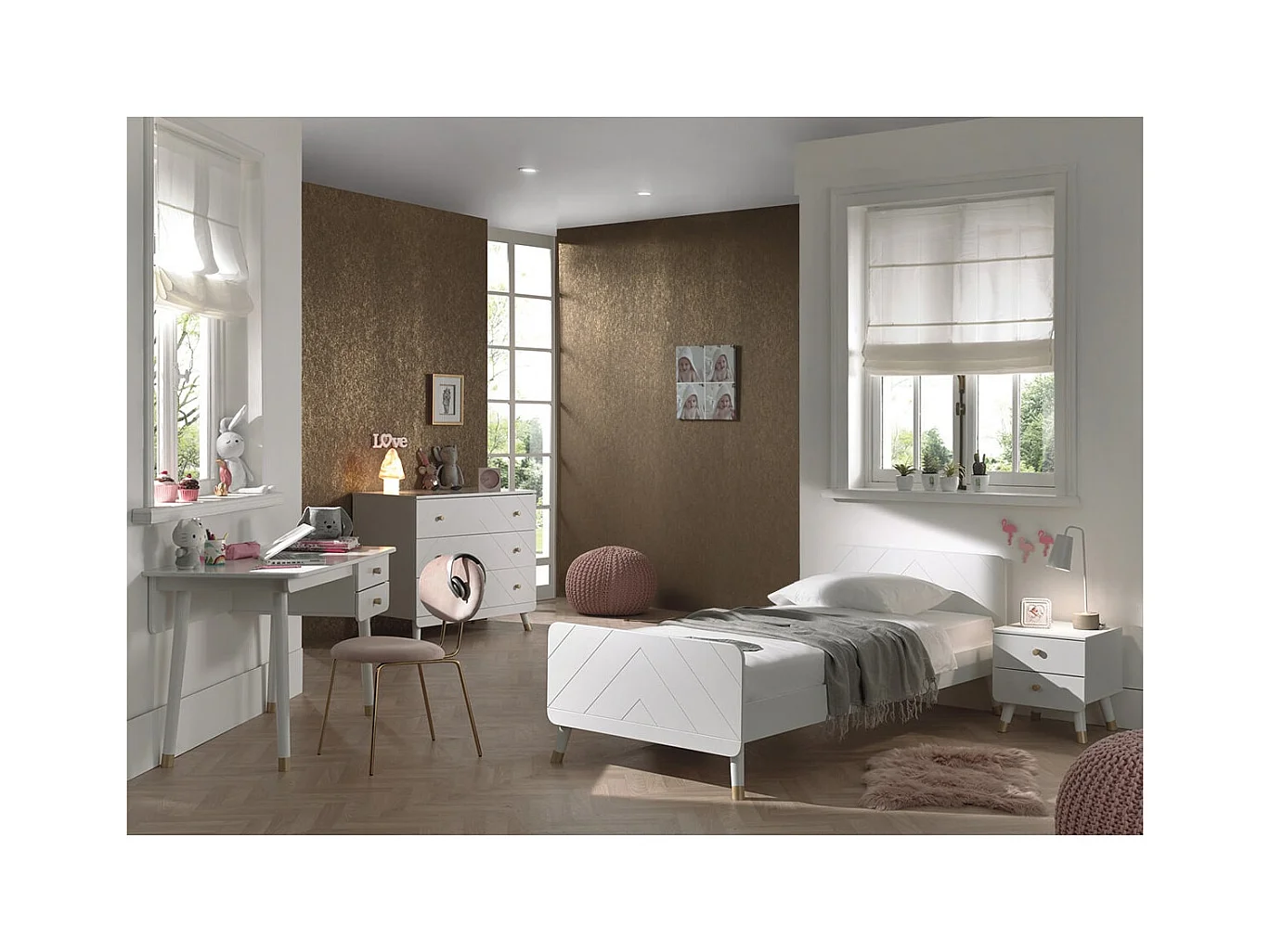 TINY WHITE - Chambre Complète 90x200cm + Bureau