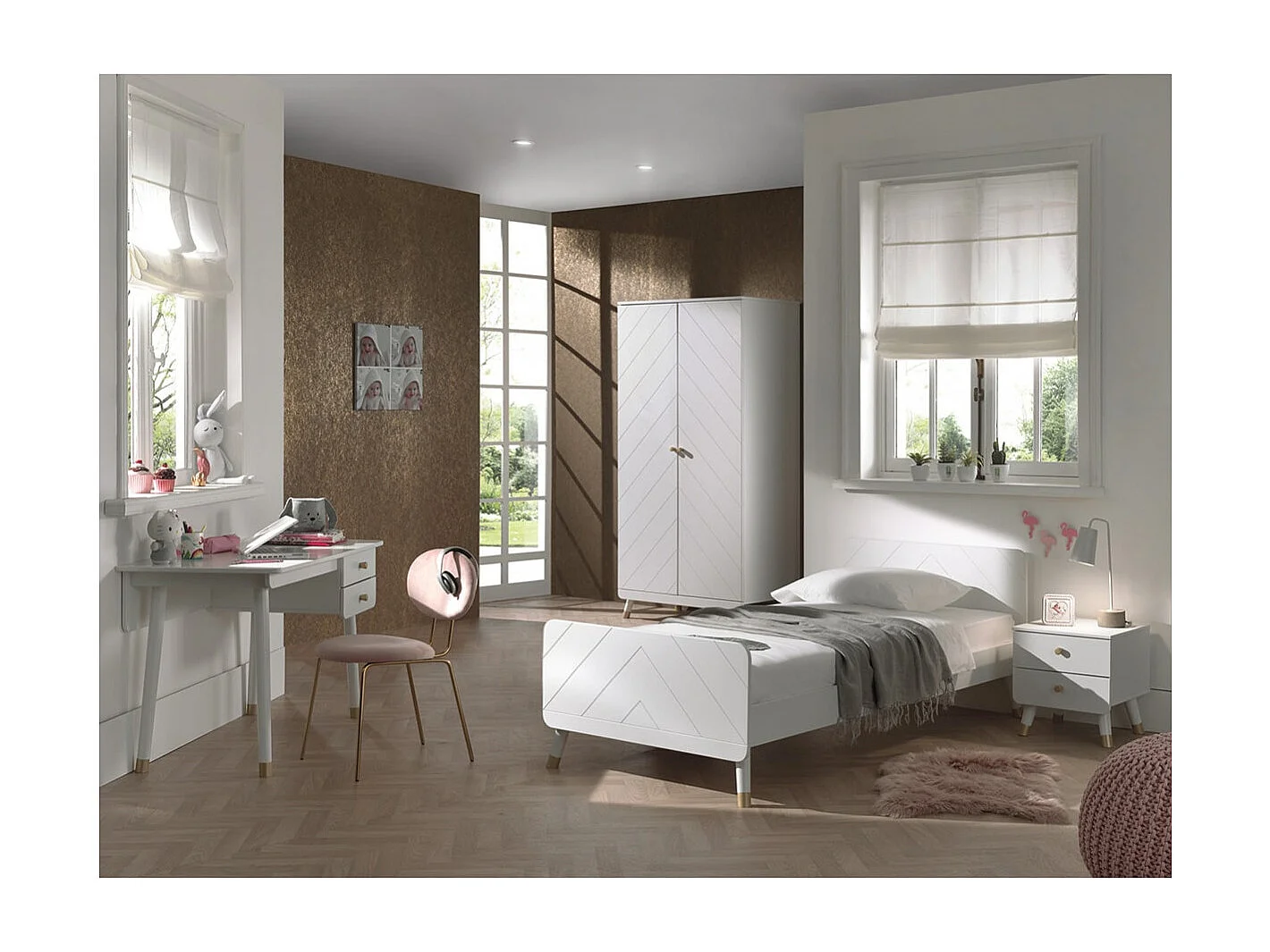 TINY WHITE - Lit 90x200cm + Chevet + Armoire 2P + Bureau