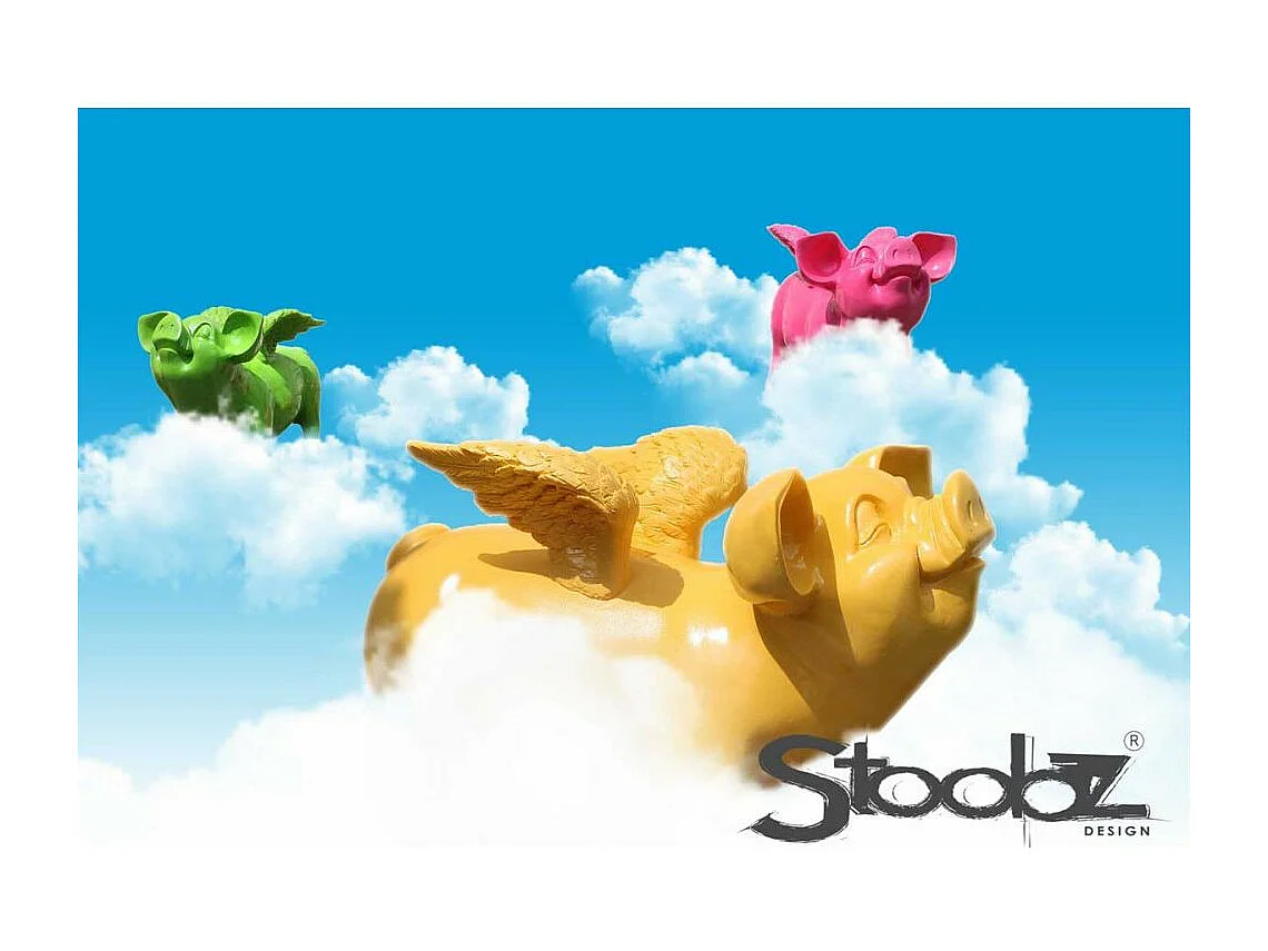 Tirelire cochon avec ailes en résine 14 x 25 x 15 cm