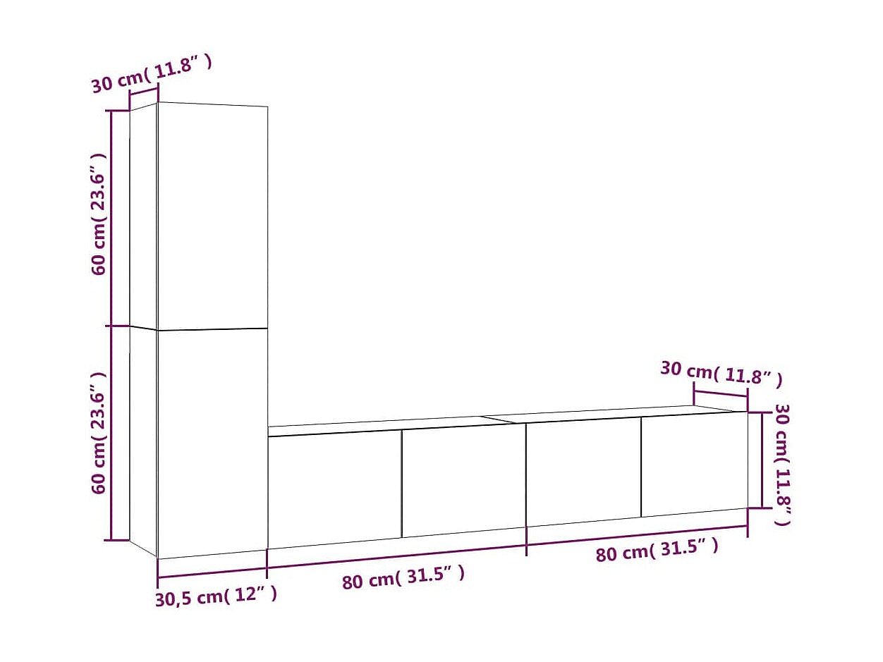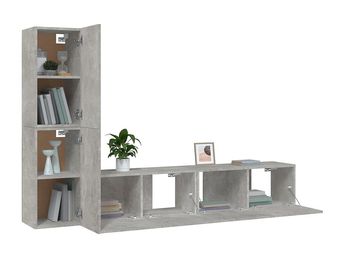 Tirza Ensemble de meubles TV 4 pcs Gris béton Bois d'ingénierie