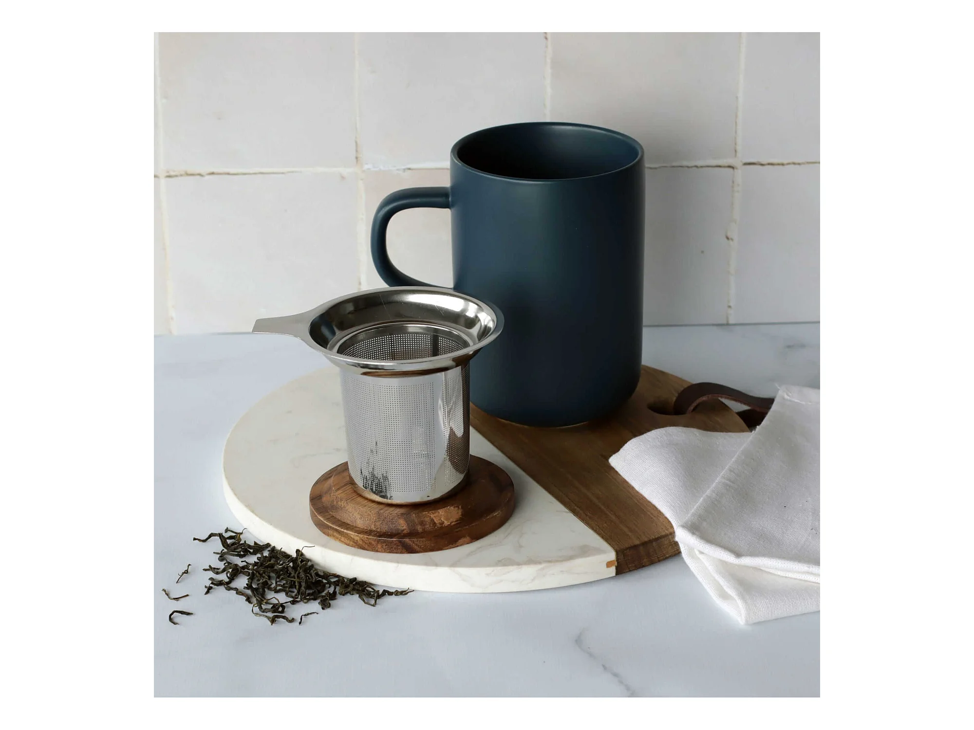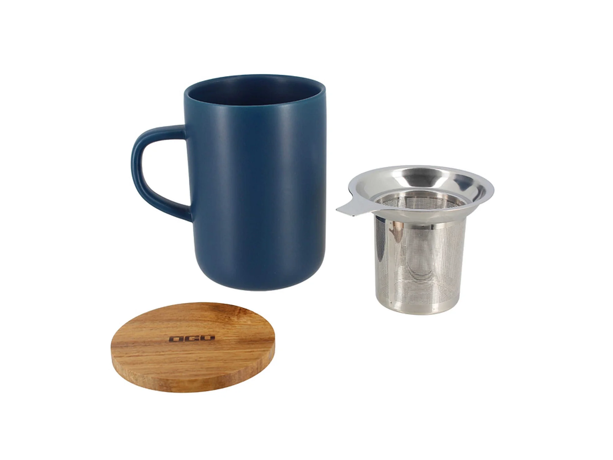 Ogo Living - Tisaniere Juliet Bleu En Gres Et Couvercle En Acacia De 475 Ml Ogo