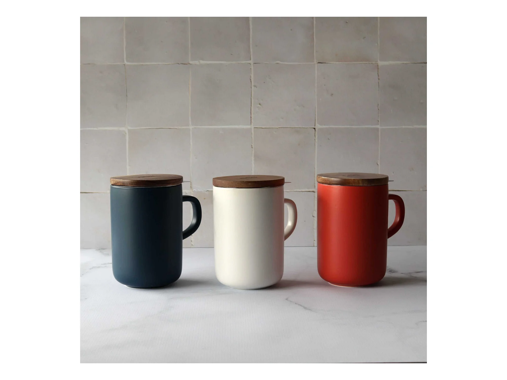 Ogo Living - Tisaniere Juliet Blanc En Gres Et Couvercle En Acacia De 475 Ml Ogo