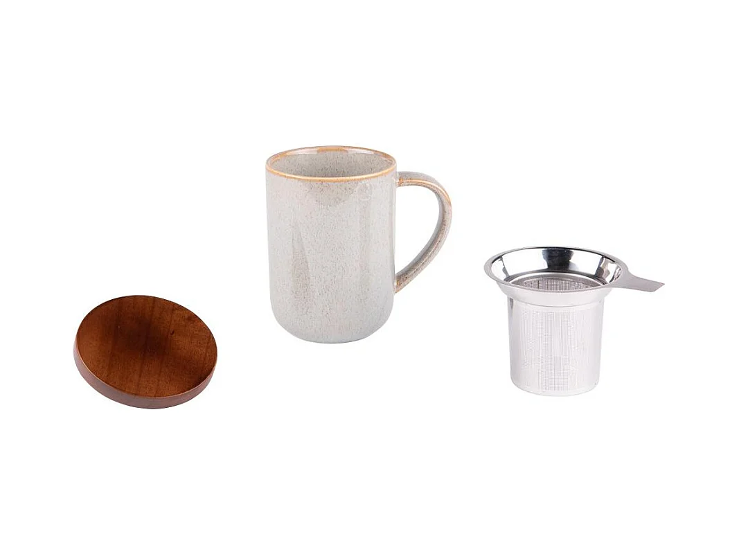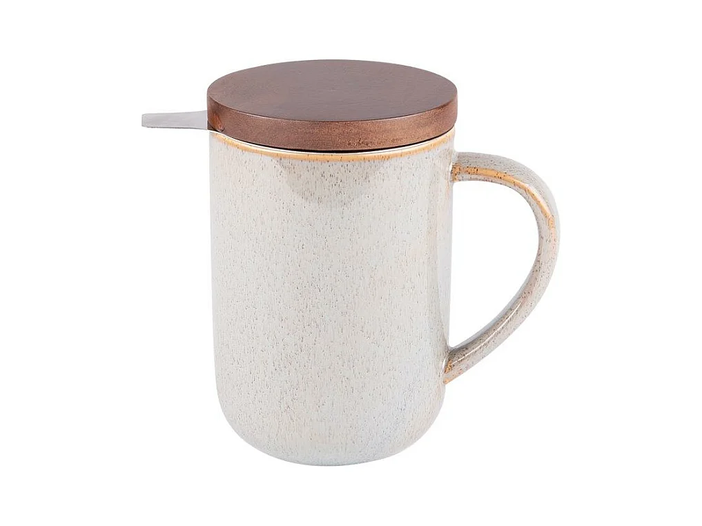 Ogo Living - Tisaniere Juliet 300ml En Gres Gris Perle Avec Couvercle Bois D'acacia