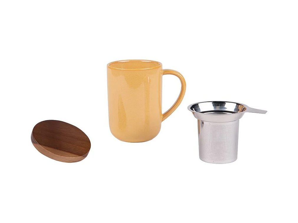 Ogo Living - Tisaniere Juliet 300ml En Gres Jaune Avec Couvercle Bois D'acacia