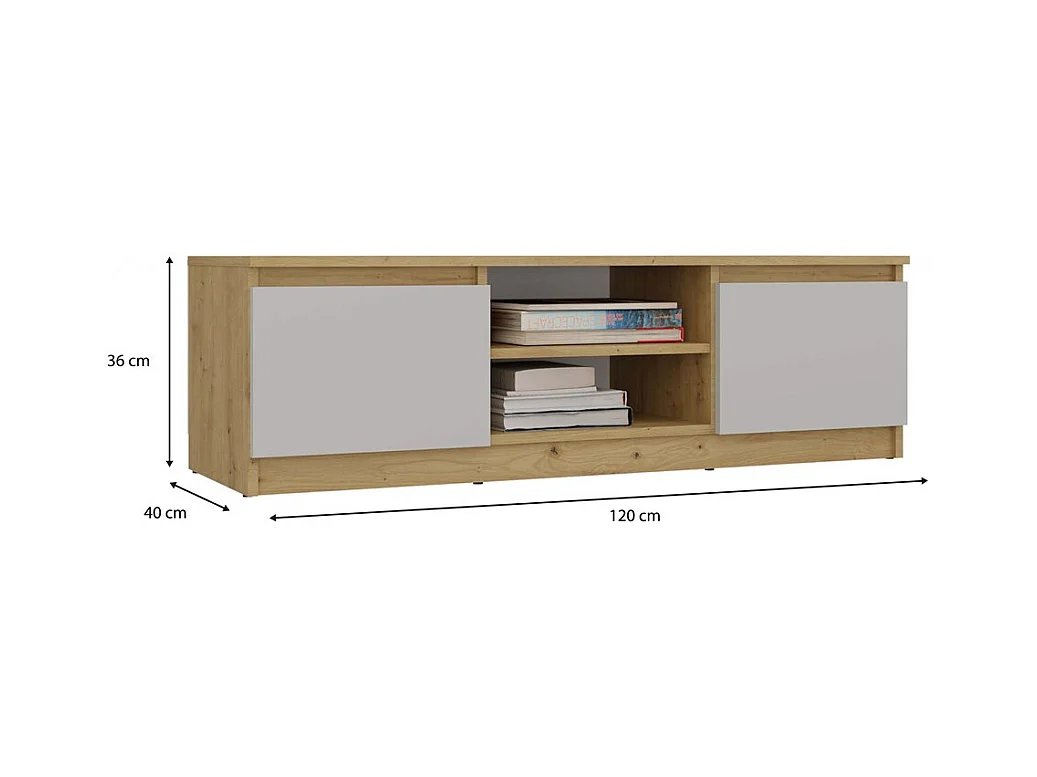 TIVOLI - Meuble TV style moderne - 120x40x36cm - 2 niches + 2 portes - Rangement matériel télé/audio