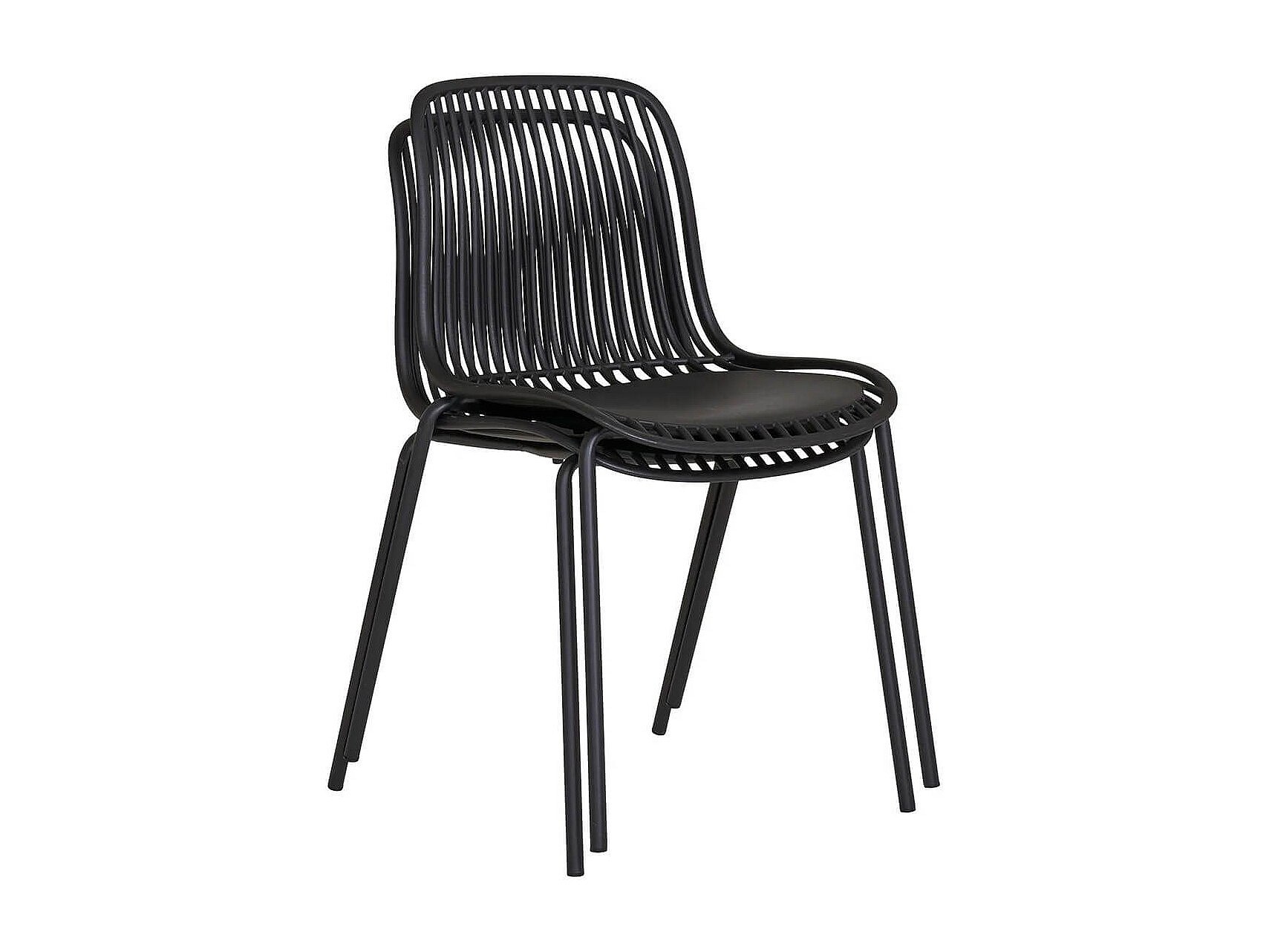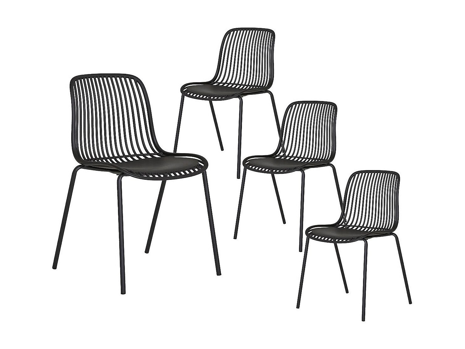 TIYANA - Lot de 4 Chaises de Jardin en Polypropylène Laqué Noir Empilables