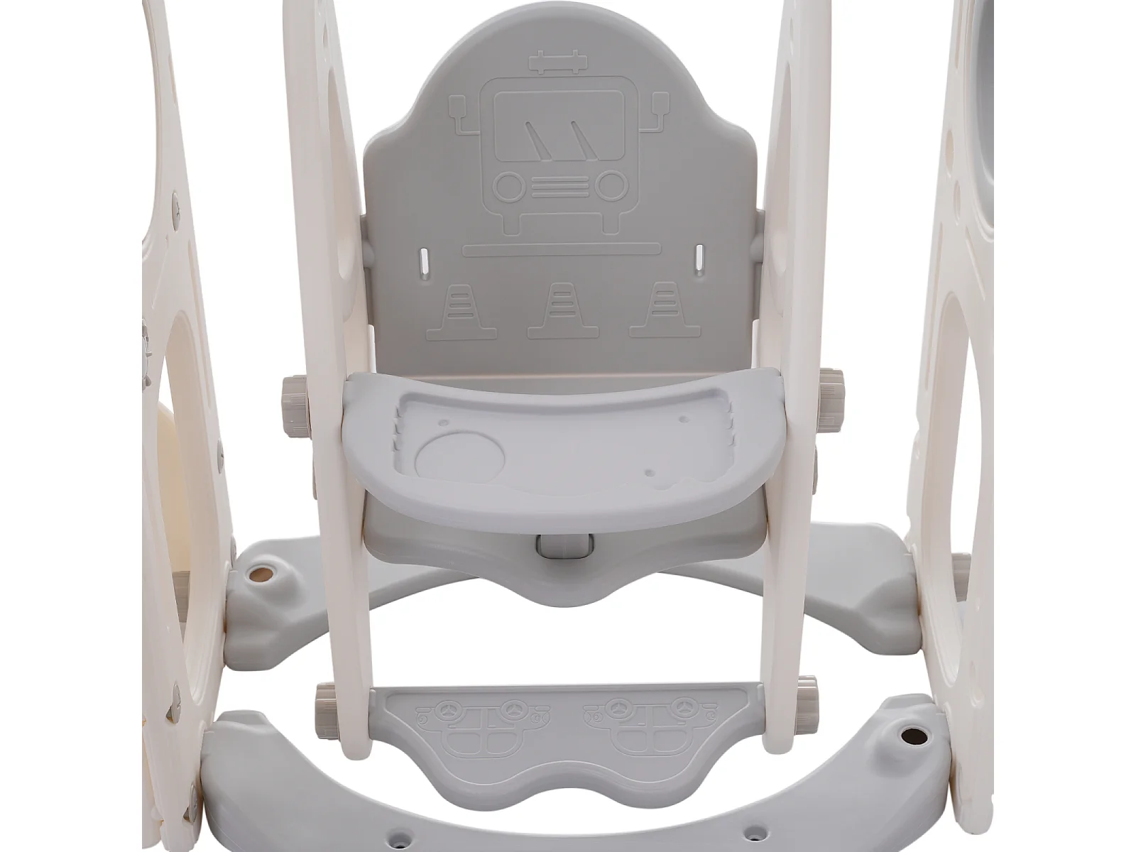 Toboggan 7 en 1 pour enfant, avec balançoire, plate-forme, zone de rangement, arcade, panier de basket, escalier, PEHD, gris+blanc