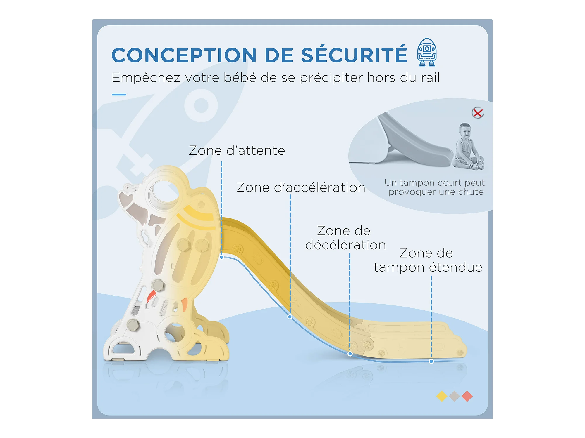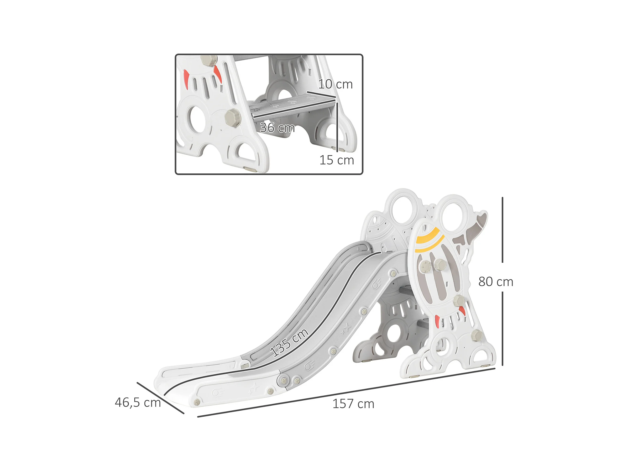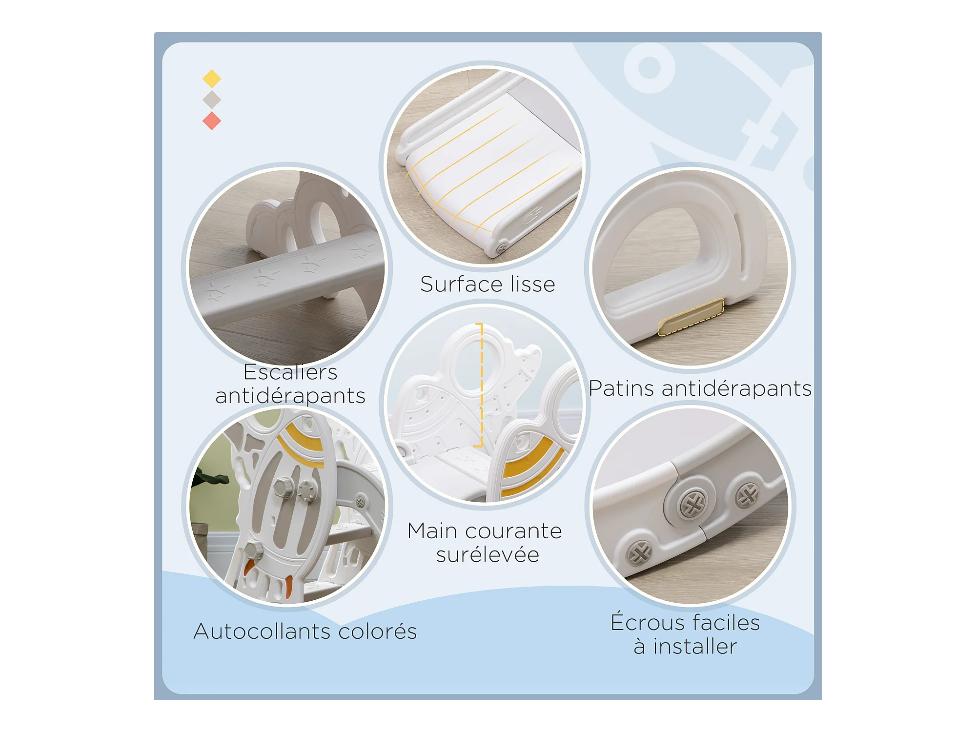 Toboggan enfant 18-36 mois design fusée - usage intérieur - dim. 157L x 46,5l x 80H cm - PE gris blanc