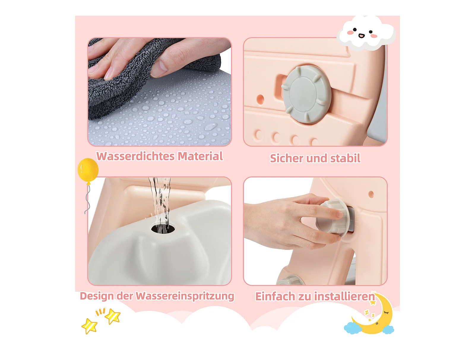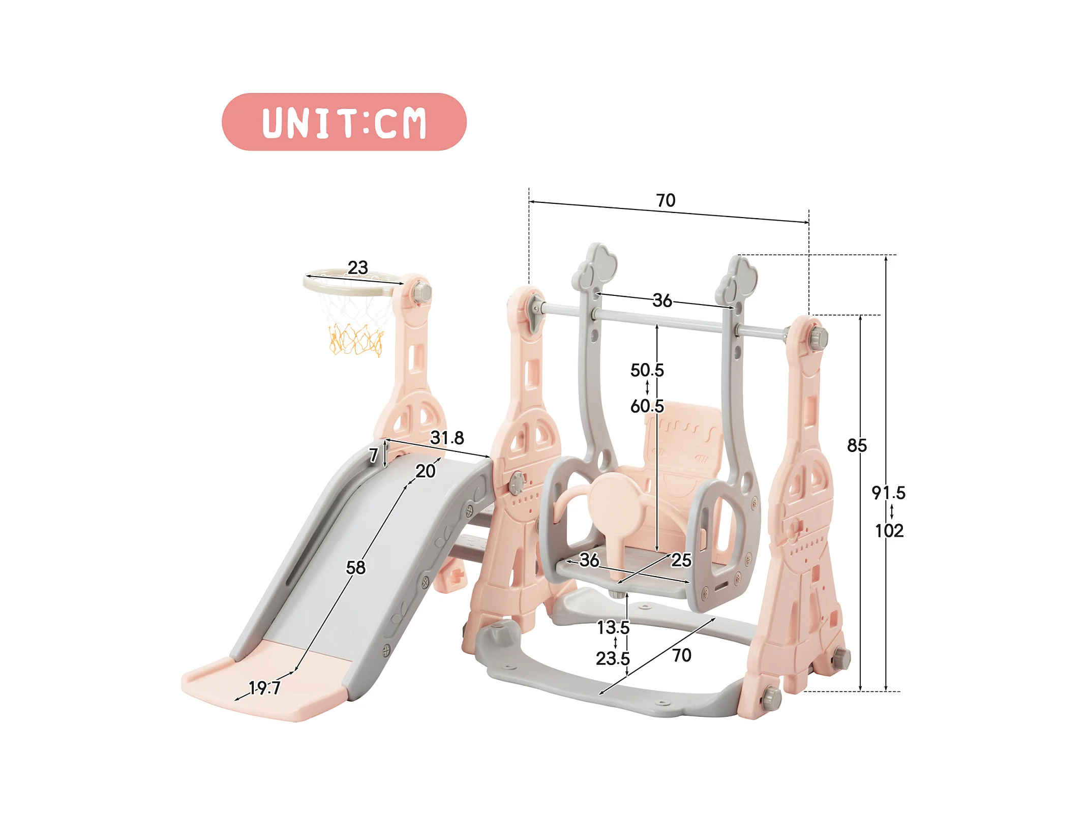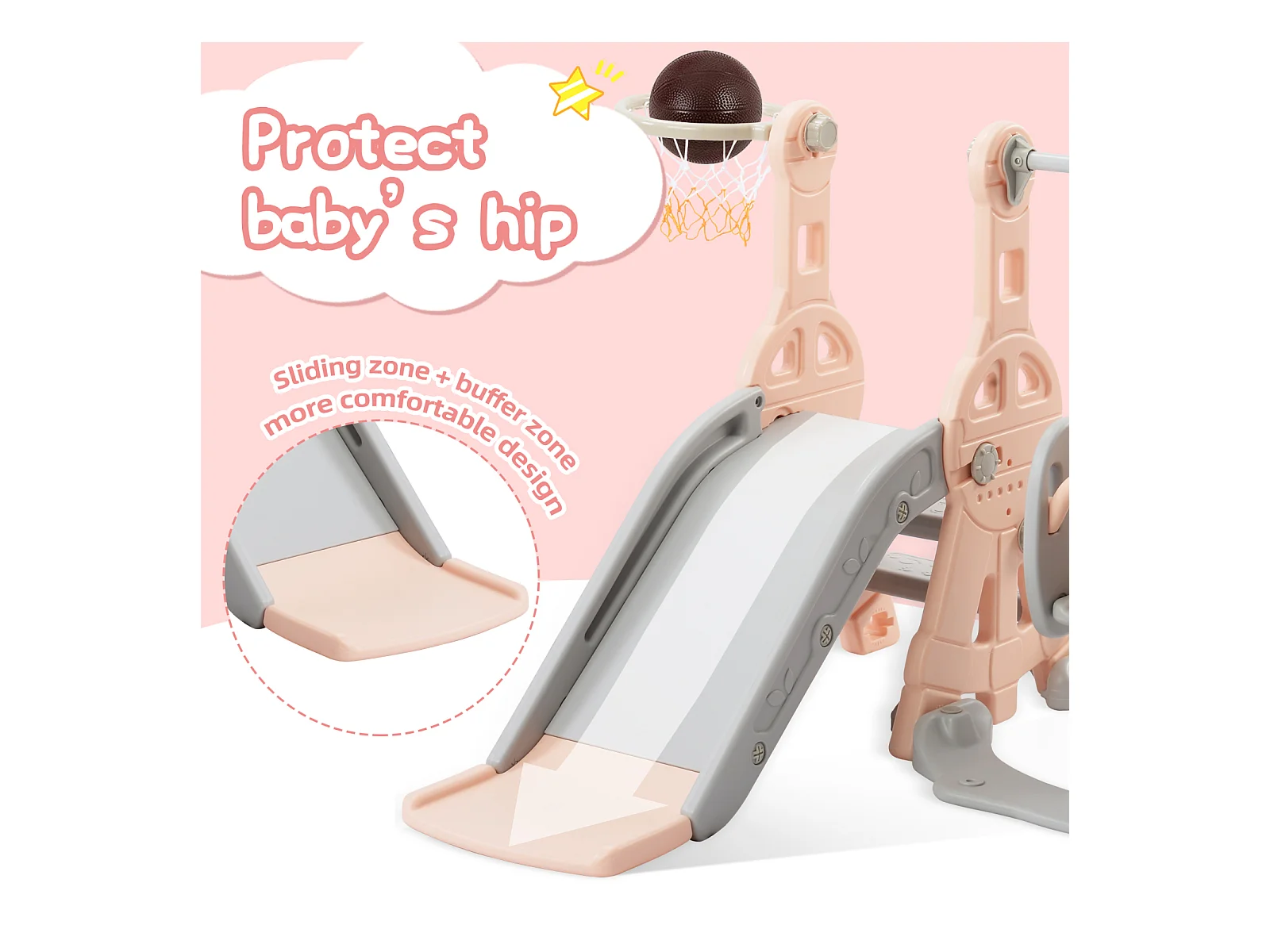 Toboggan pour enfants 4 en 1 avec support de basket, échelle d'escalade, balançoire de jardin,Rose+Gris
