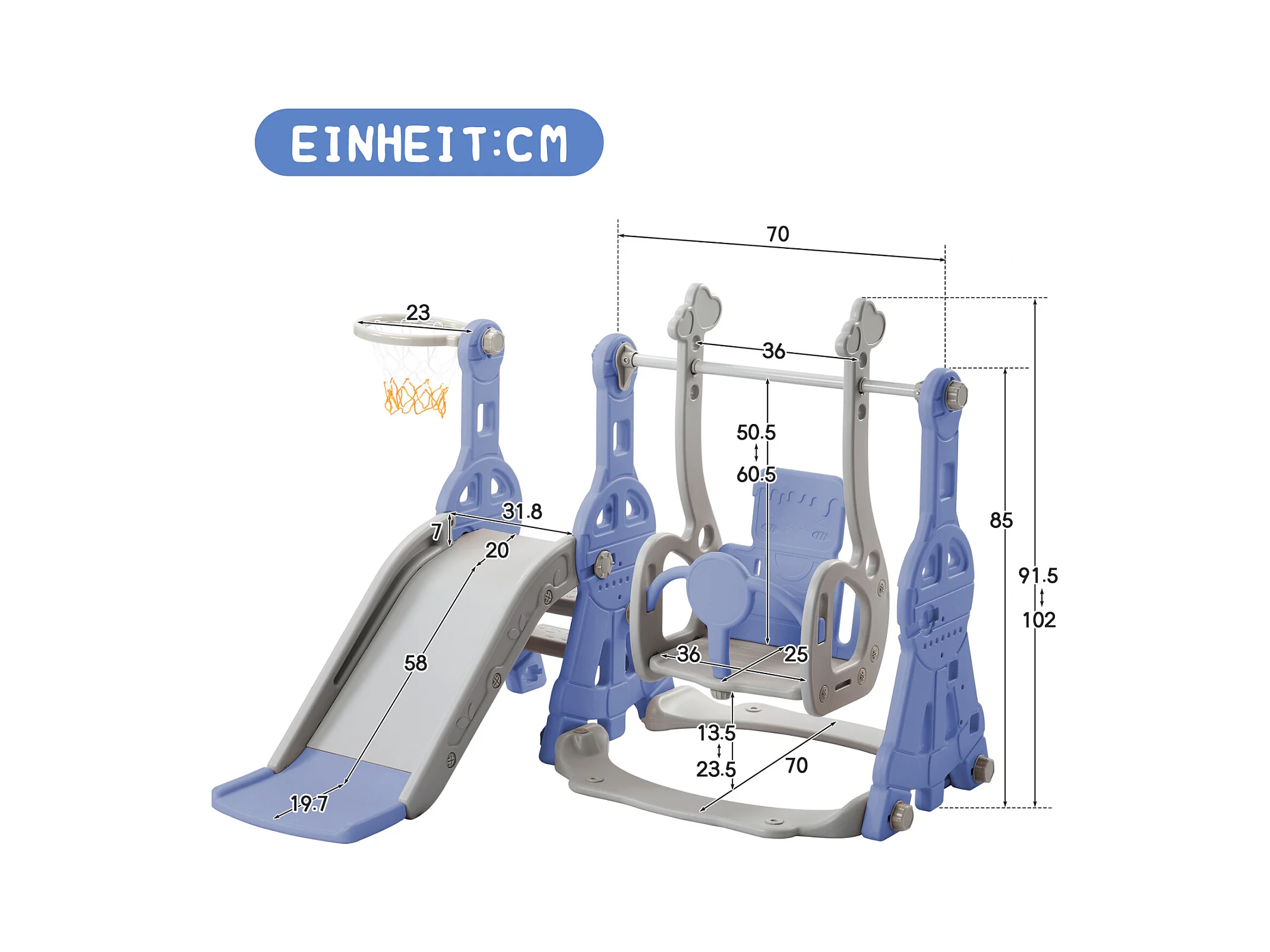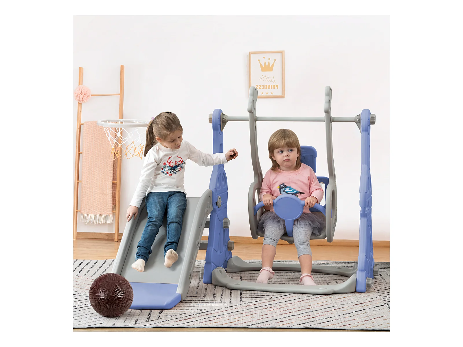 Toboggan pour Enfant 4 en 1 avec Swing, Panier de Basket, Aire de Jeux intérieure et extérieure, Ensemble de Toboggan pour Enfants