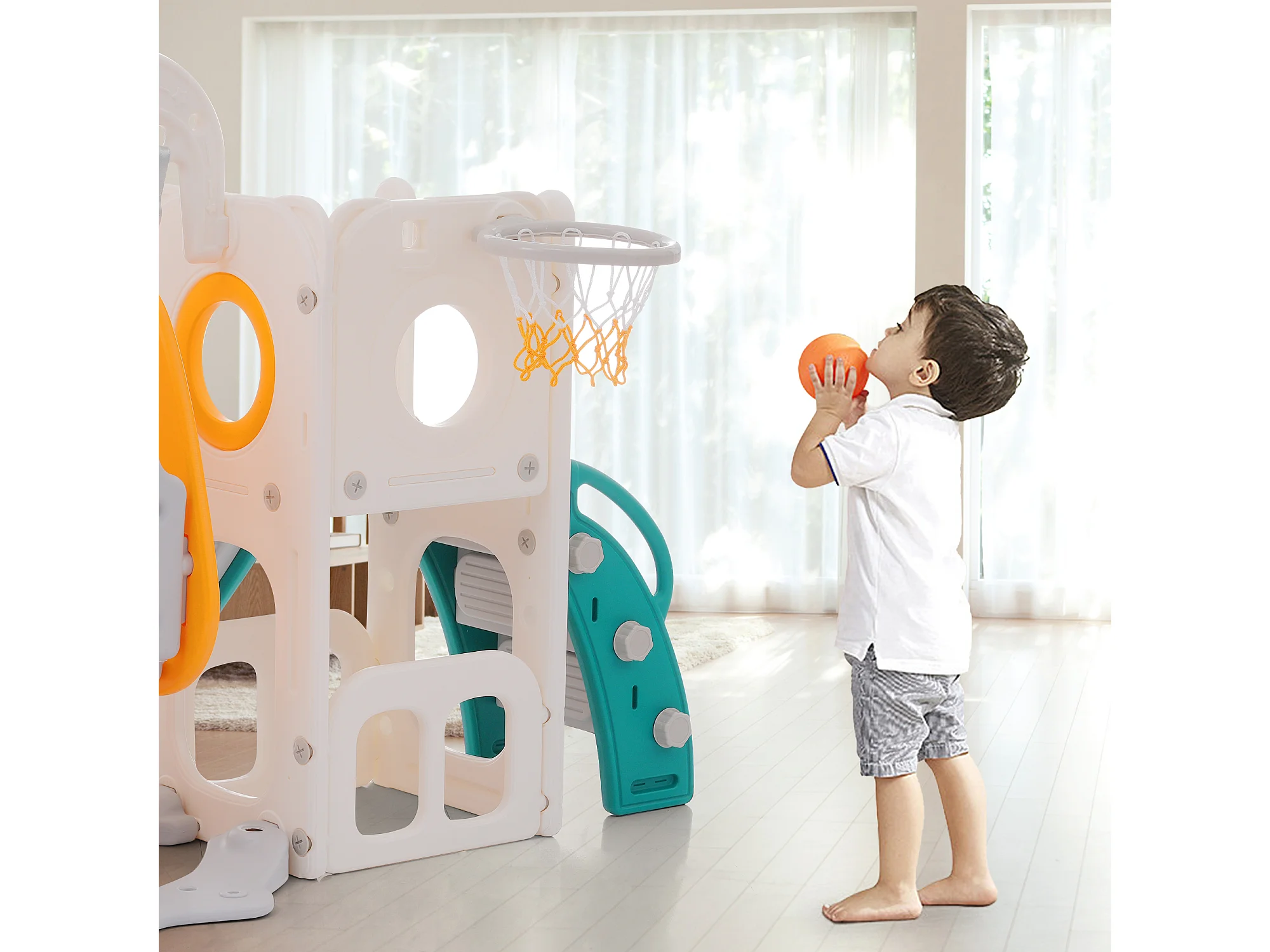 Toboggan pour enfants - comprend toboggan, escalier, passerelle et espace de rangement - polyéthylène - Jaune et vert