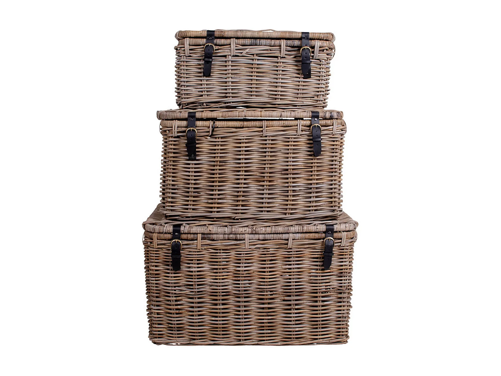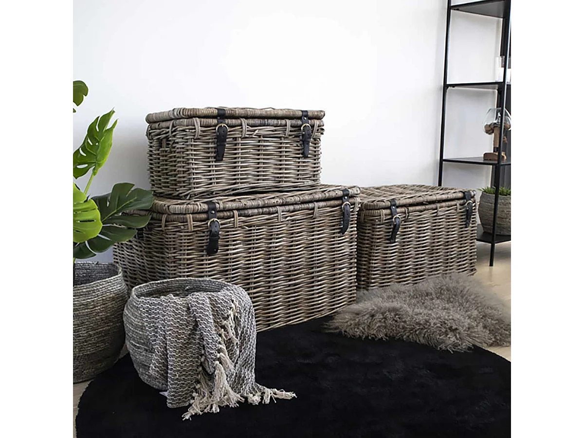 TOCON - Lot de 3 Paniers en Rotin avec Lanières en Cuir