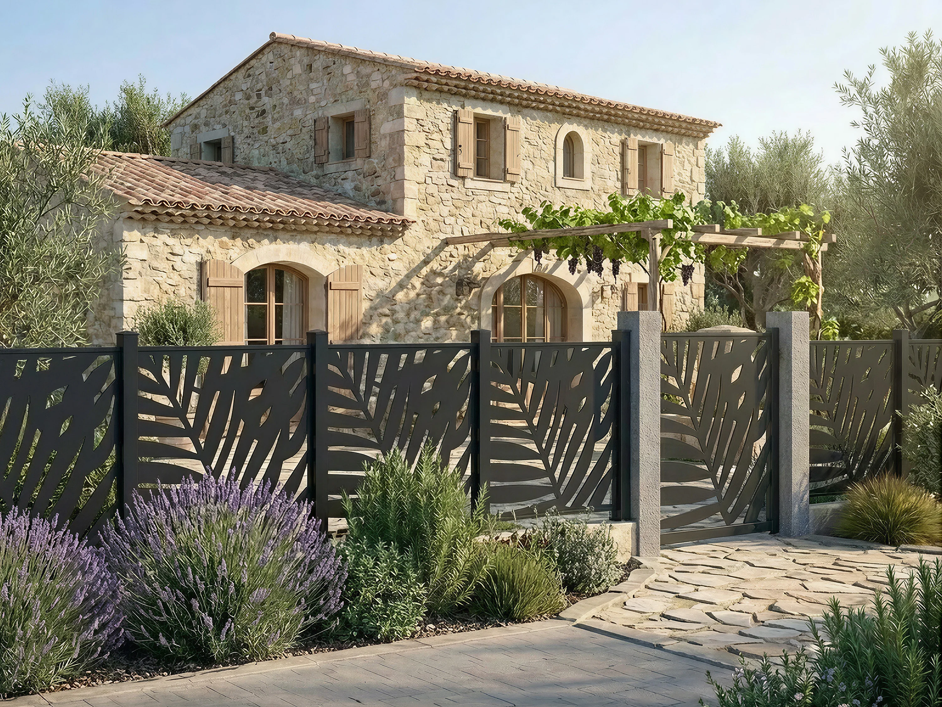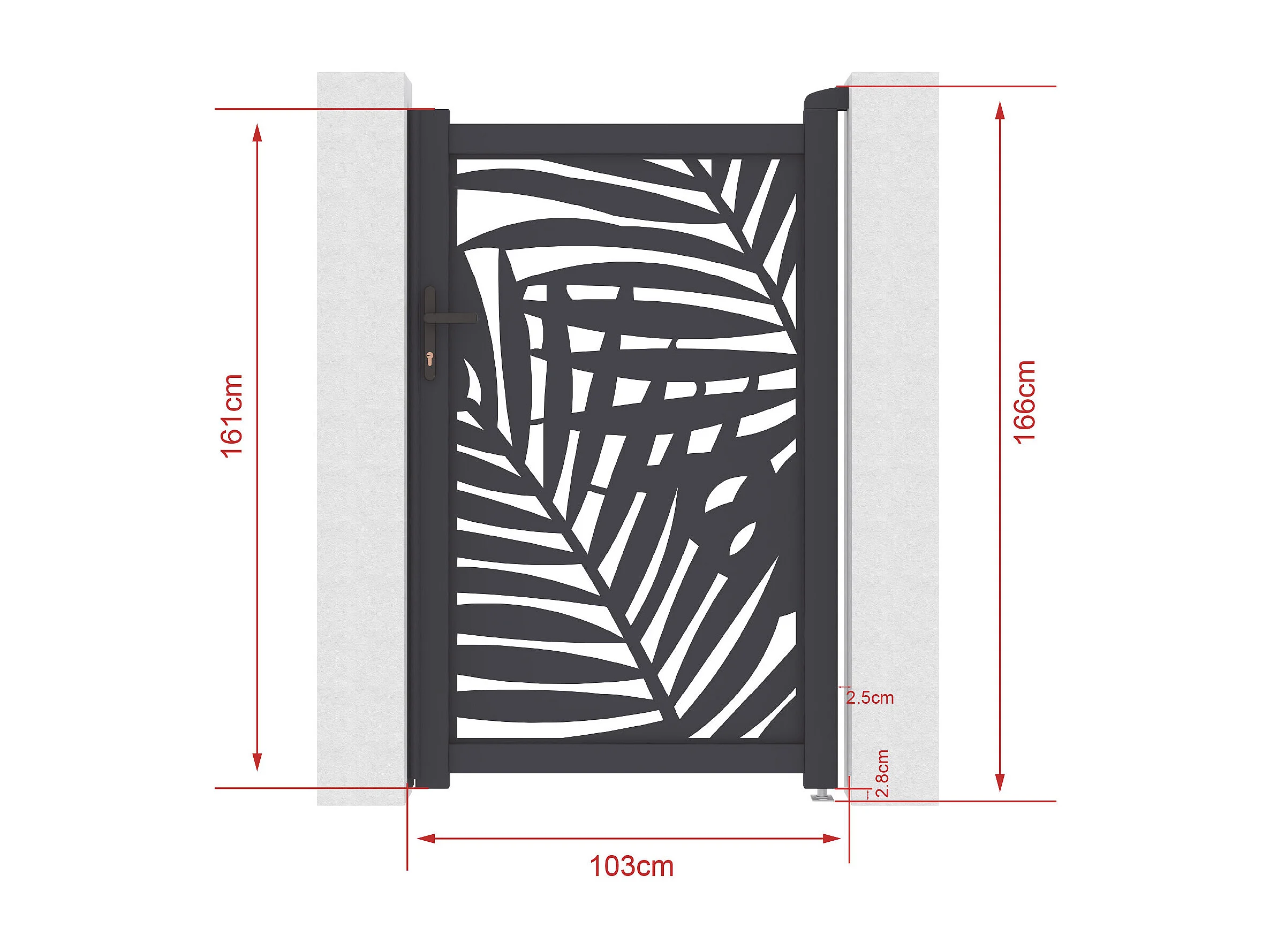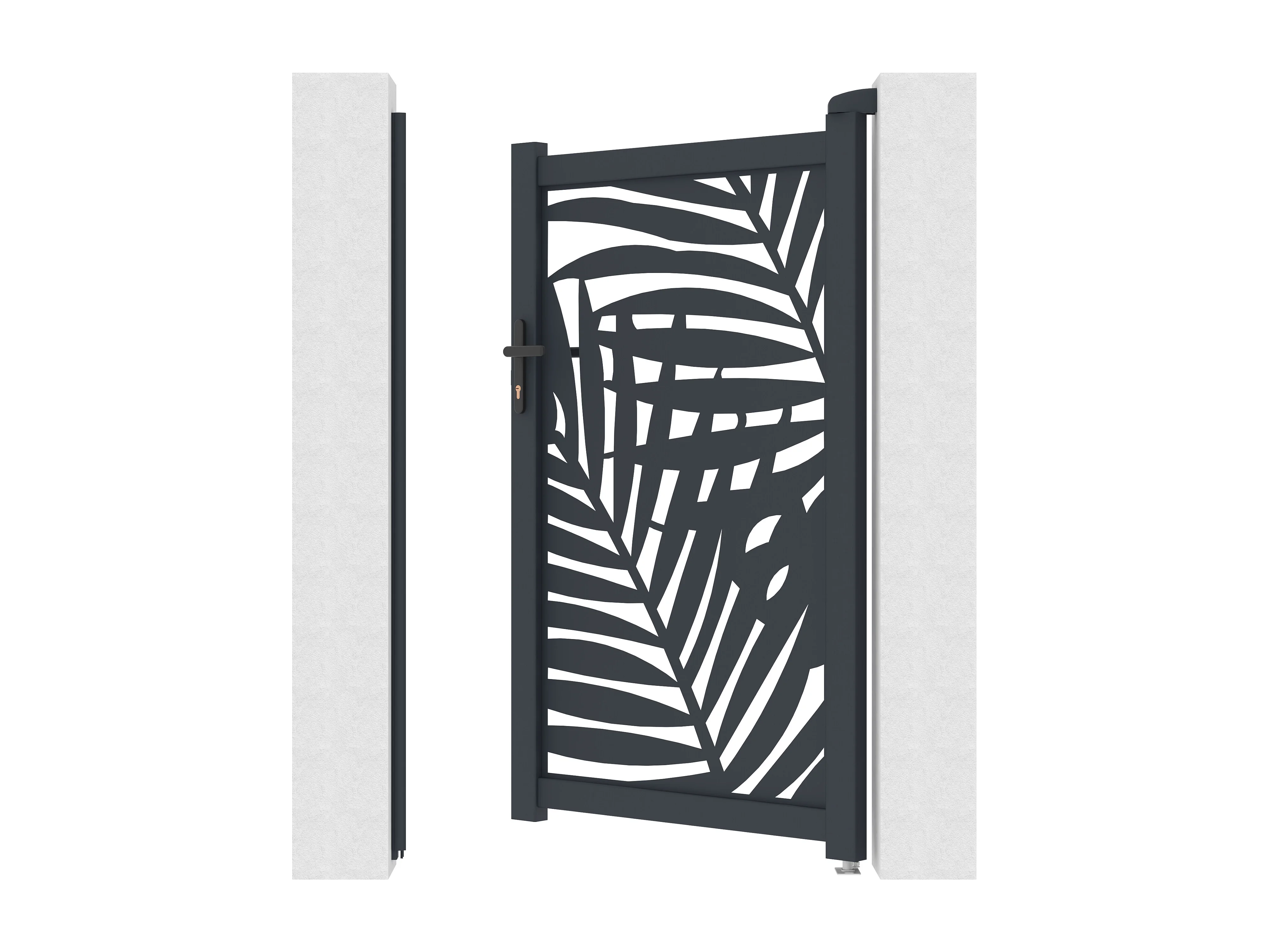 Portillon battant en aluminium à motif tropical en découpe laser - L103 x H166 cm - Anthracite - TOGIRO