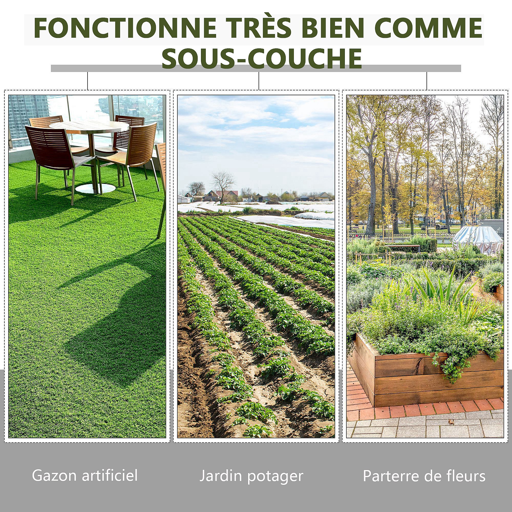 Toile de paillage - toile anti mauvaises herbes 130 g/m² - indéchirable perméable à l'eau anti UV - PP noir vert