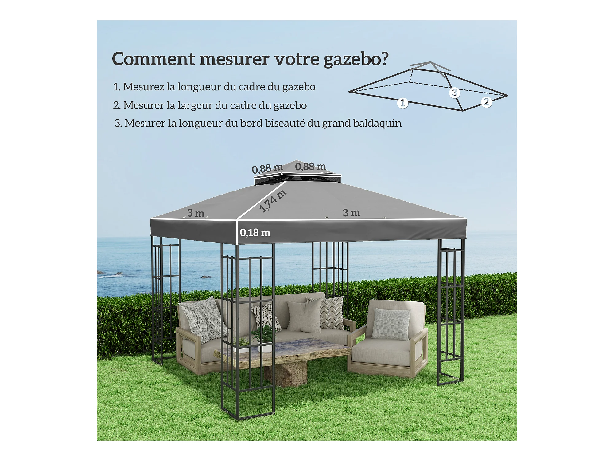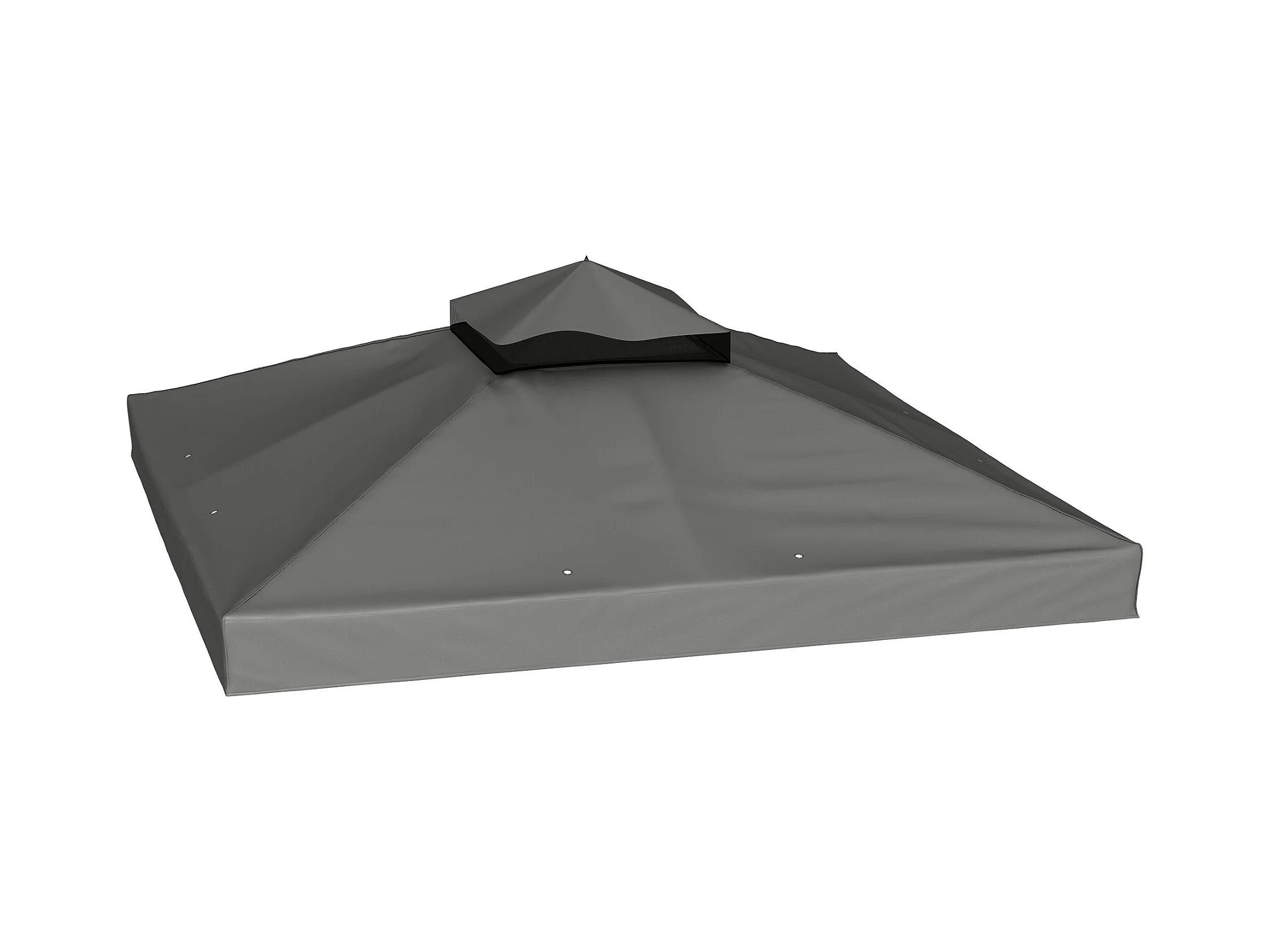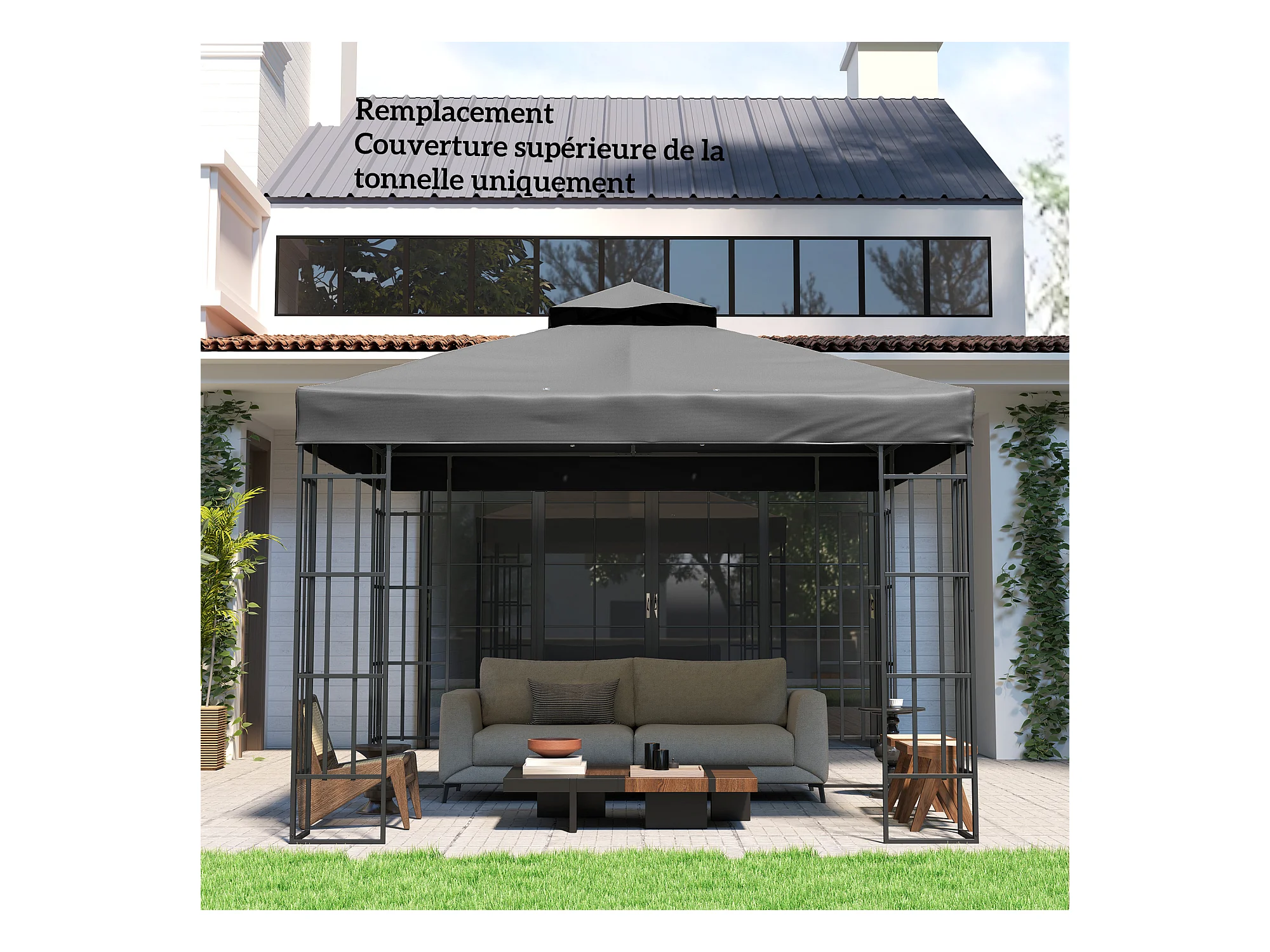 Toile de rechange barnum tonnelle 3 x 3 m - toit double avec œillets drainage - polyester haute densité 370 g/m² gris
