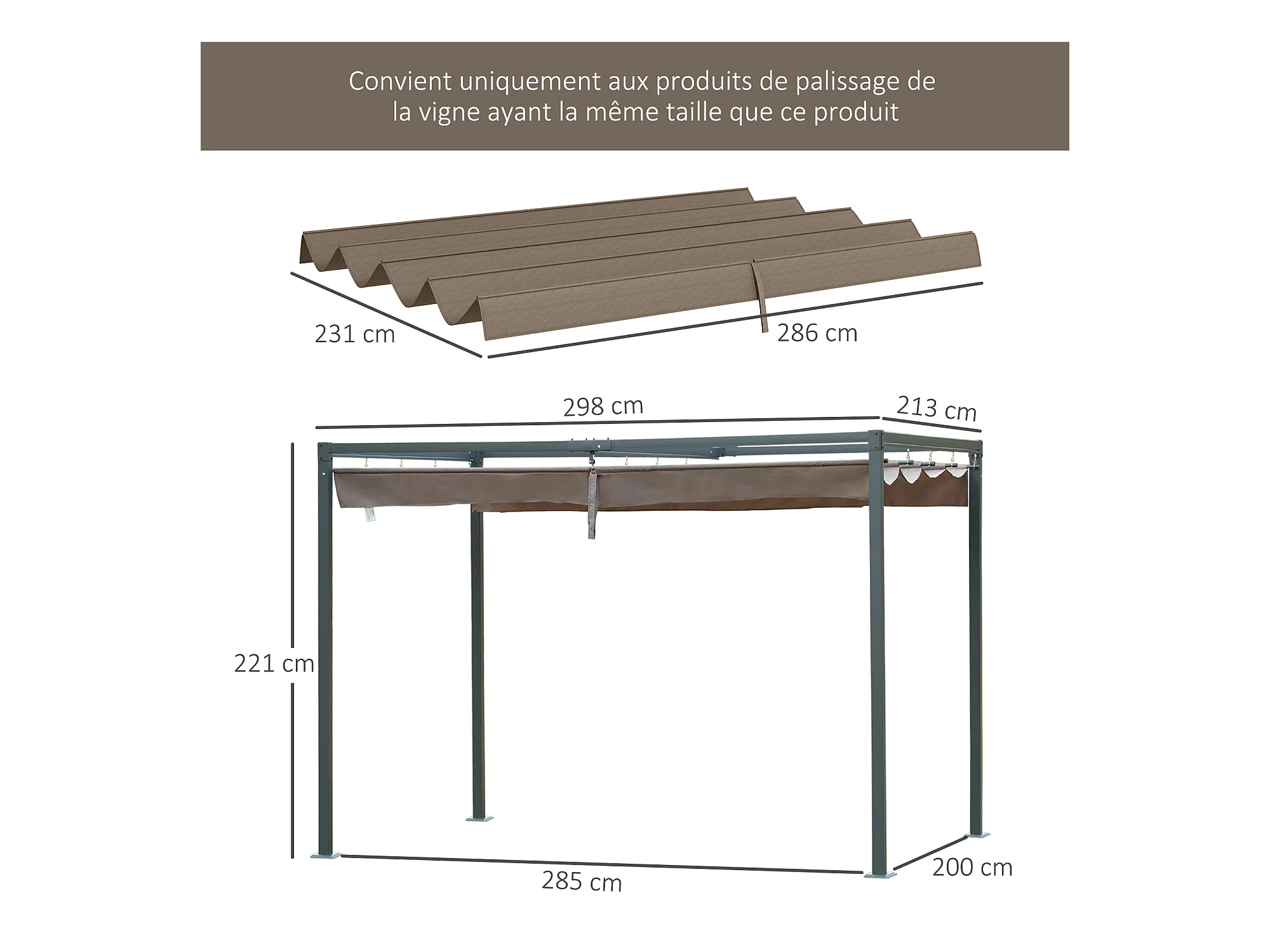 Toile de rechange pour pergola rétractable 3 x 2,15 m polyester haute densité 180 g/m² anti-UV30+ taupe