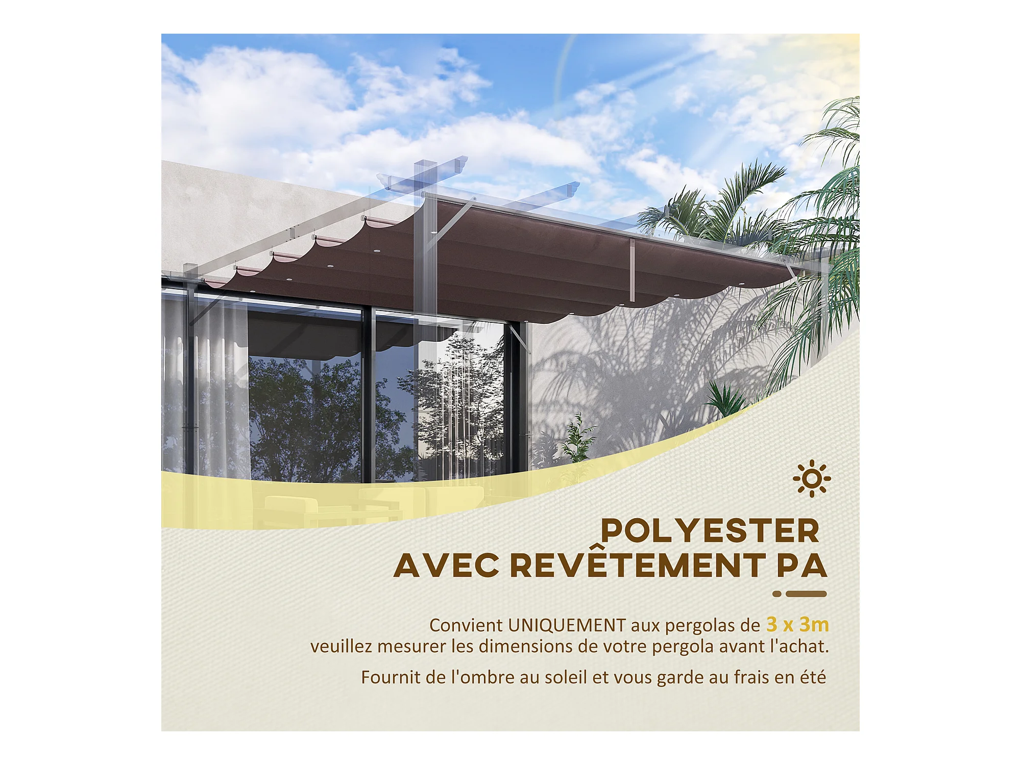 Toile de rechange pour pergola rétractable 3 x 3 m polyester haute densité 180 g/m² imperméabilisé chocolat