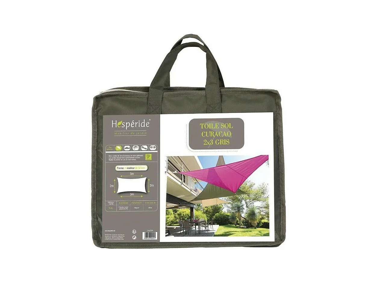 Toile solaire 3x2m Curacao gris Hespéride - Gris, forme rectangulaire 2 x 3m