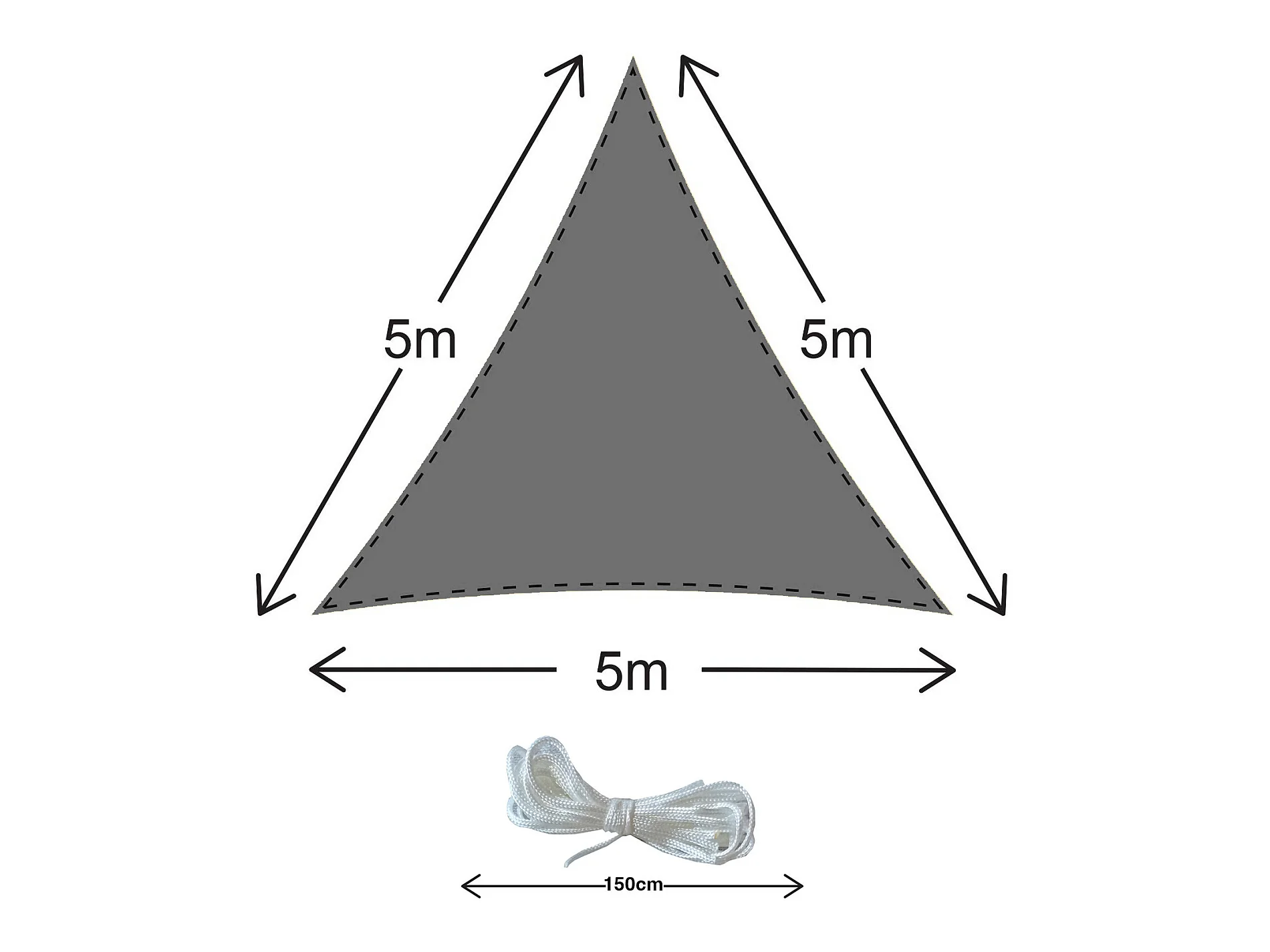 Toile Solaire Triangulaire Polyéthylène Gris avec Cordes 5x5x5