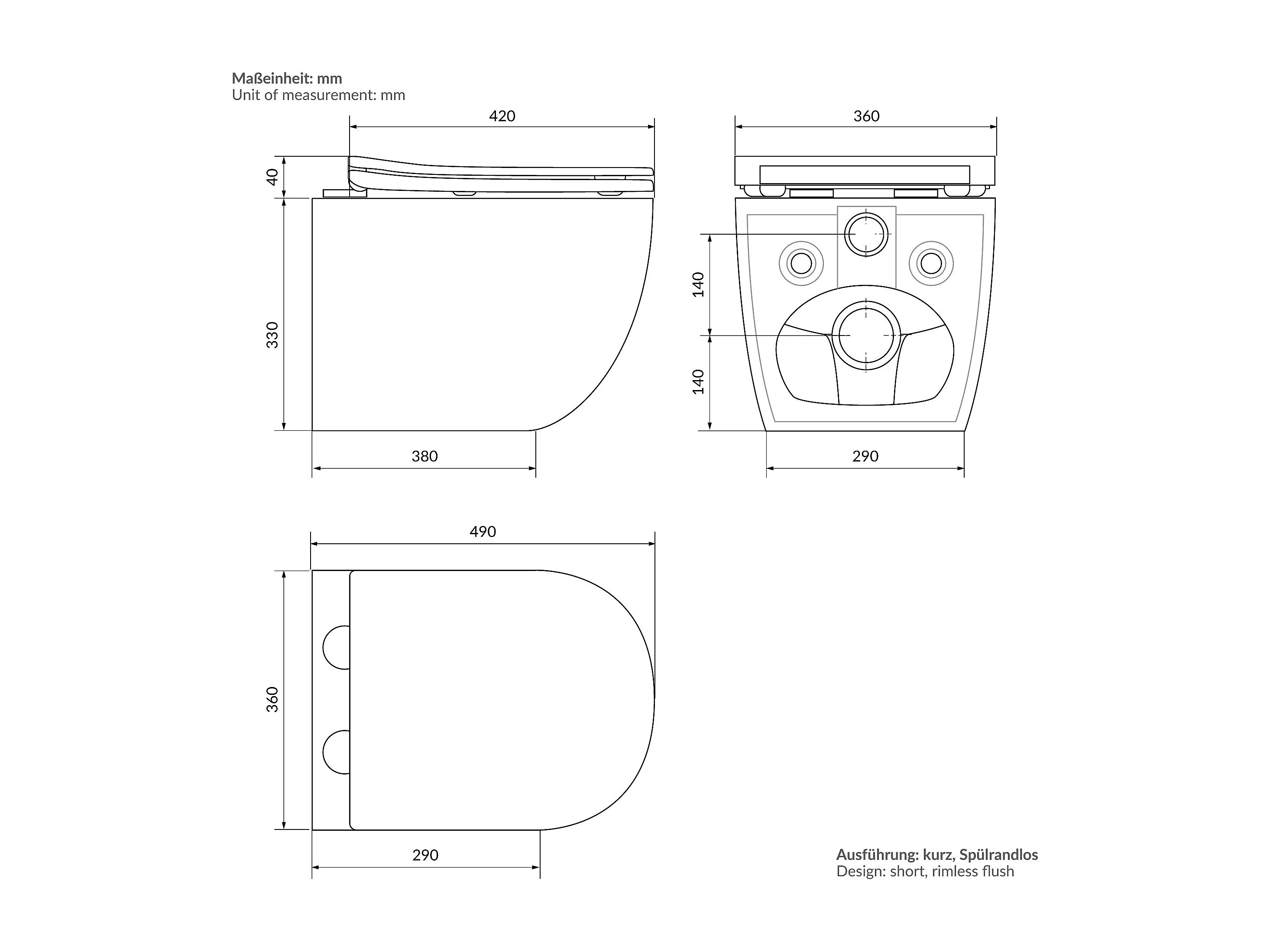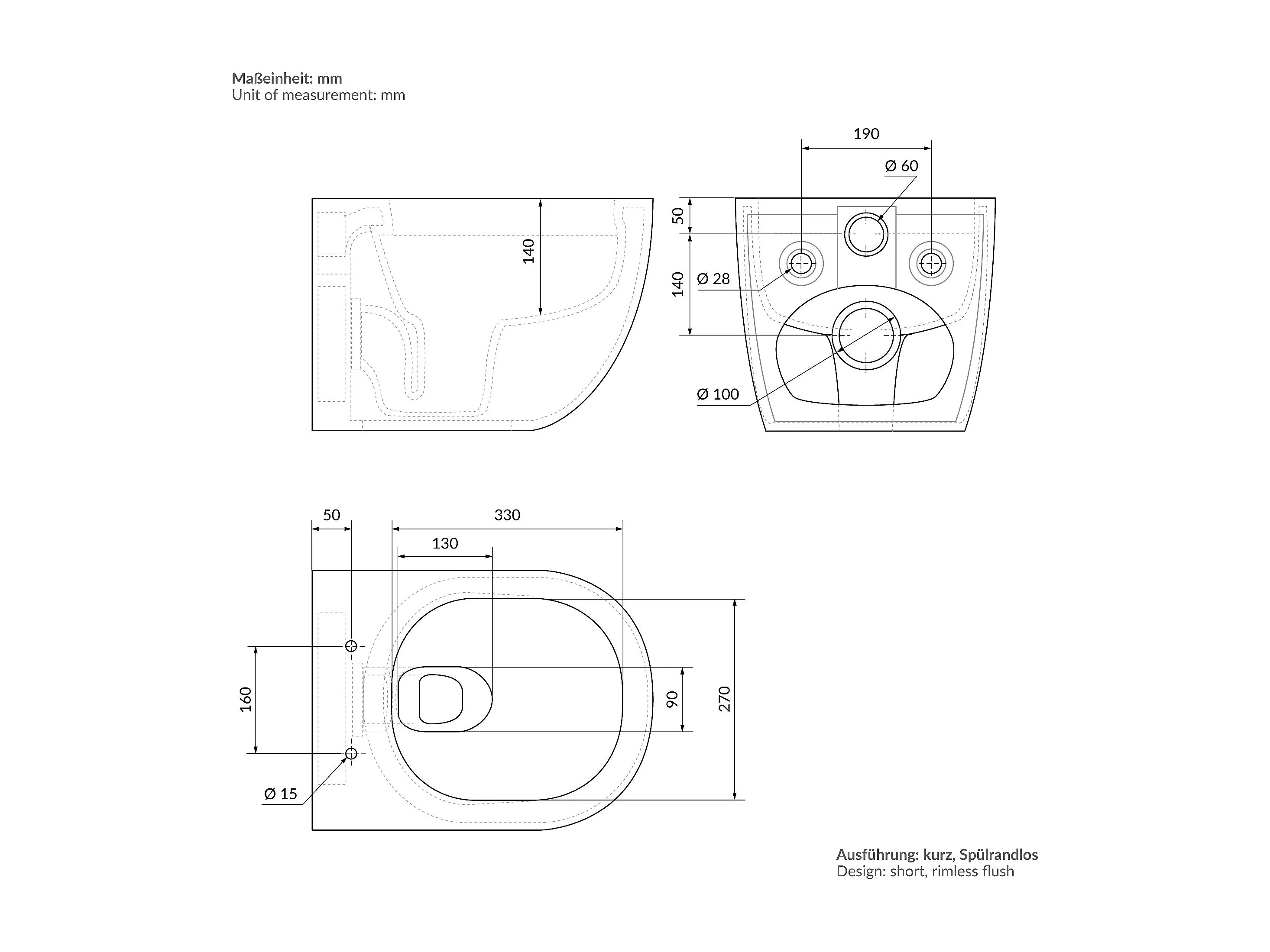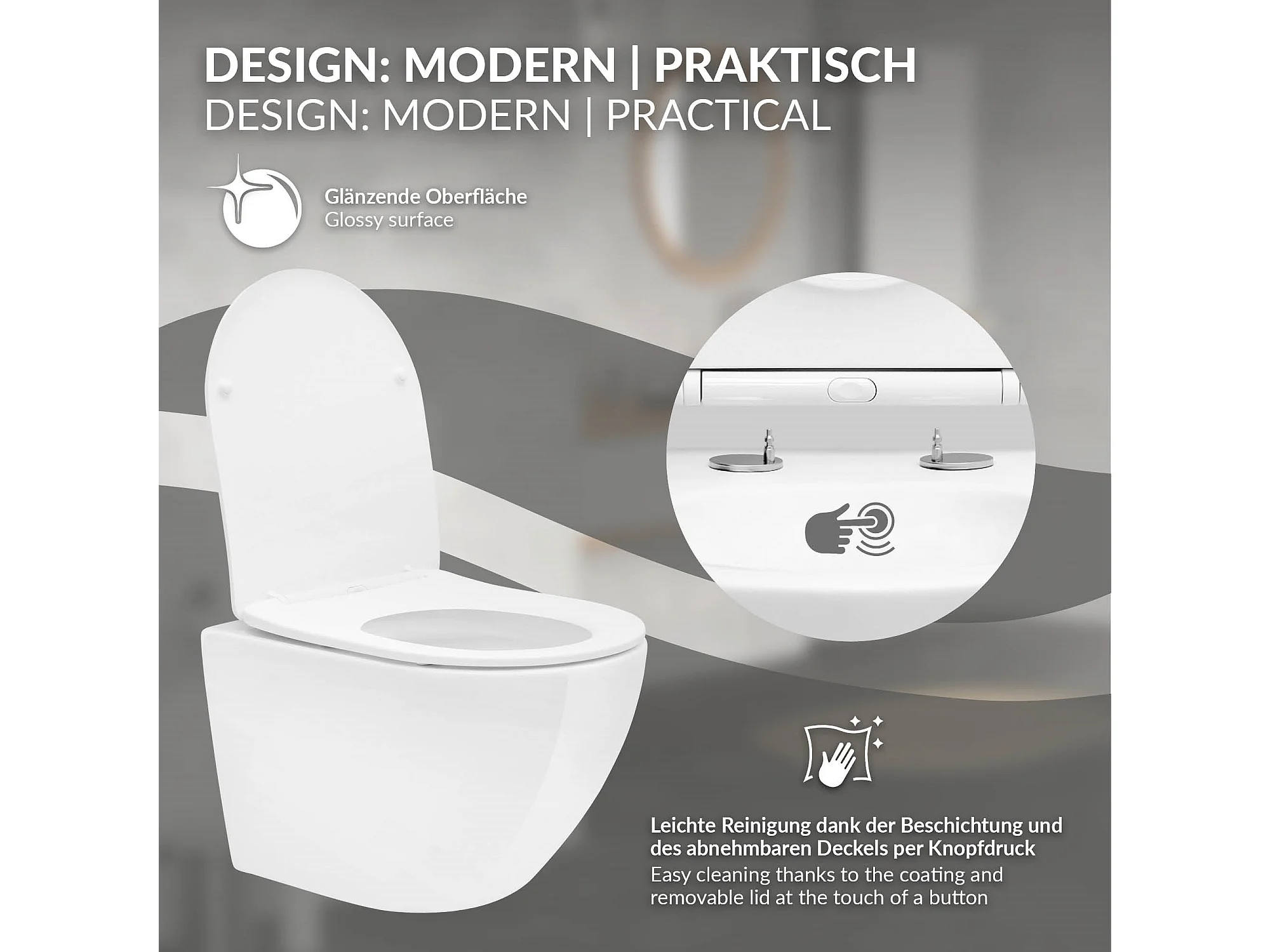 ECD Germany WC Suspendu sans Bride, Court, 49 cm, Blanc Brillant, Cuvette en Céramique avec Surface Antibactérienne, Abattant Amovible en Plastique