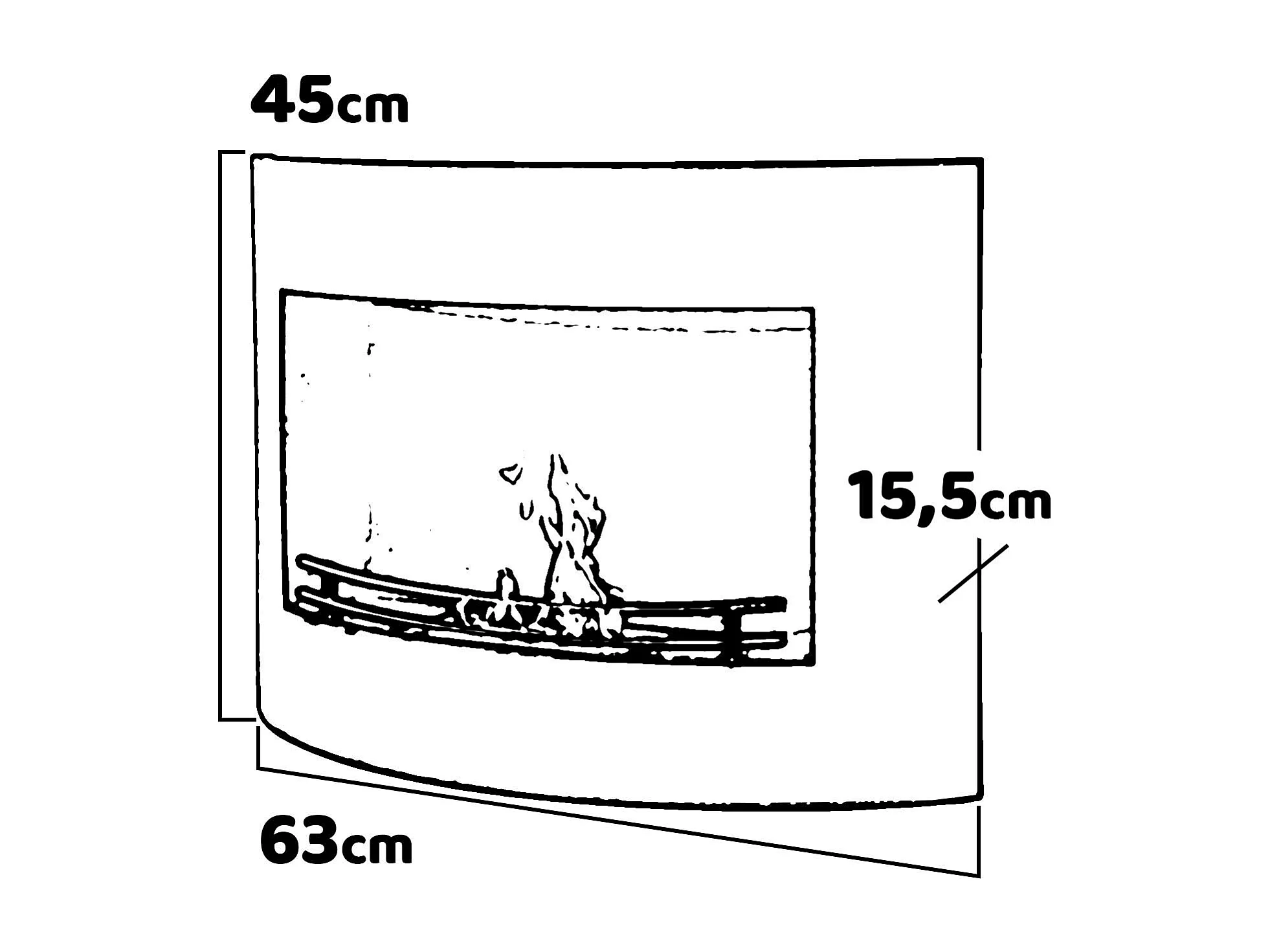 Tokyo - Cheminée éthanol murale avec bord arrondi 63x15,5xH45 cm
