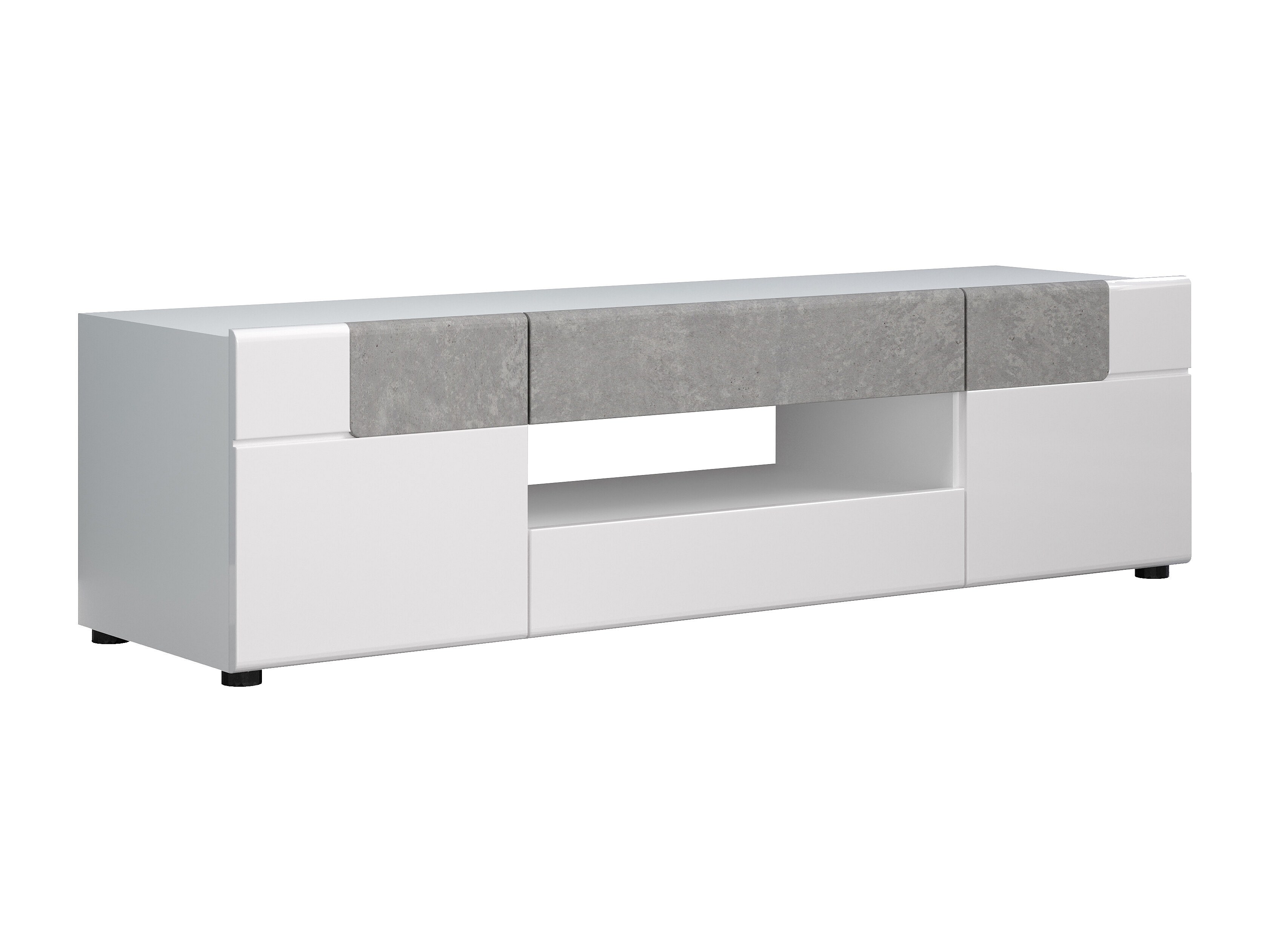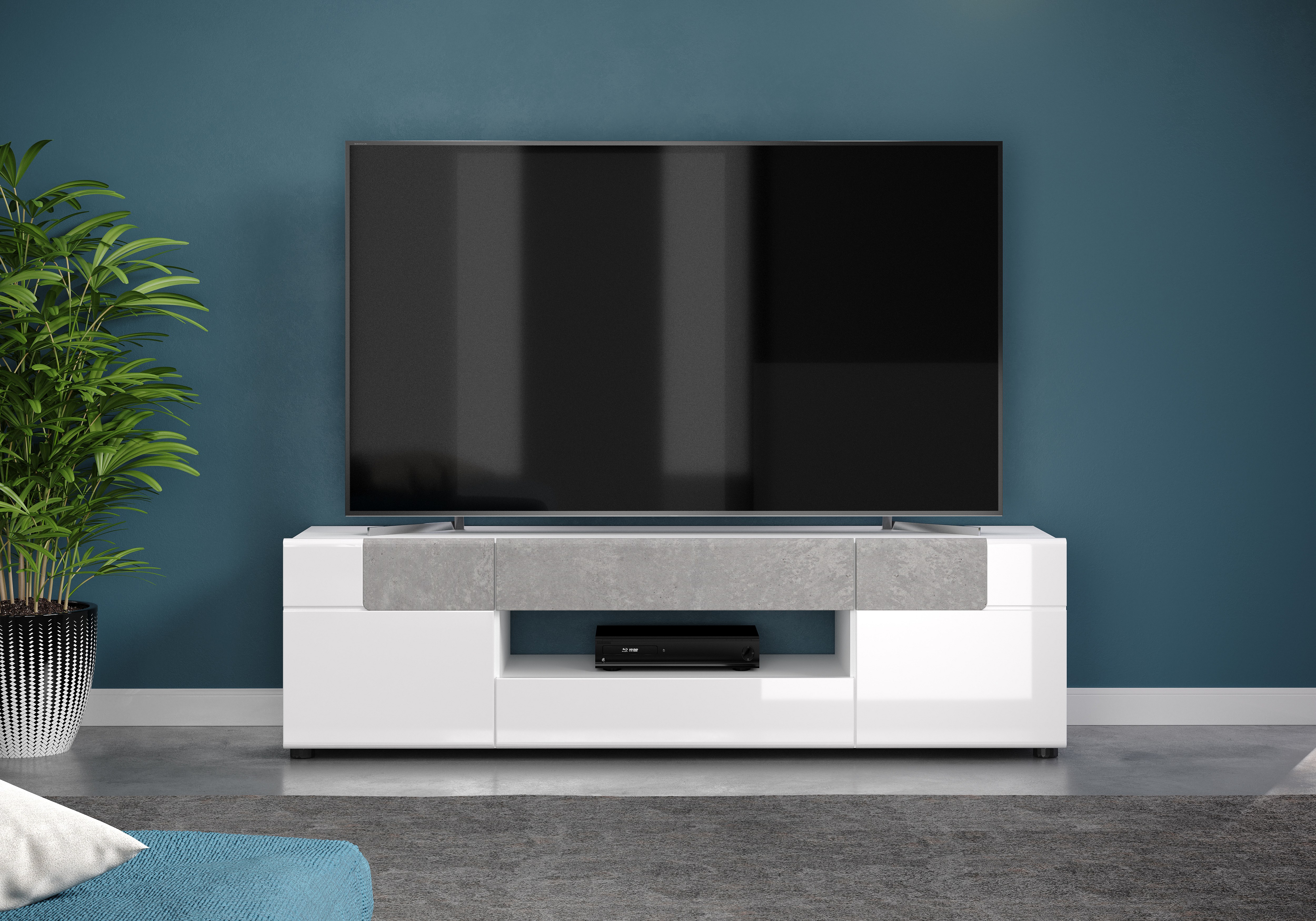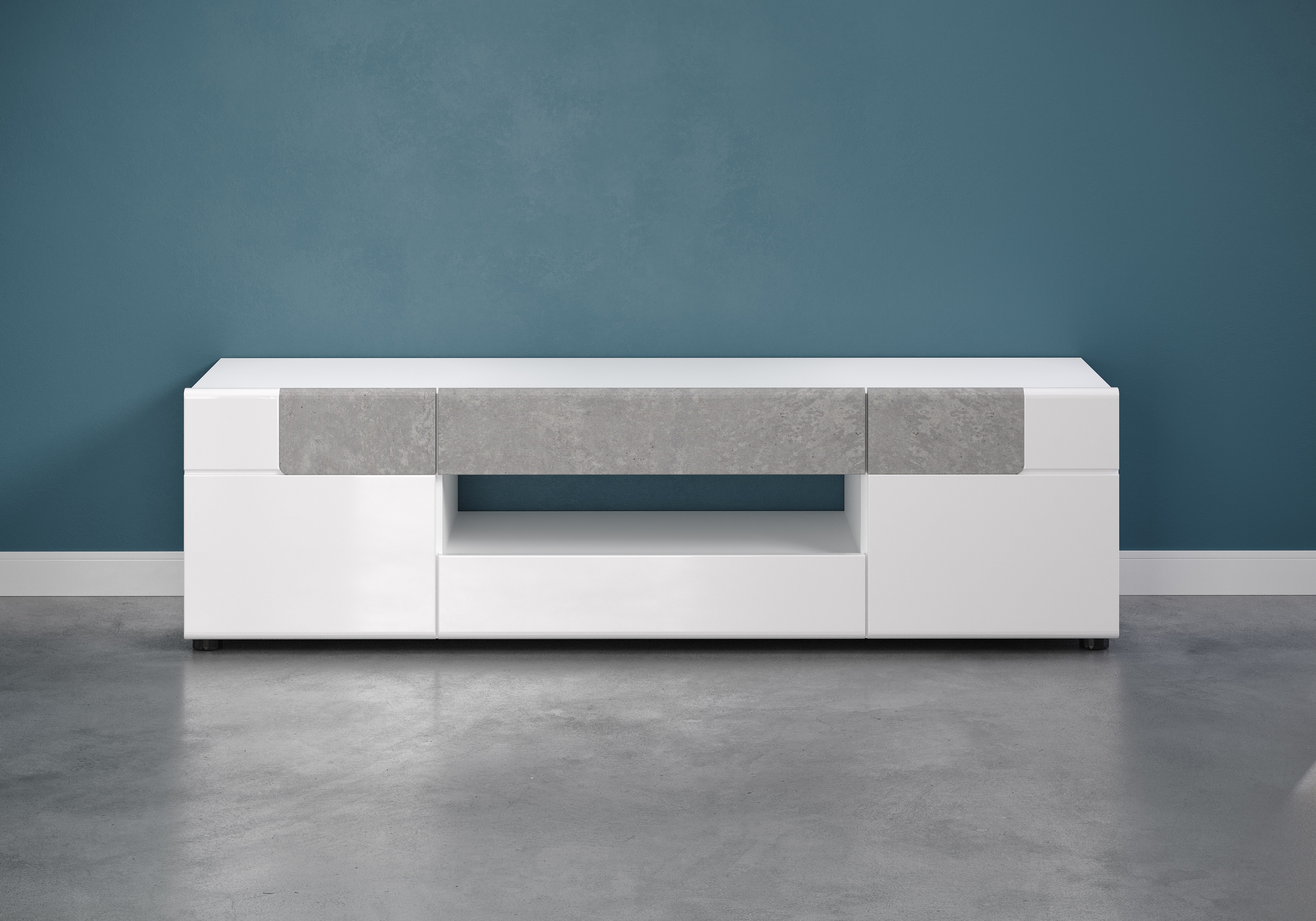 Meuble TV laqué blanc et gris clair ciment Tako 153cm