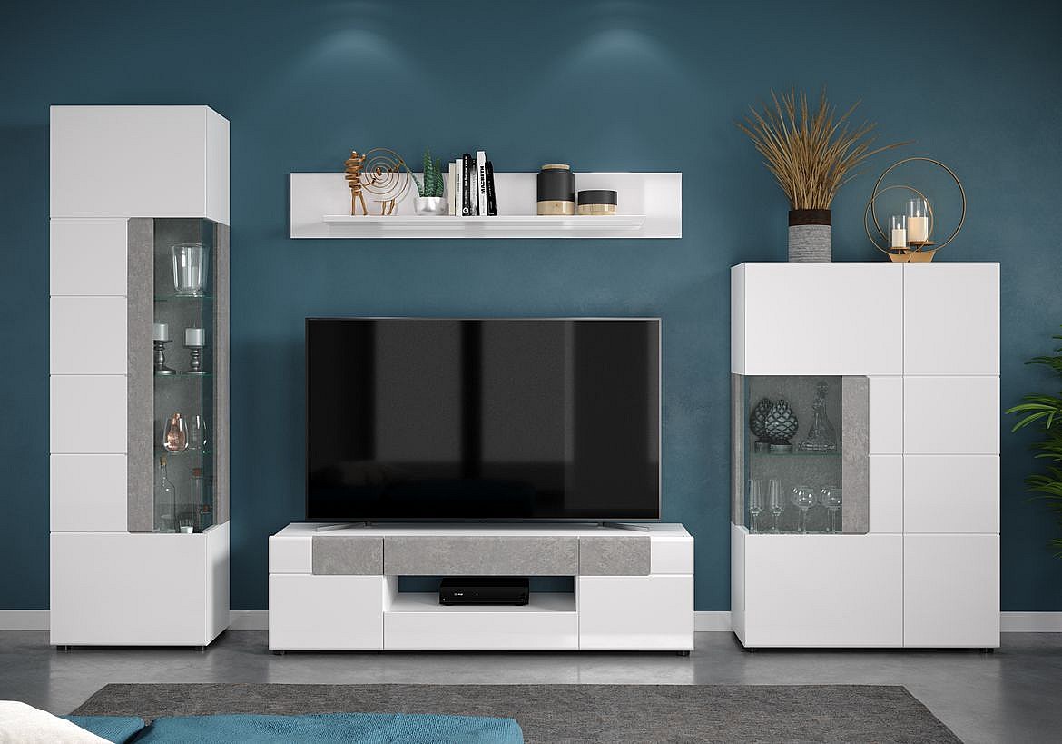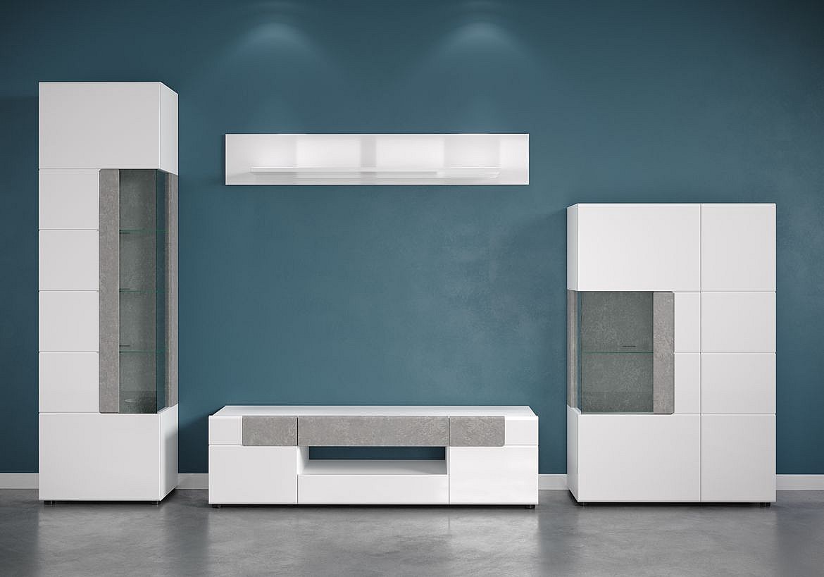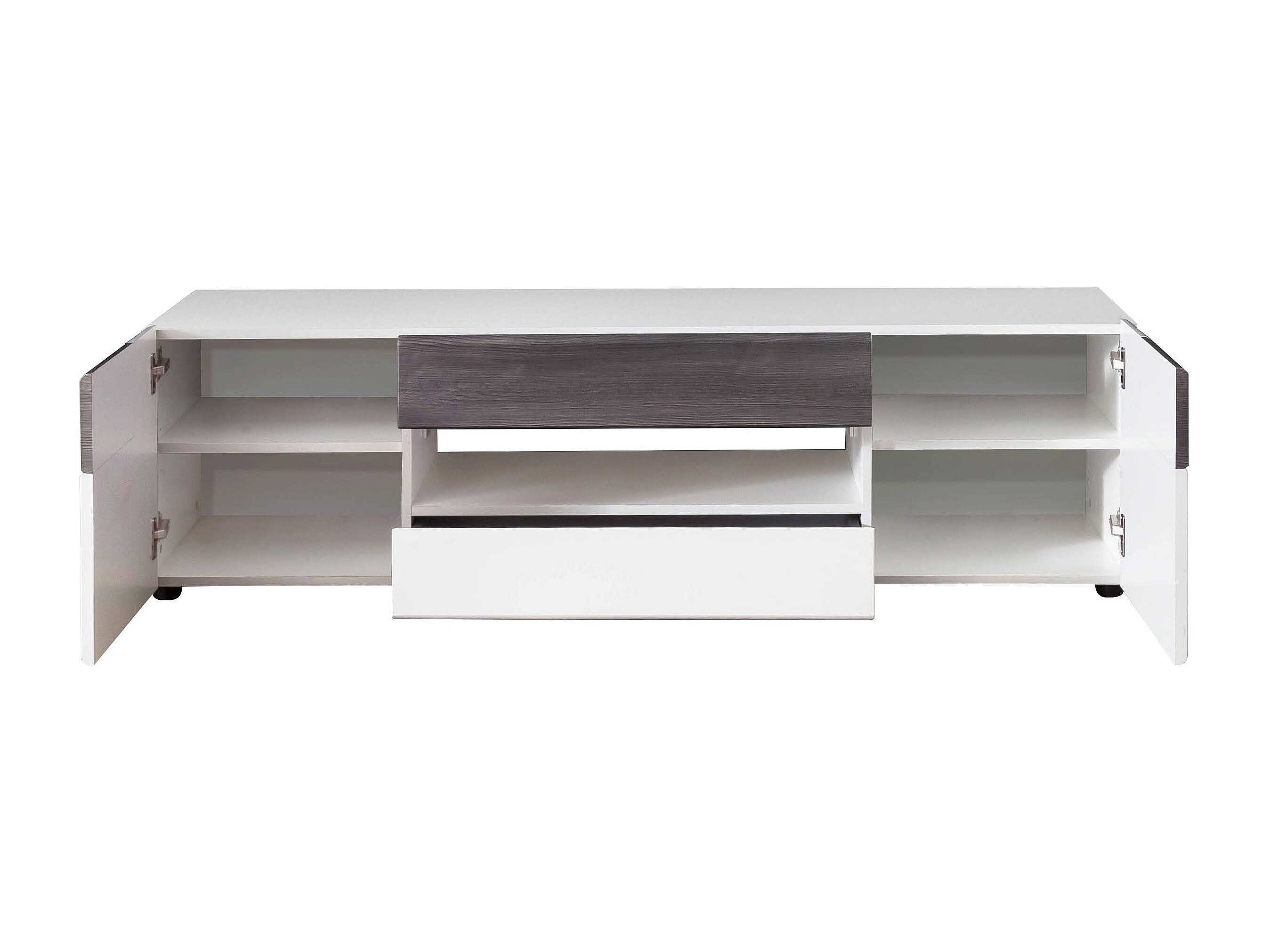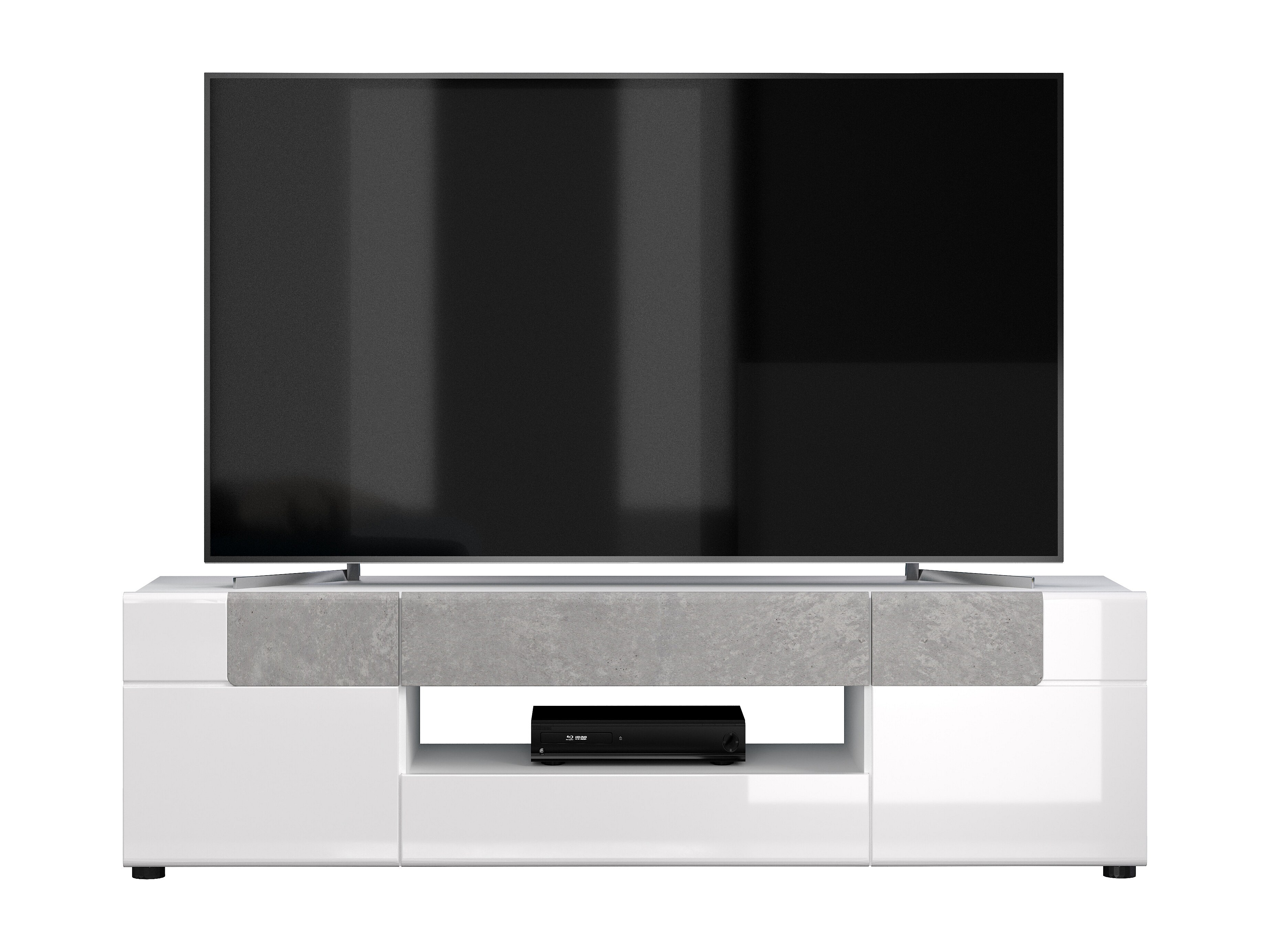 Meuble TV laqué blanc et gris clair ciment Tako 153cm