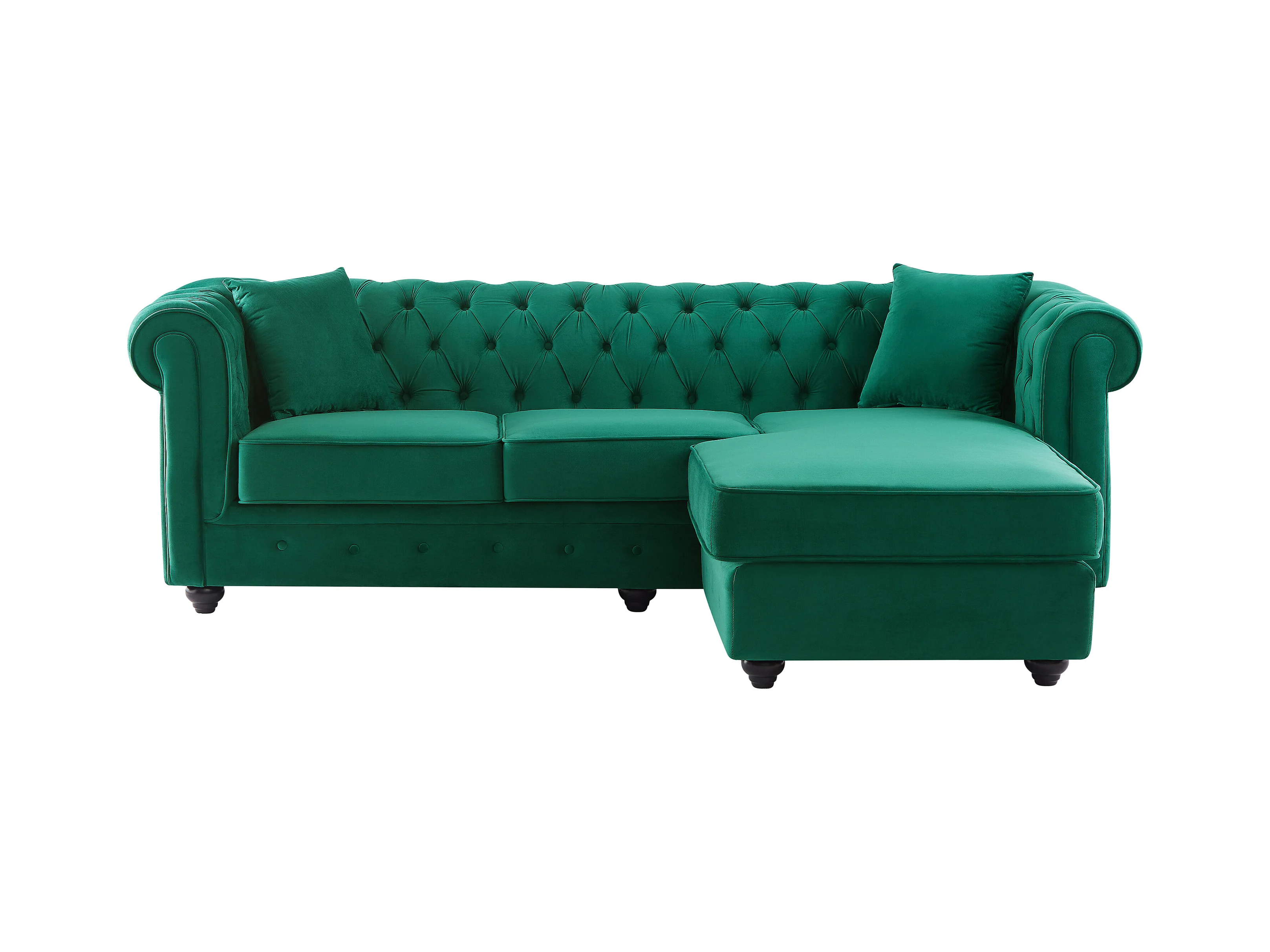 Canapé d'angle chesterfield réversible en velours vert TOLEDO