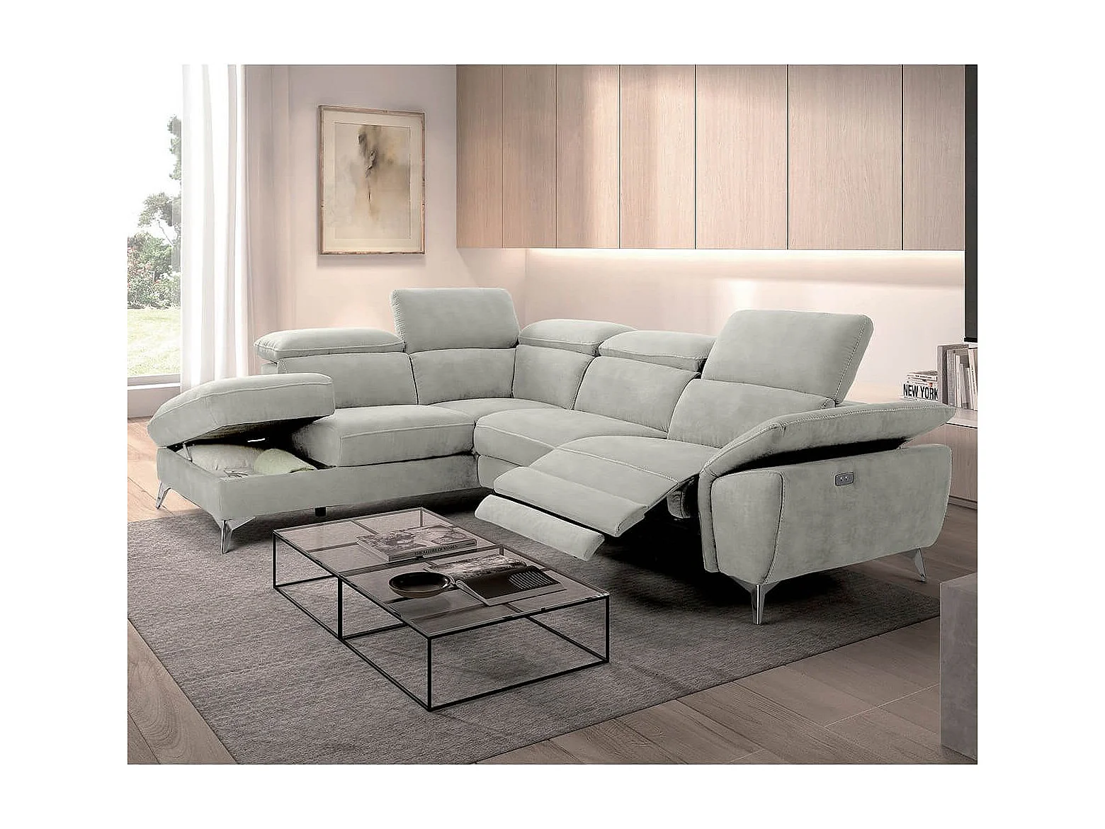 TOLEDO - Canapé d'Angle Gauche 1 Relax Electrique Gris Clair