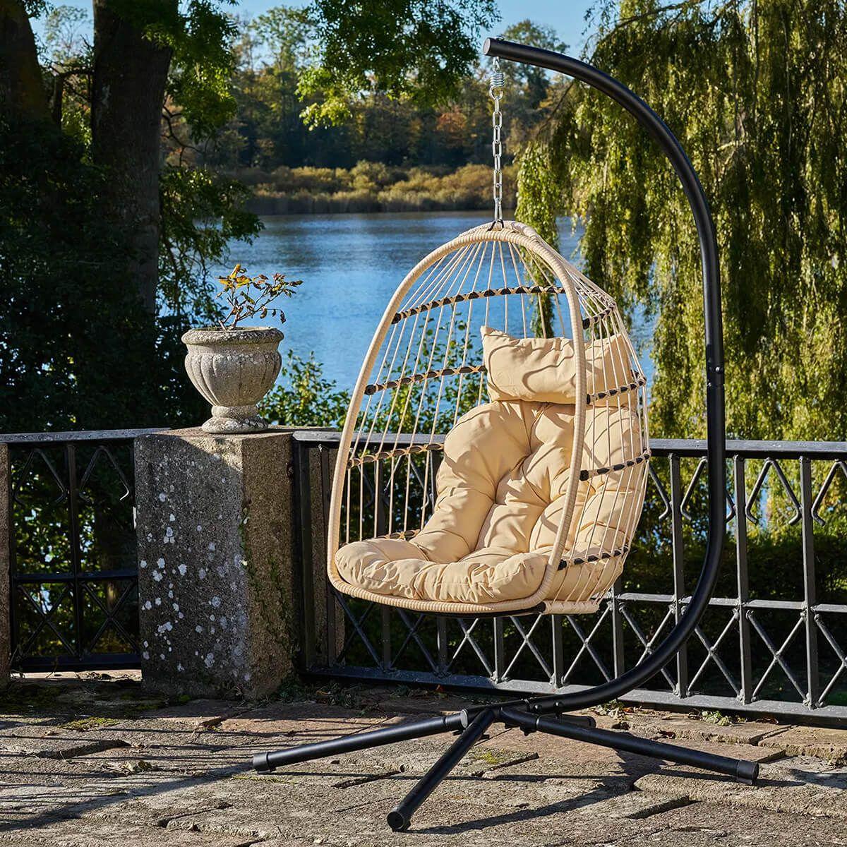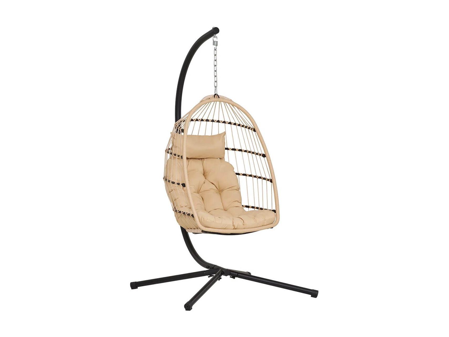 TOLIUM - Chaise suspendue avec Support en Acier + Rotin Synthétique et Corde