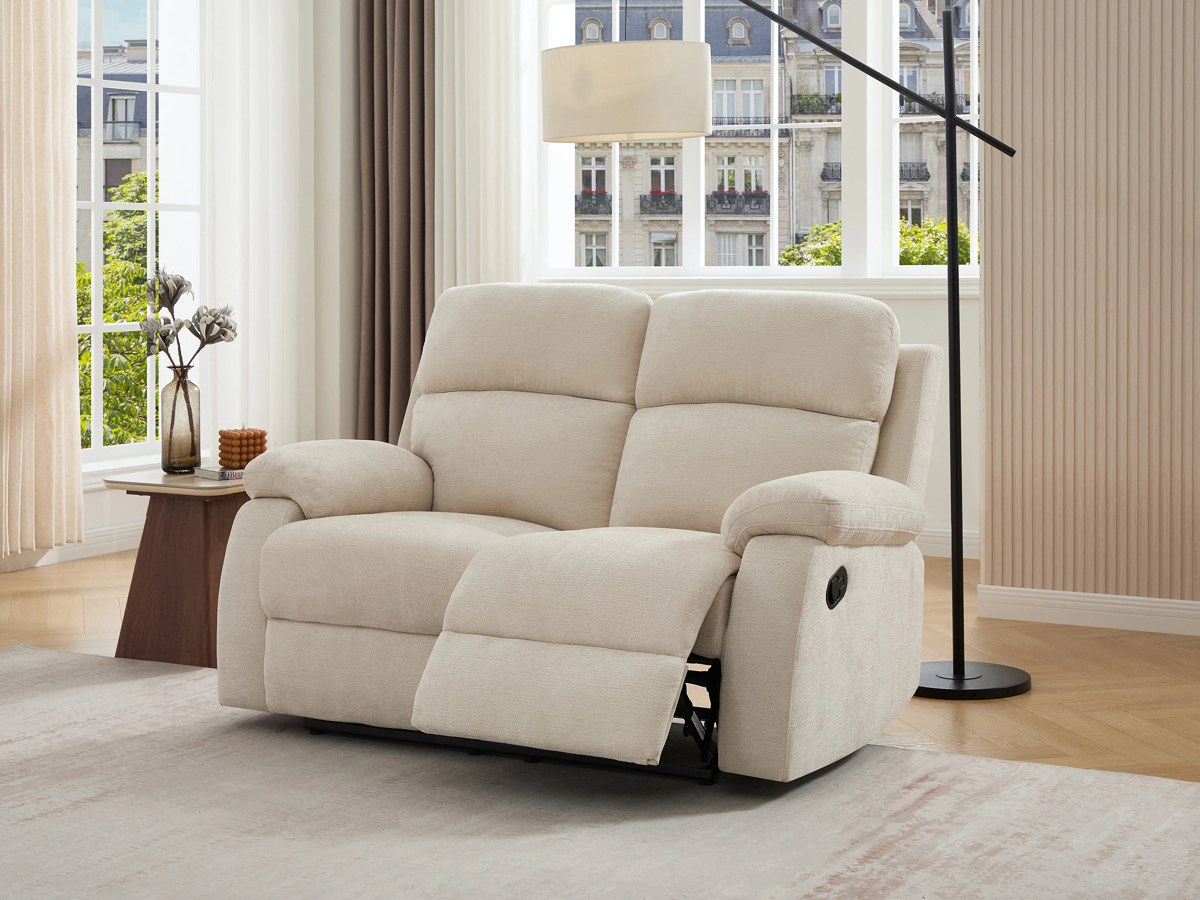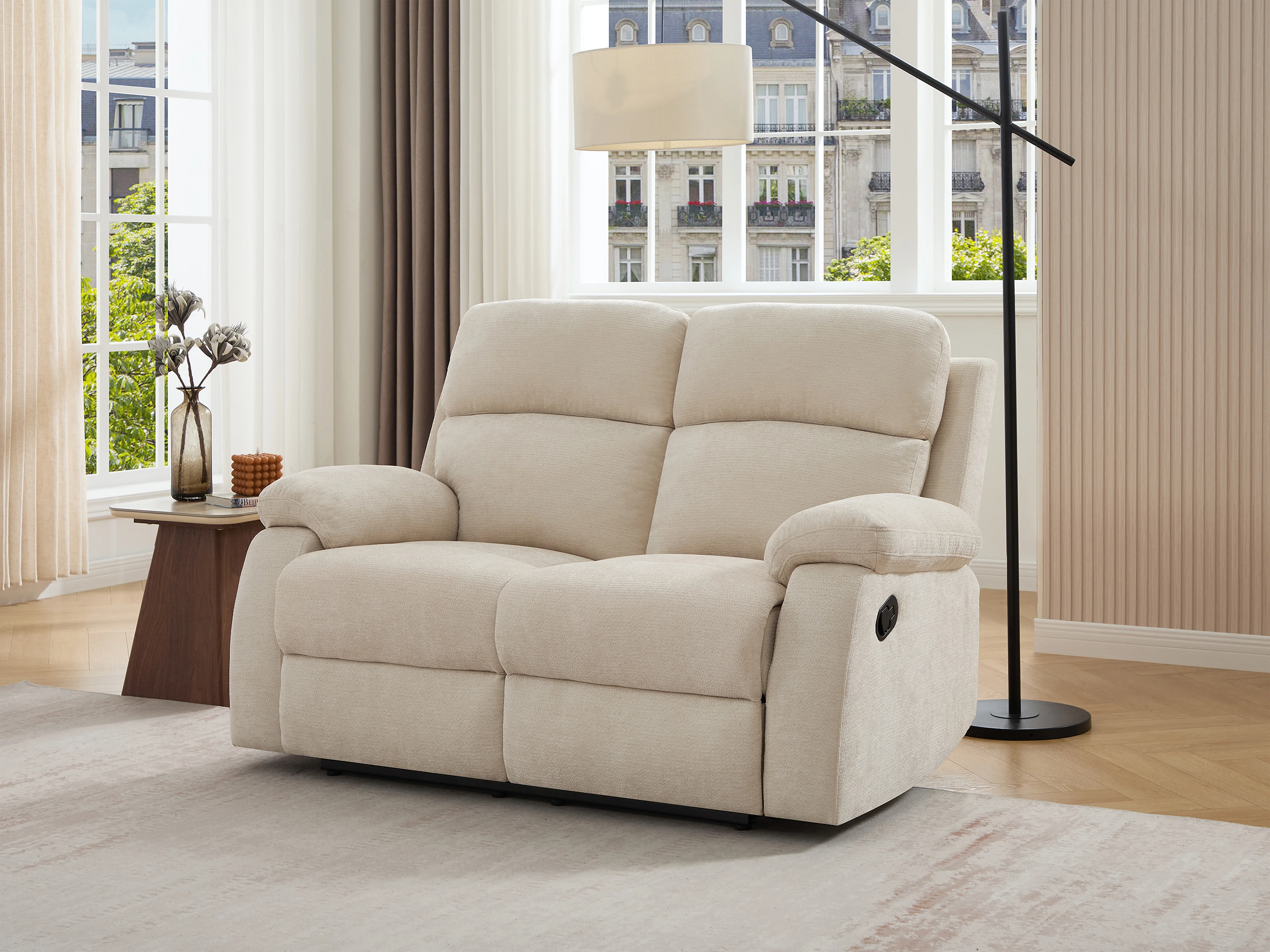 Canapé 2 places relax en tissu texturé beige TOLZANO
