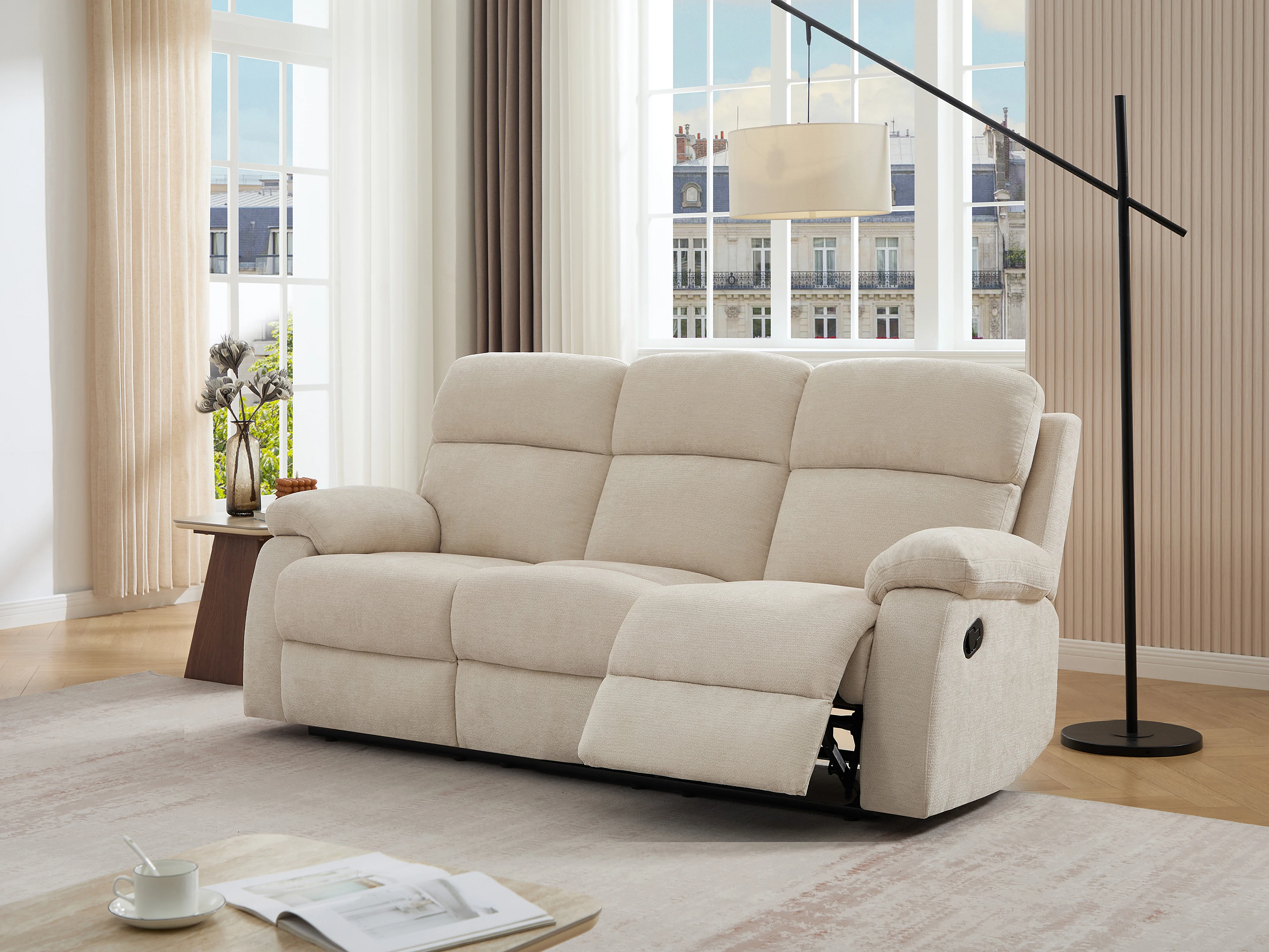 Canapé 3 places relax en tissu texturé beige TOLZANO