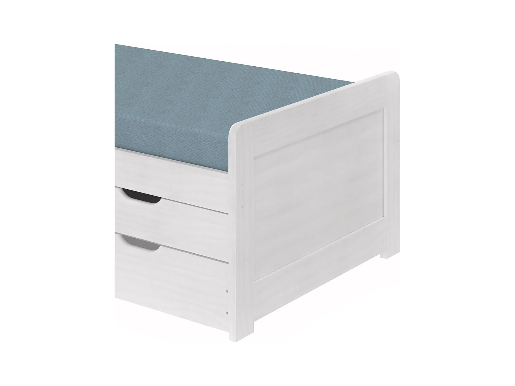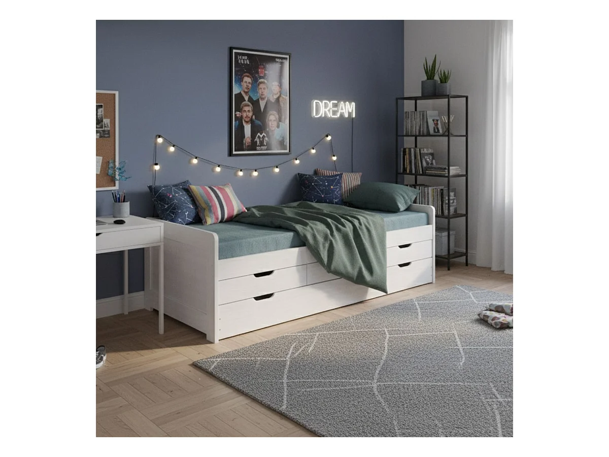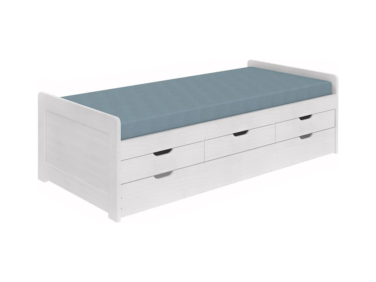 TOMMY - Lit Gigogne 90x200 avec Tiroirs en Bois Massif Cérusé Blanc