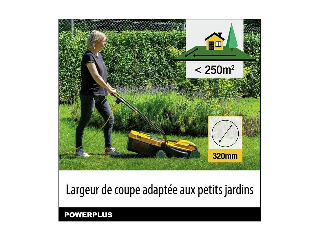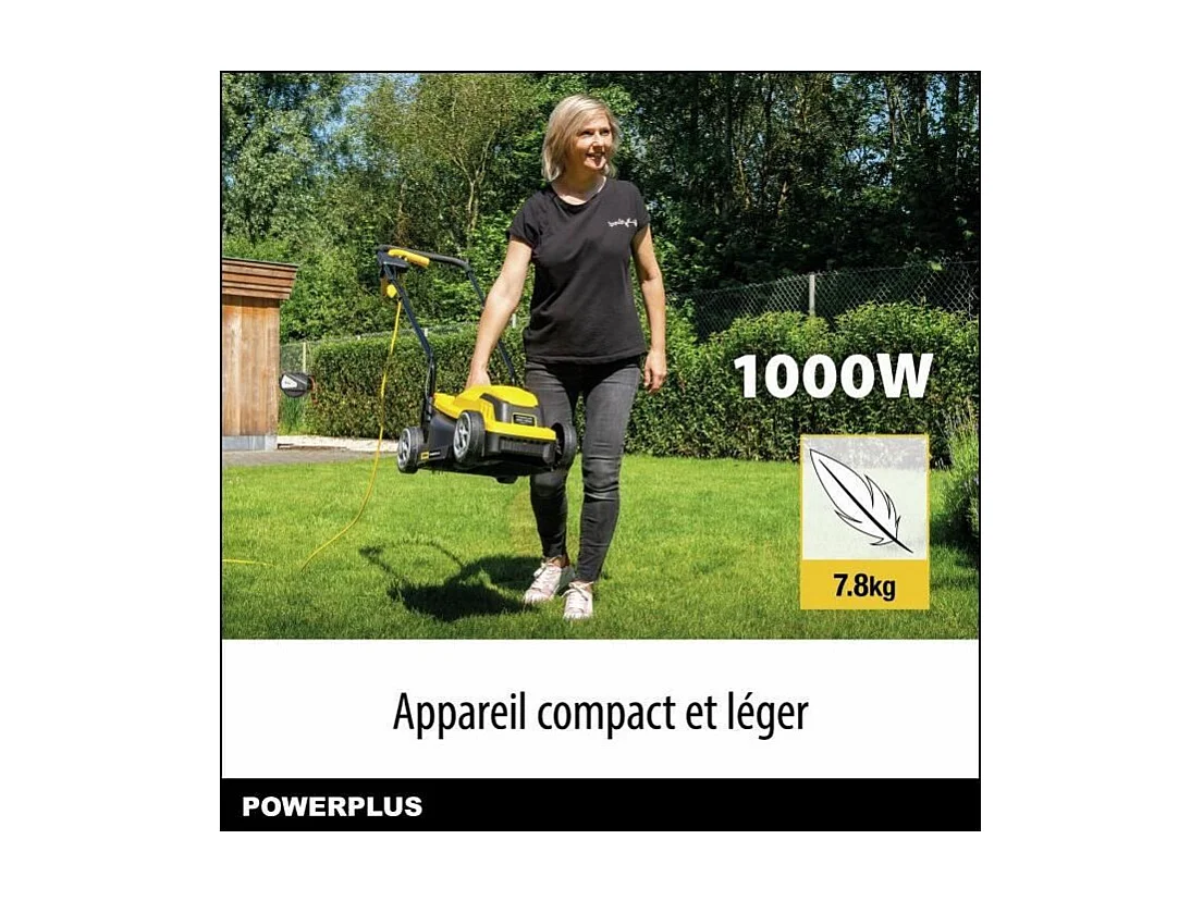 Tondeuse a gazon électrique - POWERPLUS - POWEG62203 - 1000 W - 320 mm Ø - Avec ramassage et éjection arriere
