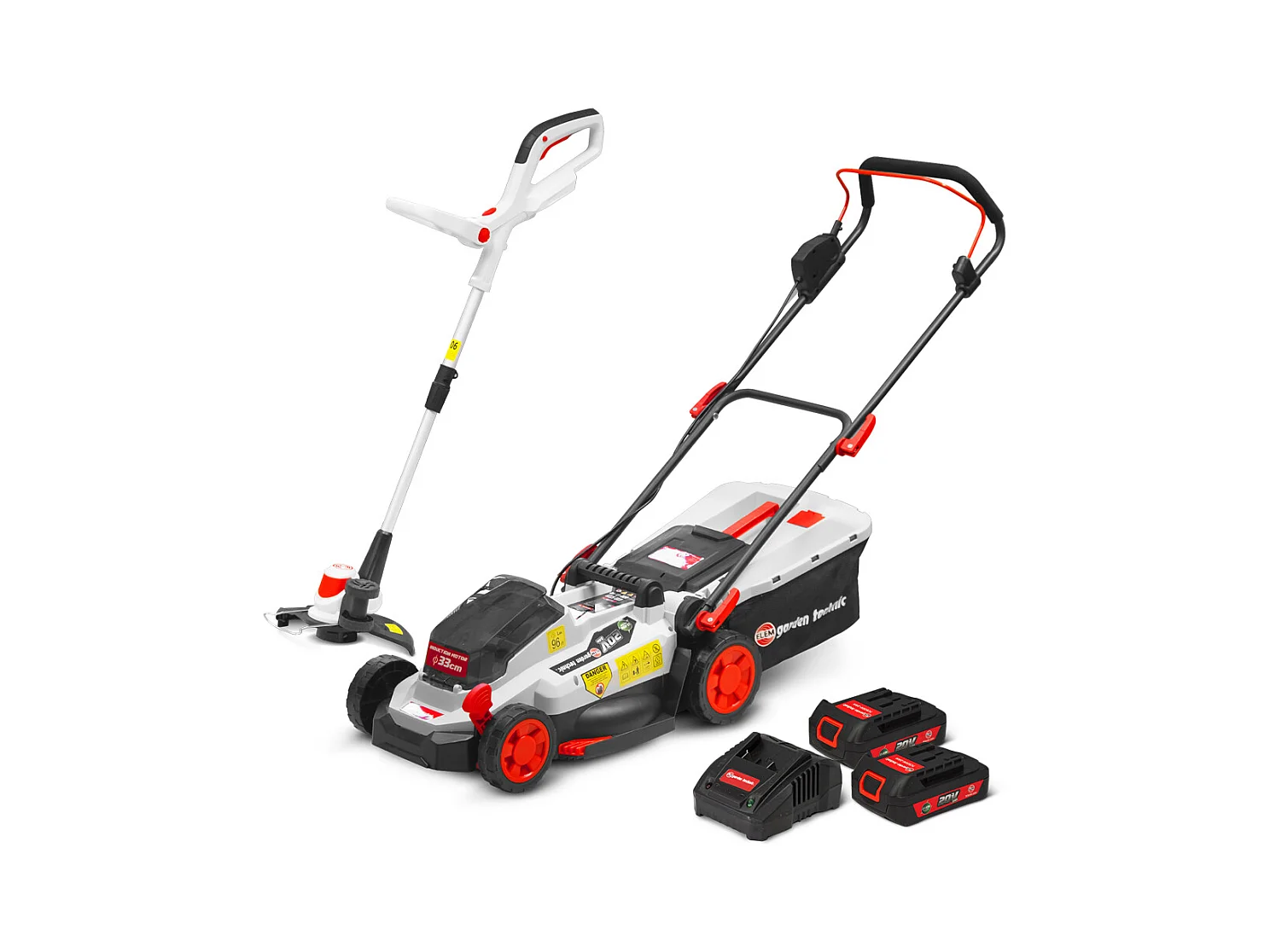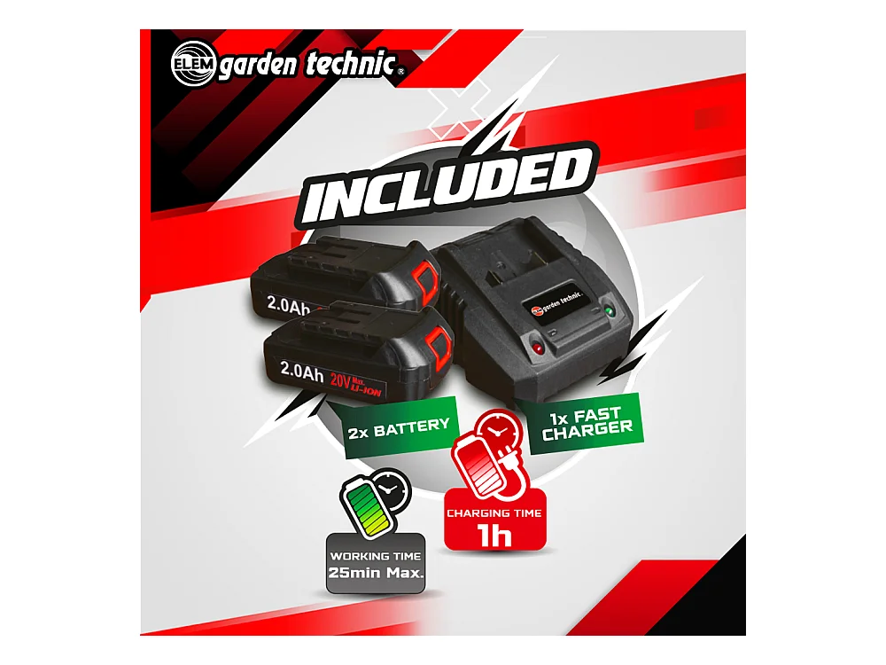 Tondeuse et coupe bordures rechargeables 20V max + 2 batteries - Elem Garden.