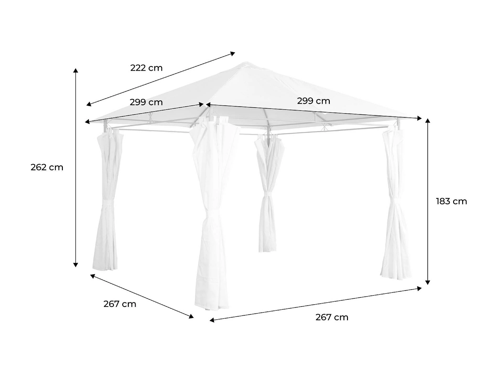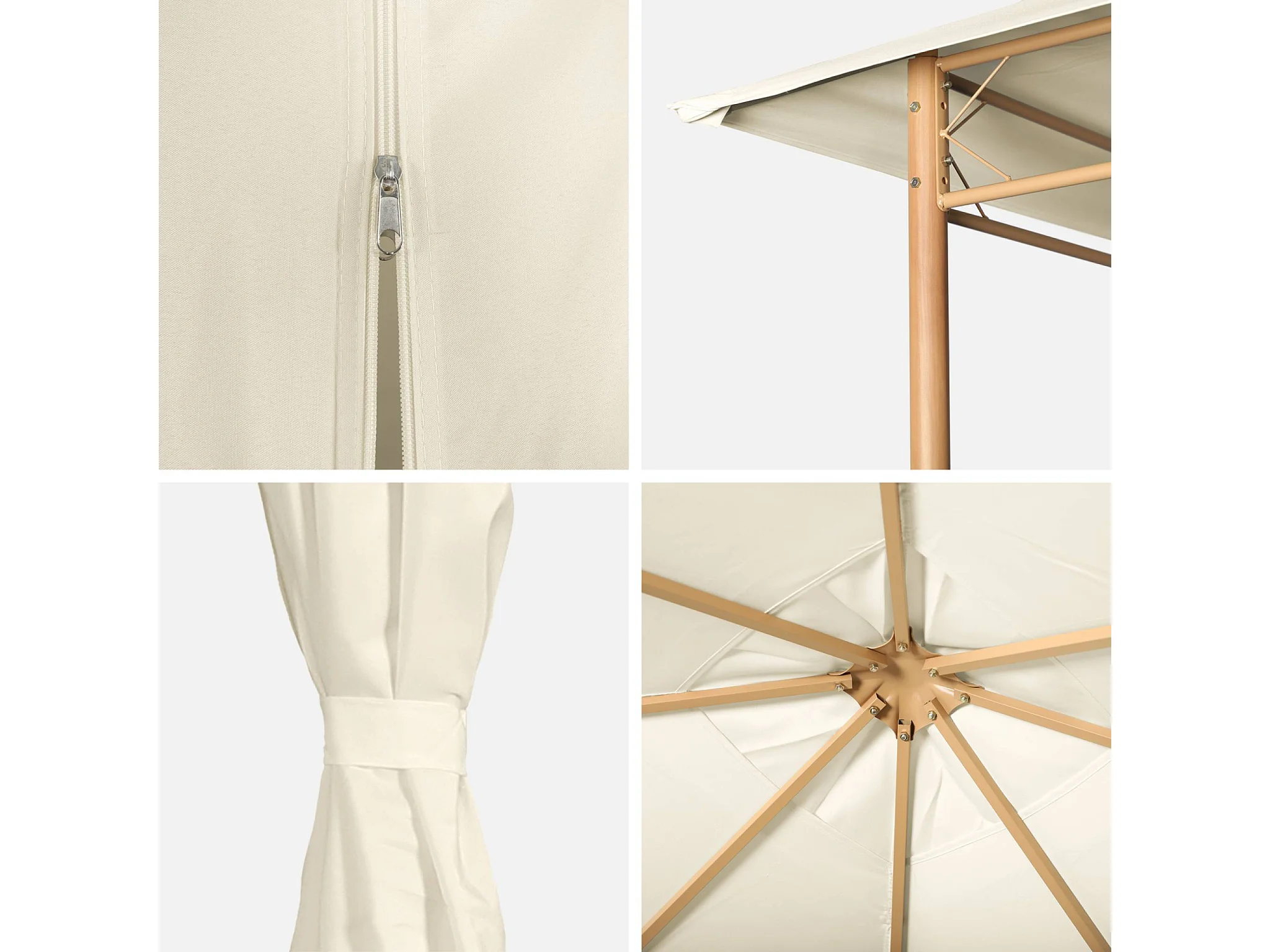 Tonnelle 3x3 m - Elusa - Imitation bois. toile écru - Pergola avec rideaux. tente de jardin. barnum. chapiteau. réception