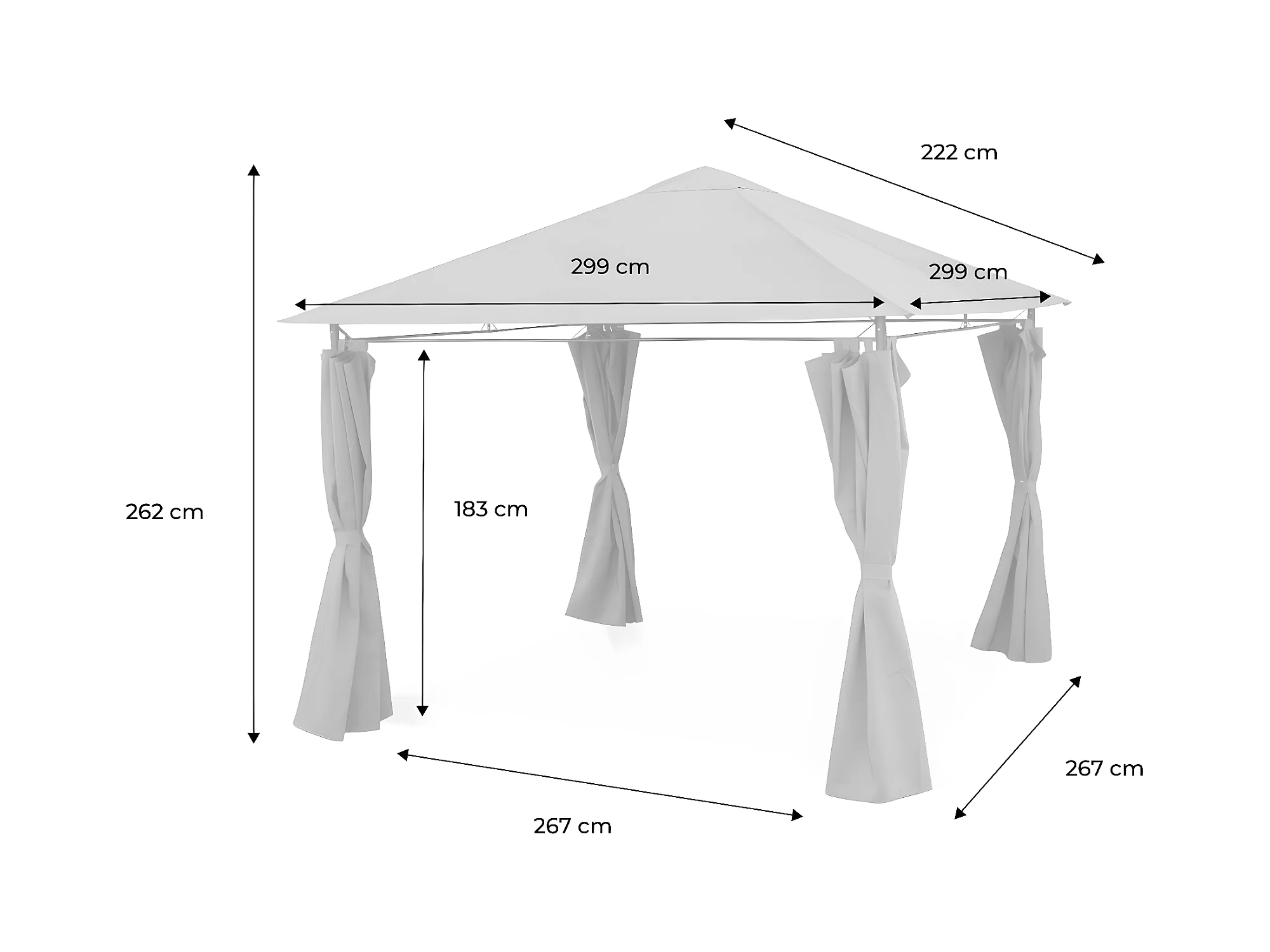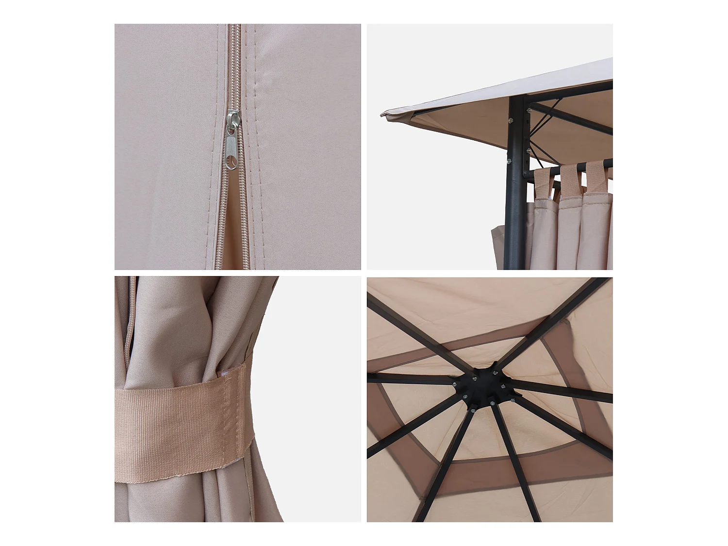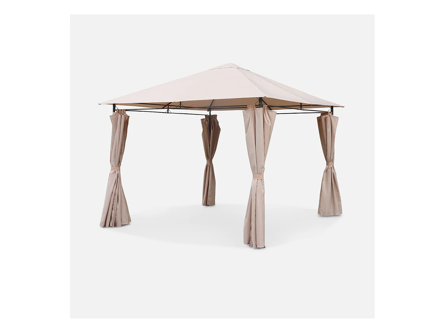 Tonnelle 3x3 m - Elusa - Toile beige - Pergola avec rideaux. tente de jardin. barnum. chapiteau. réception