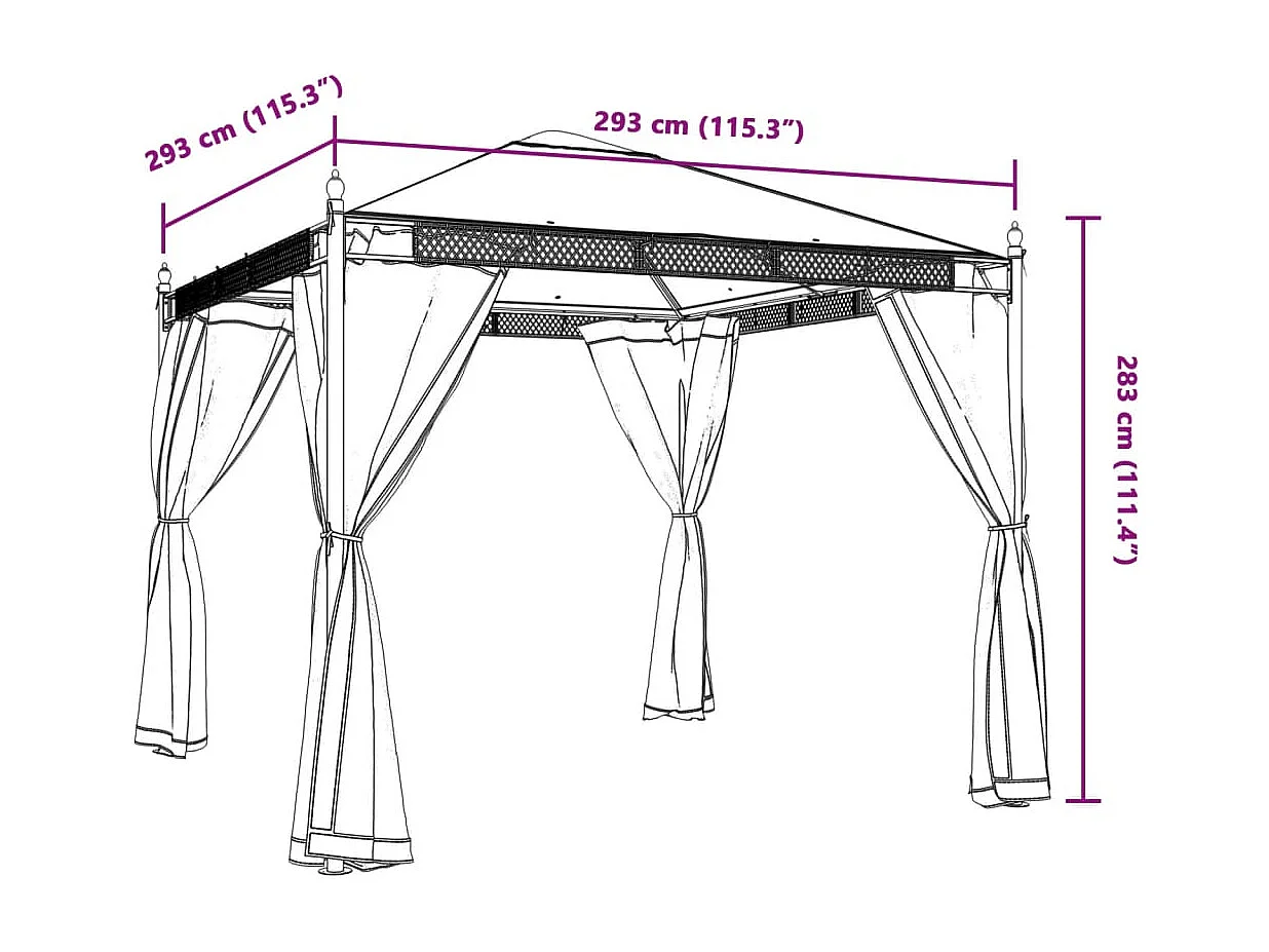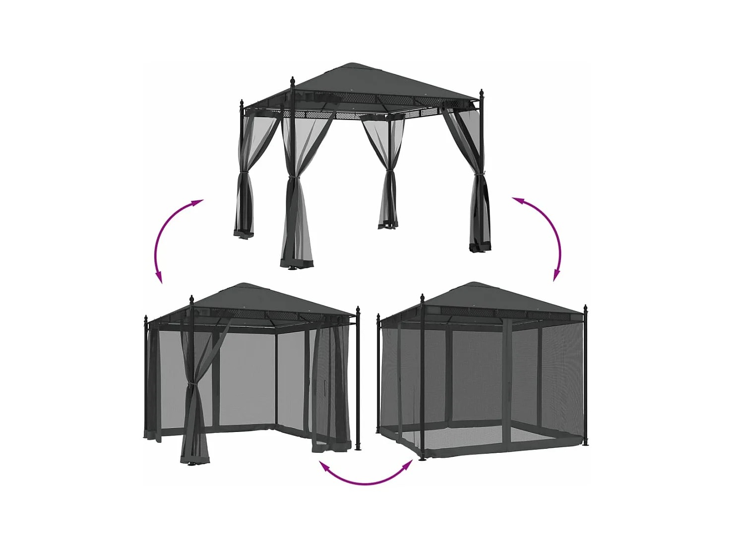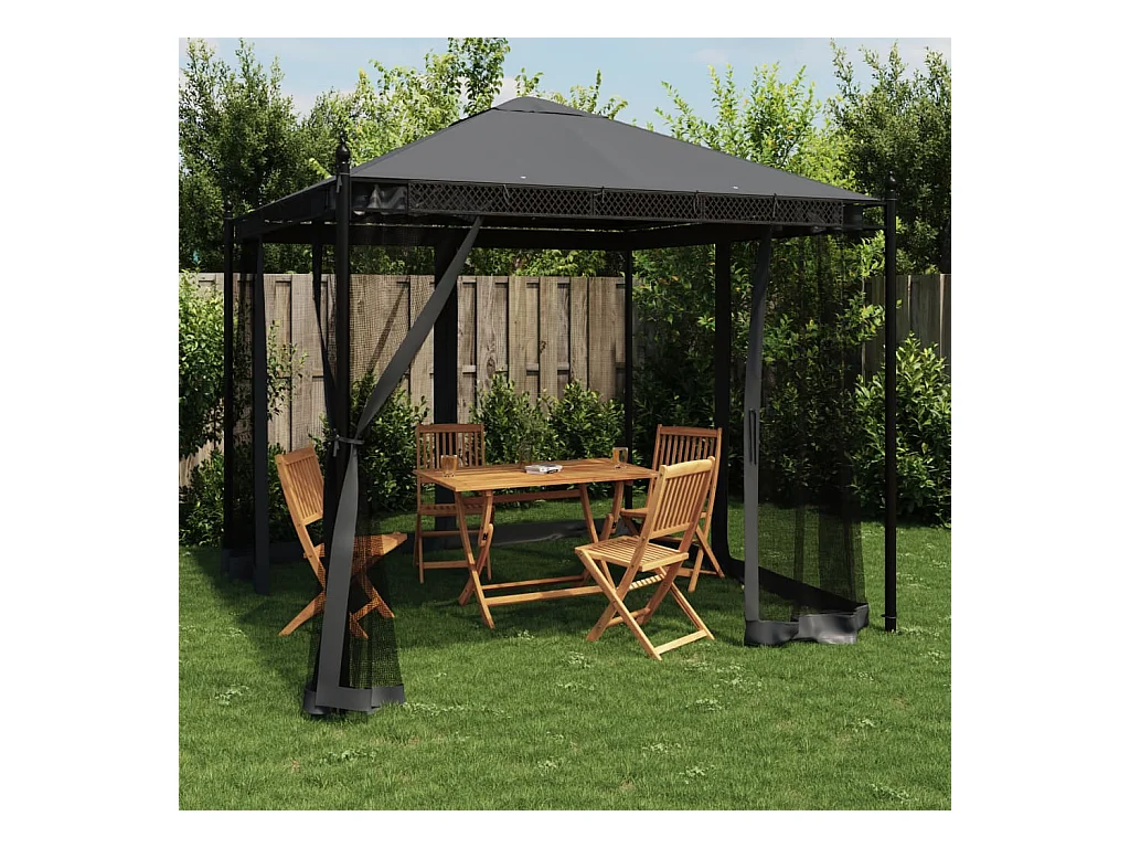 Tonnelle avec parois en filet anthracite 2,93x2,93 m acier