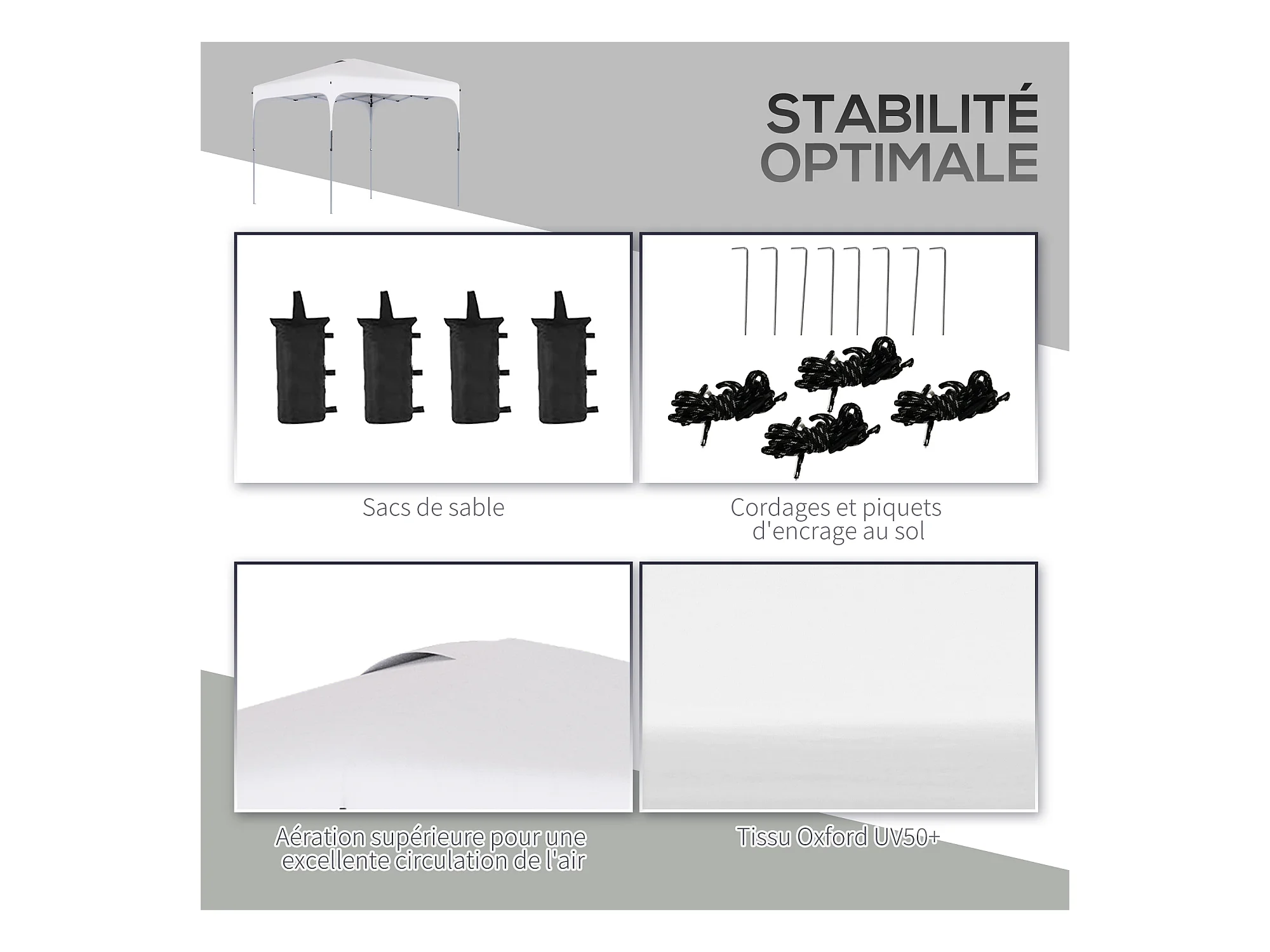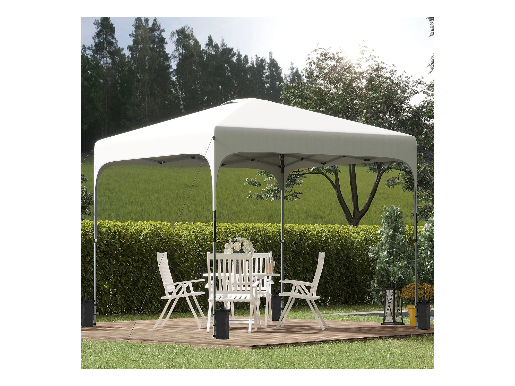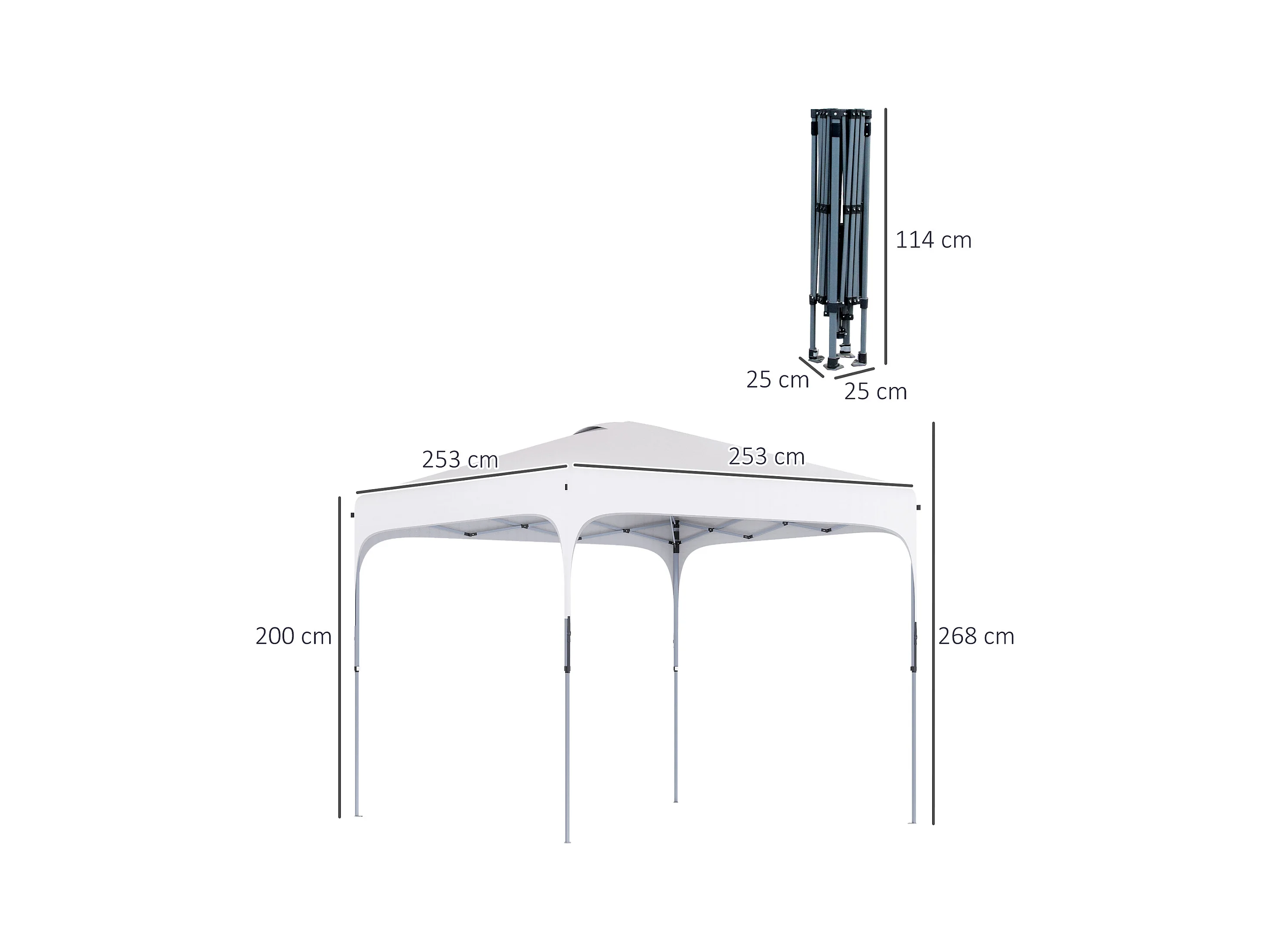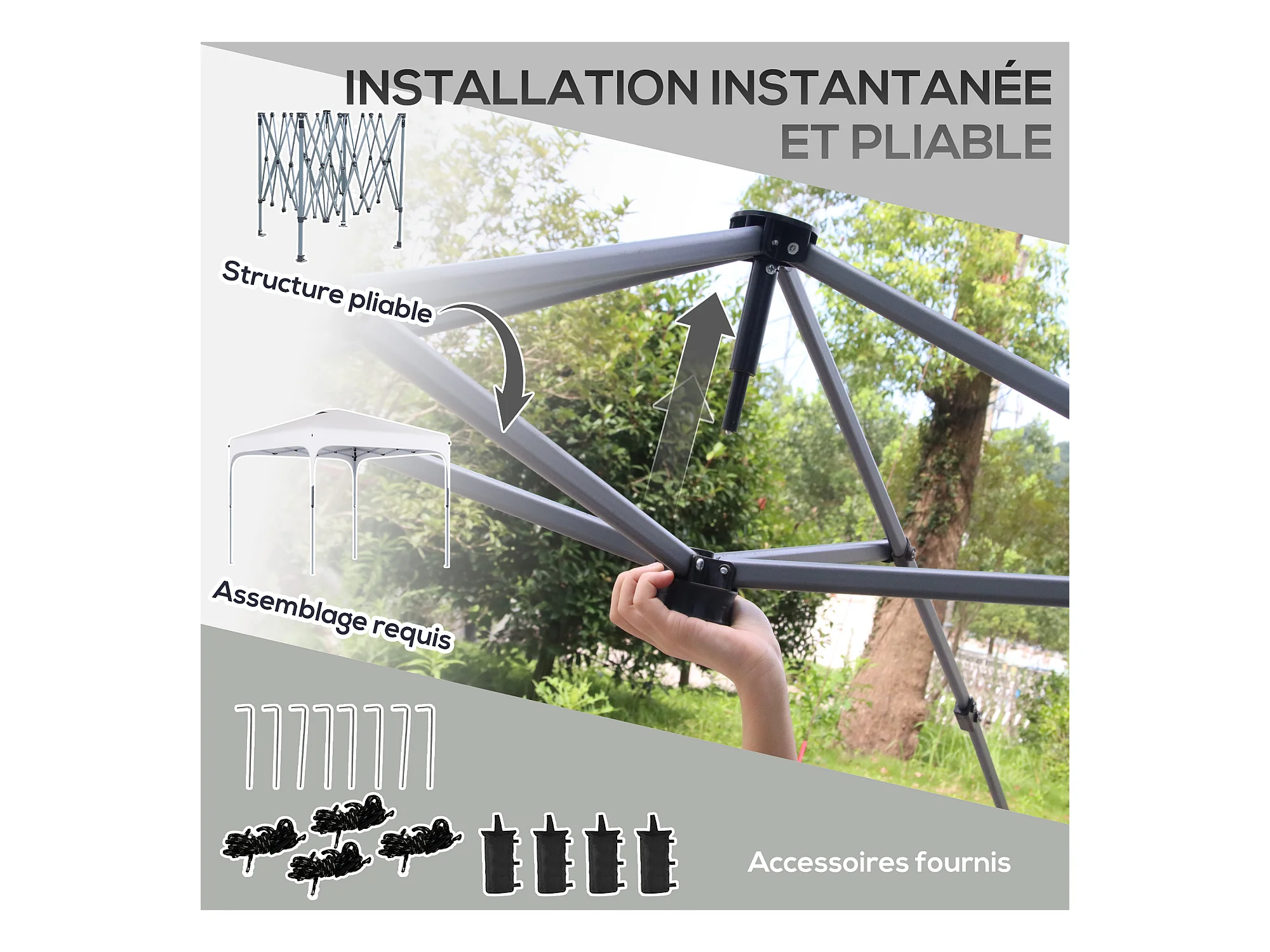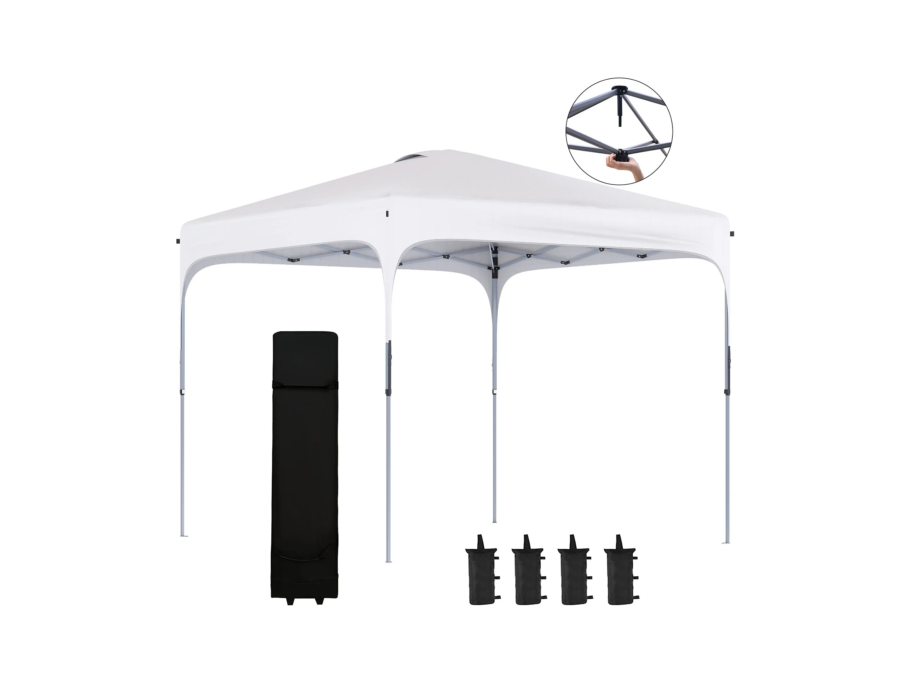 Tonnelle barnum automatique pop-up dim. 2,53L x 2,53l x 2,68H m hauteur réglable nombreux accessoires inclus acier oxford blanc
