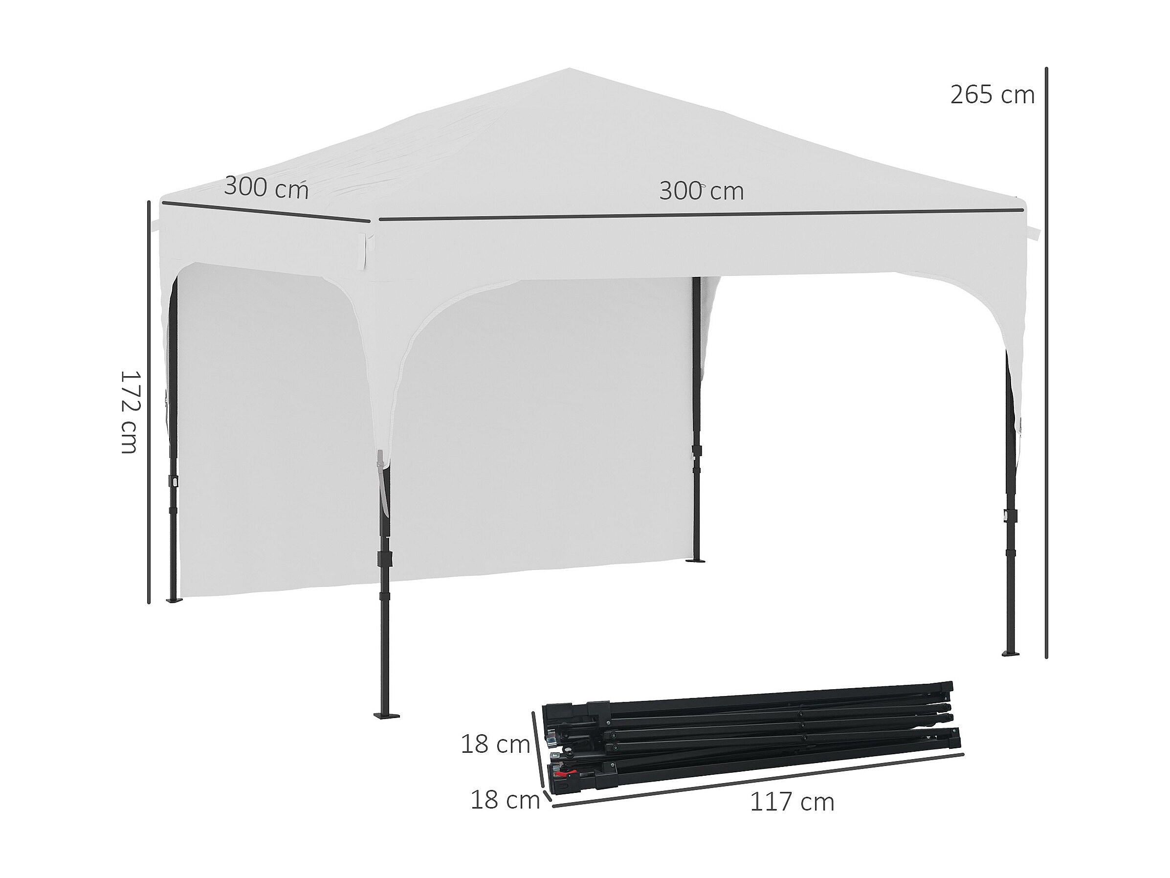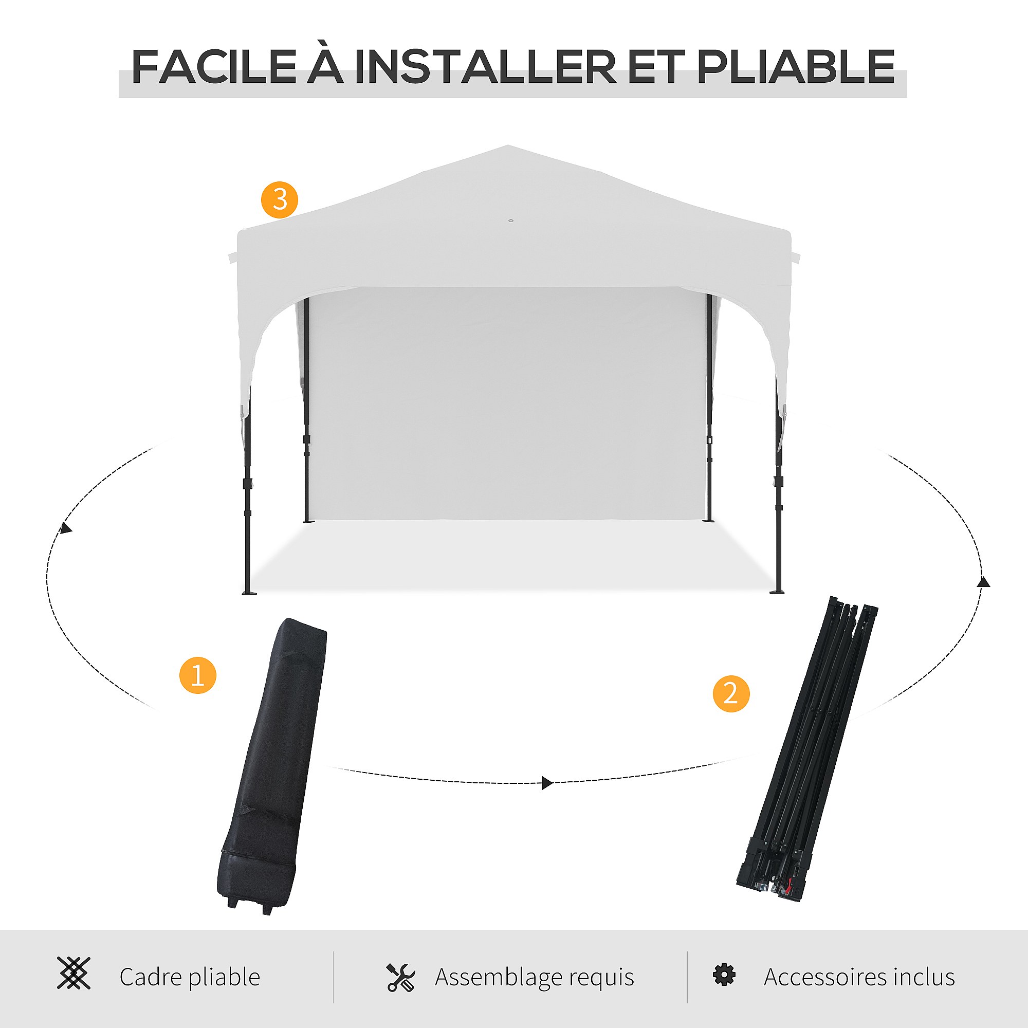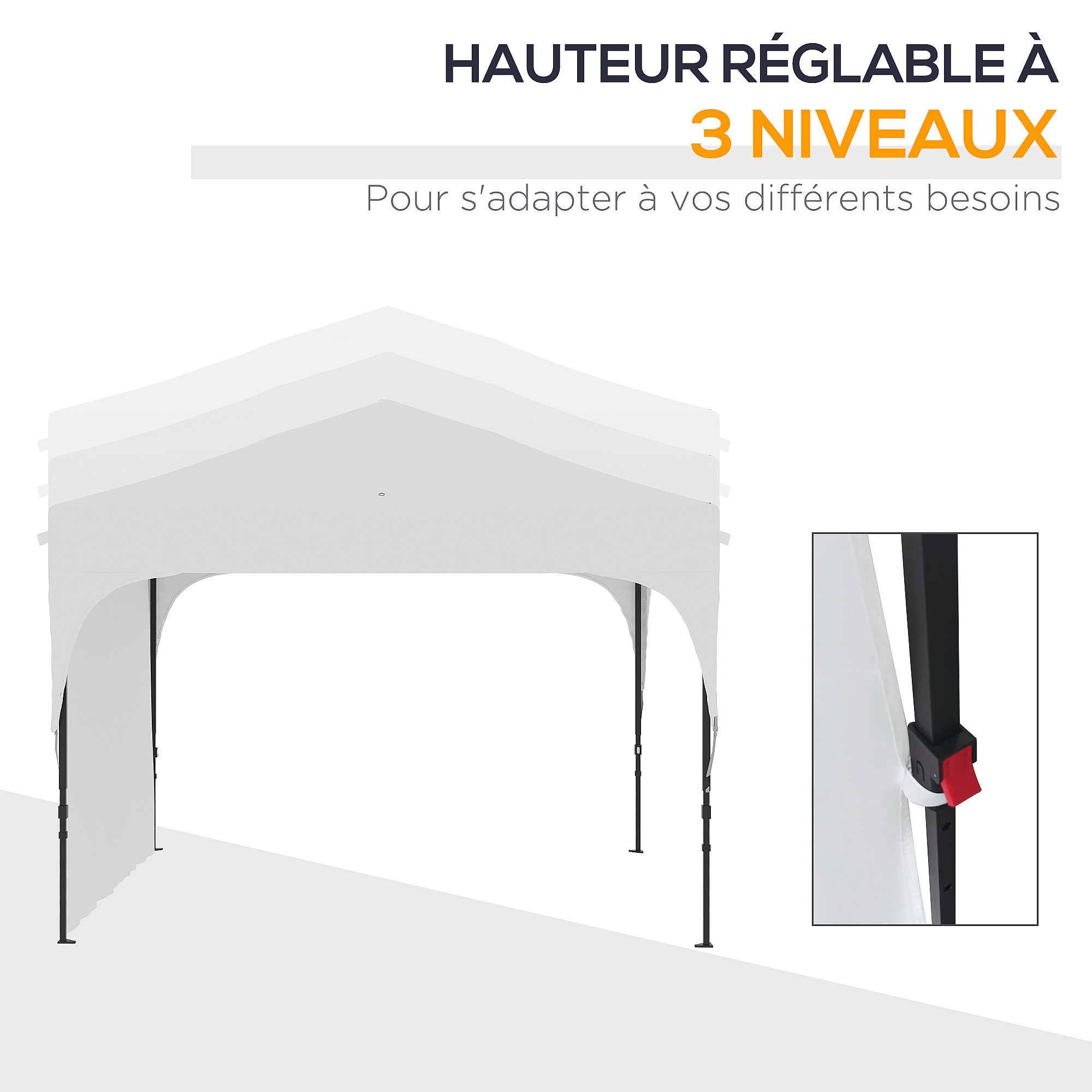Tonnelle barnum pliant pop-up 3L x 3l x 2,84H m 4 parois latérales amovibles 2 fenêtres + sac de transport métal Oxford blanc
