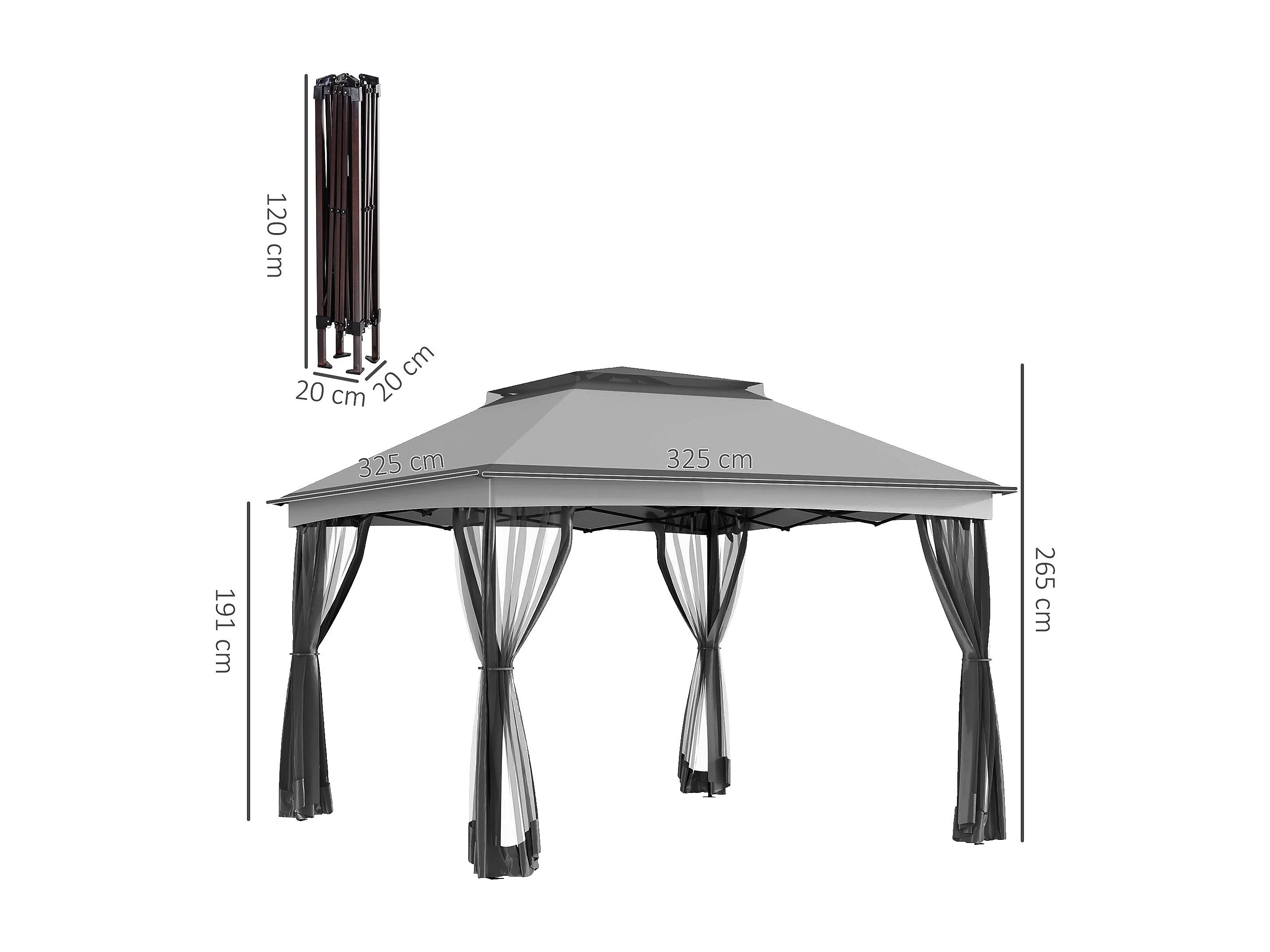 Tonnelle barnum de jardin pop-up pliant 3,25L x 3,25l x 2,7H m acier polyester moustiquaires + sac de transport gris