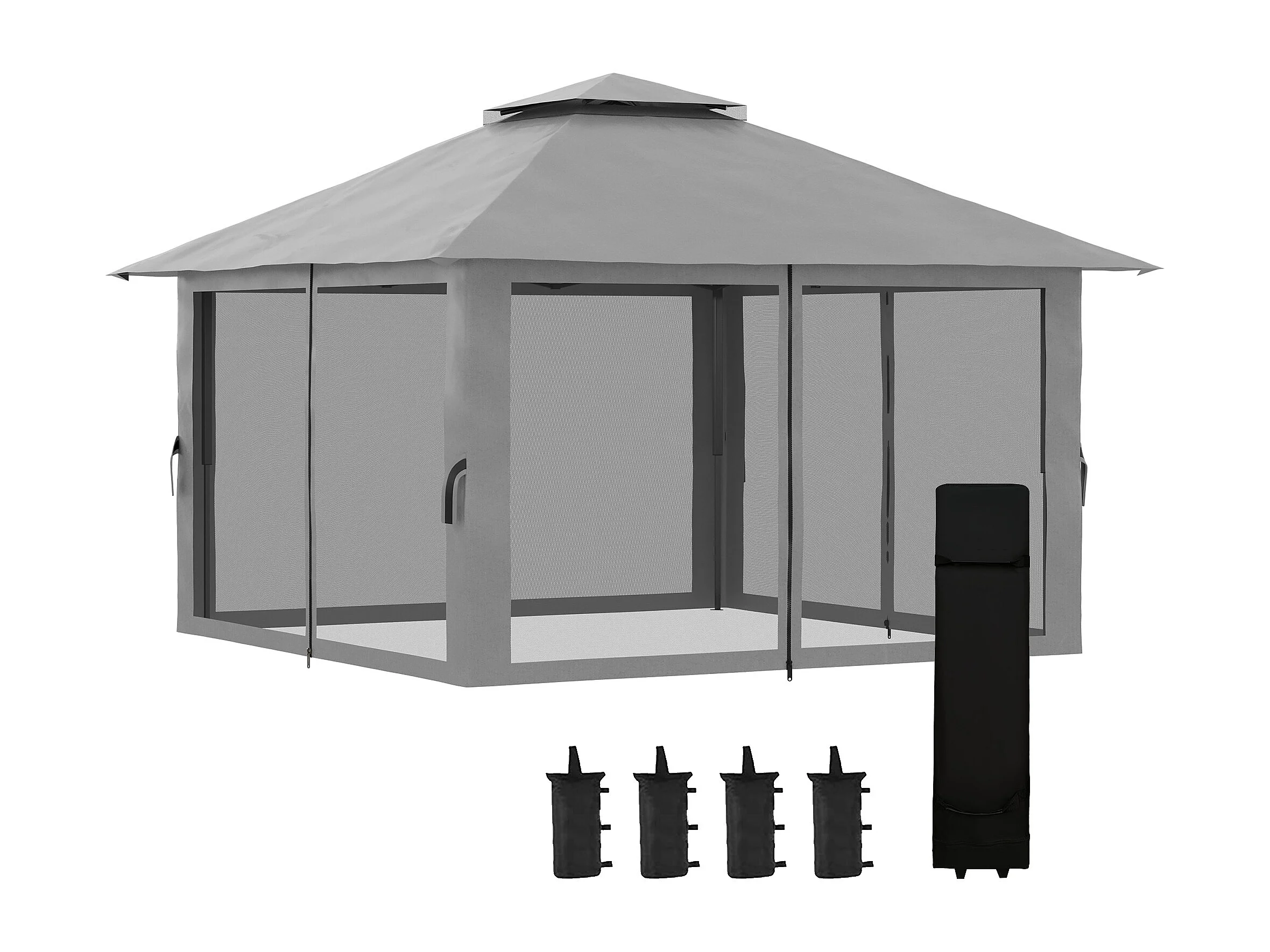Tonnelle barnum de jardin pop-up pliant 3,92L x 3,92l x 2,83H m sacs de lestage et transport inclus gris