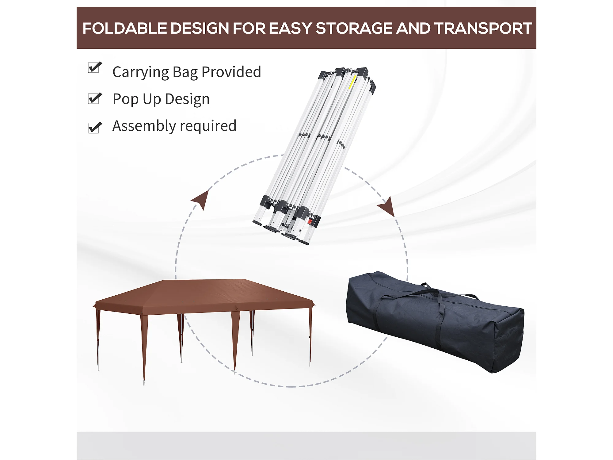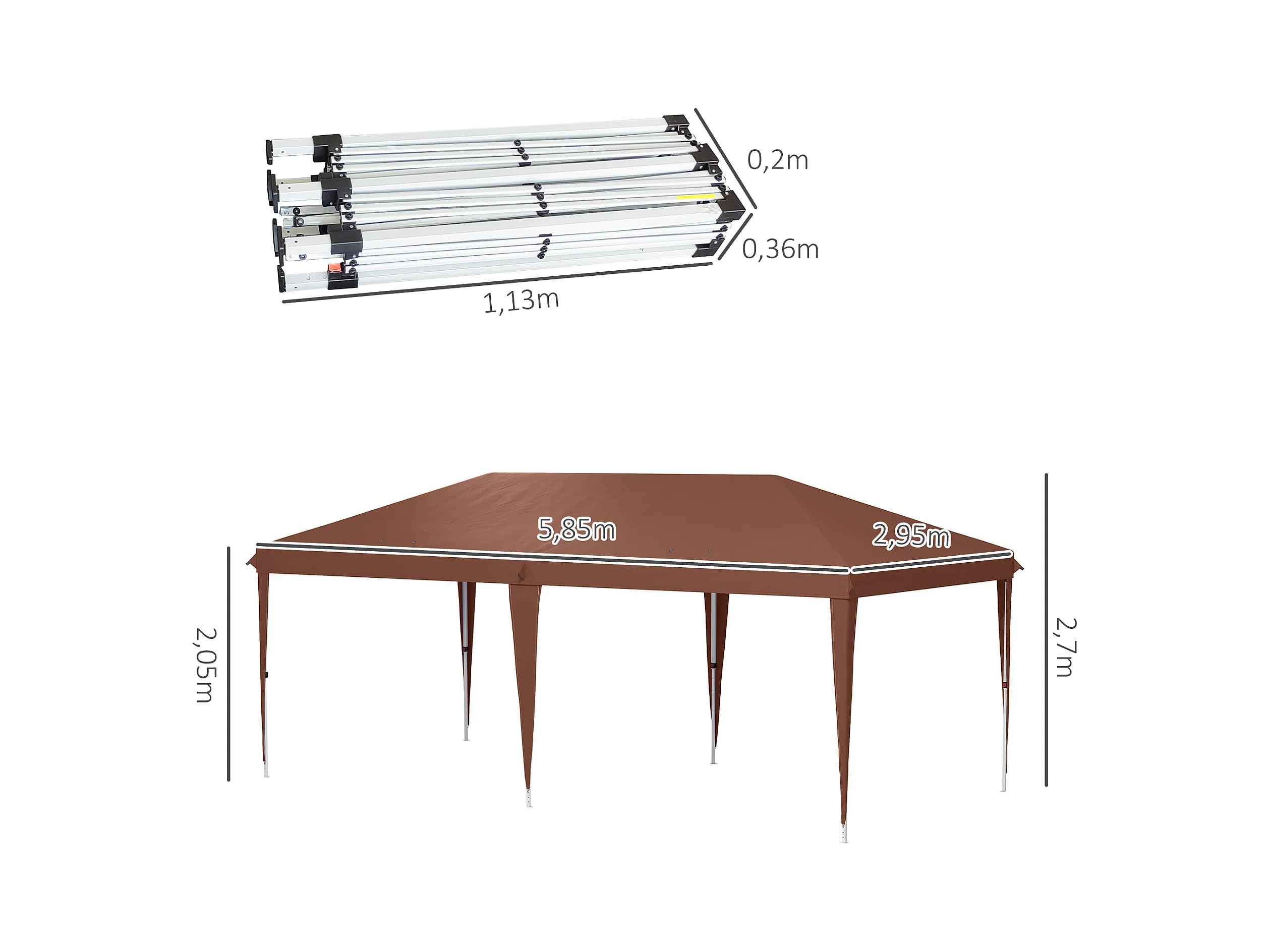 Tonnelle barnum de jardin pop-up pliant 5,85L x 2,95l x 2,7H m sac inclus acier époxy oxford haute densité marron