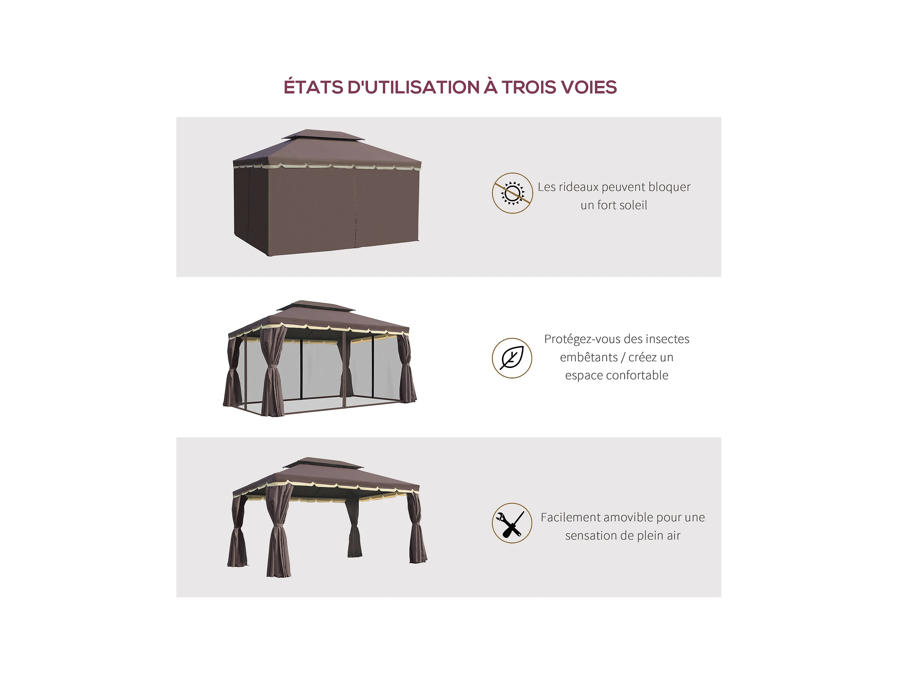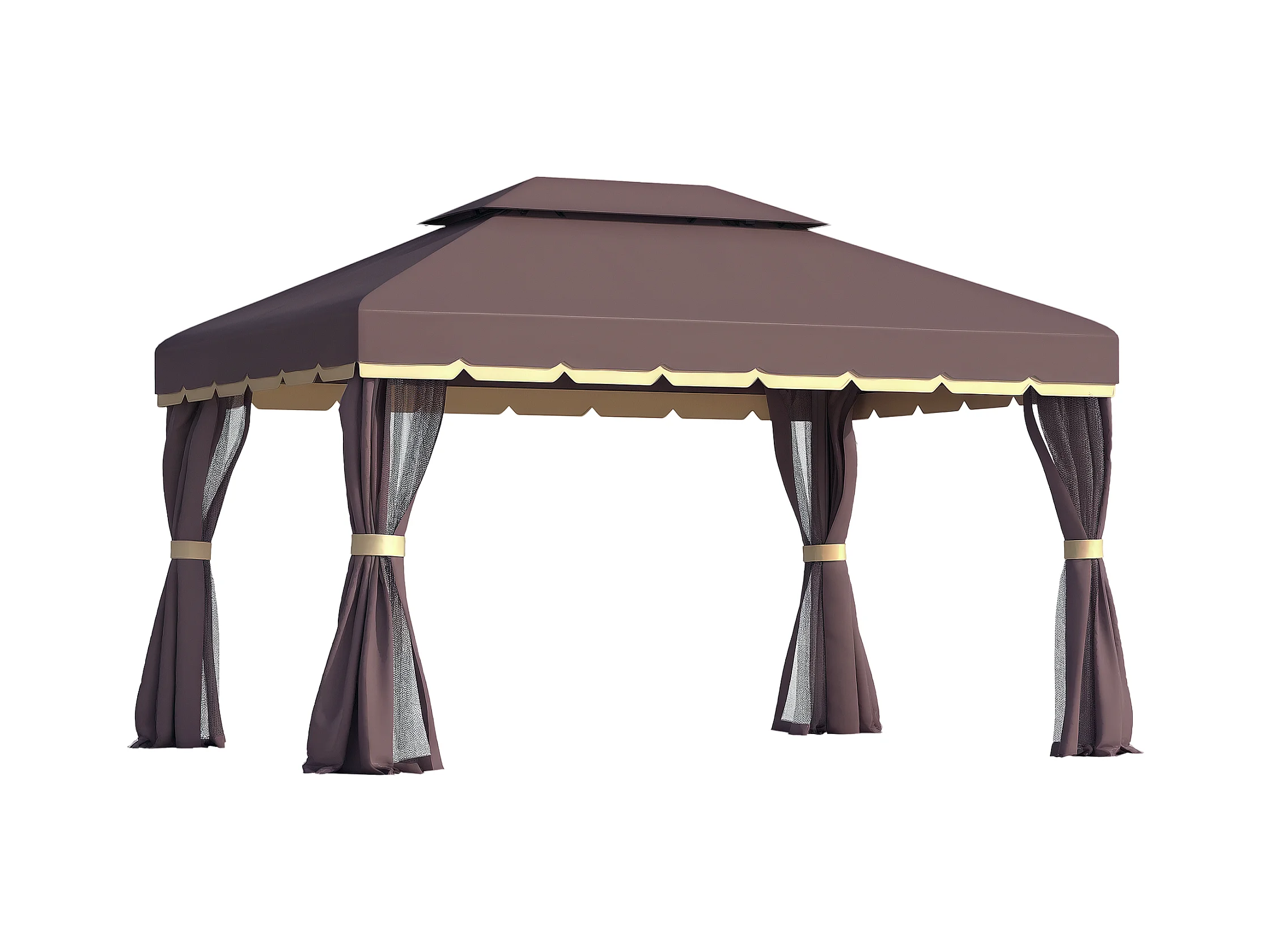 Tonnelle barnum pavillon de jardin style colonial double toit toile moustiquaires et toiles amovibles 3,9L x 2,9l x 2,8H m chocolat