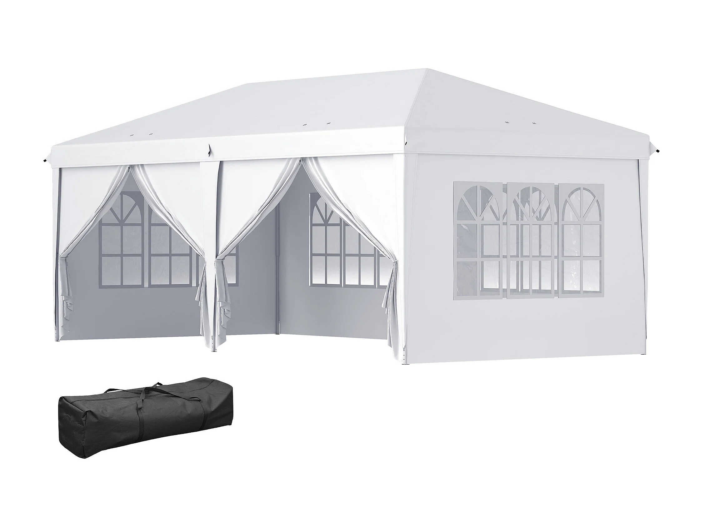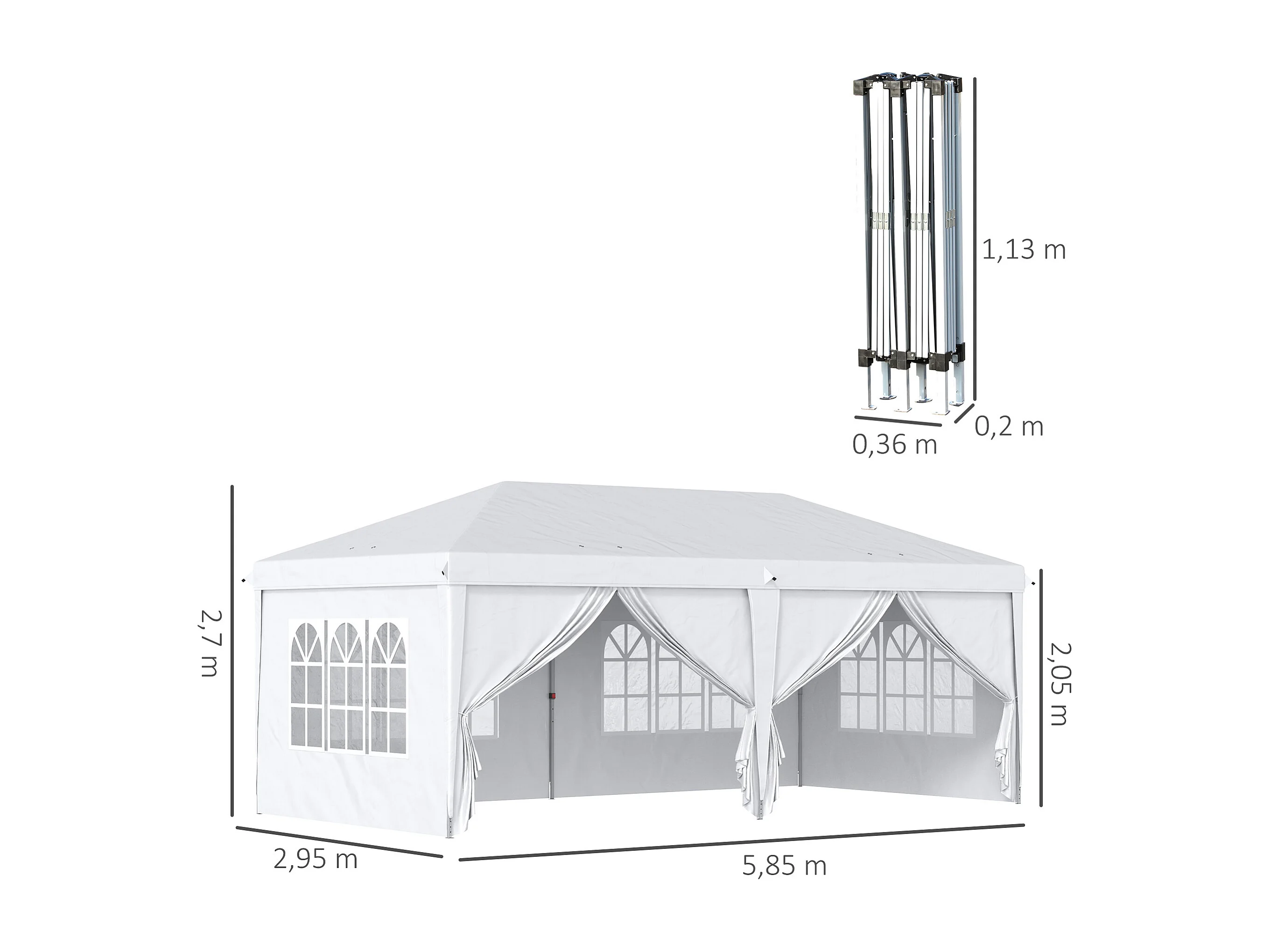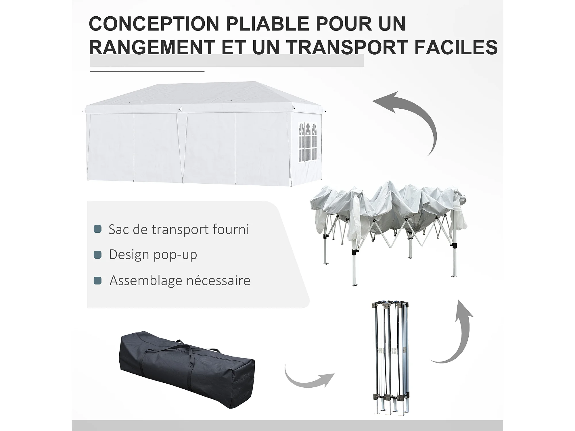 Tonnelle barnum pliant pop-up imperméabilisé 5,85L x 2,95l x 2,7H m 6 parois latérales amovibles 4 fenêtres + sac de transport blanc